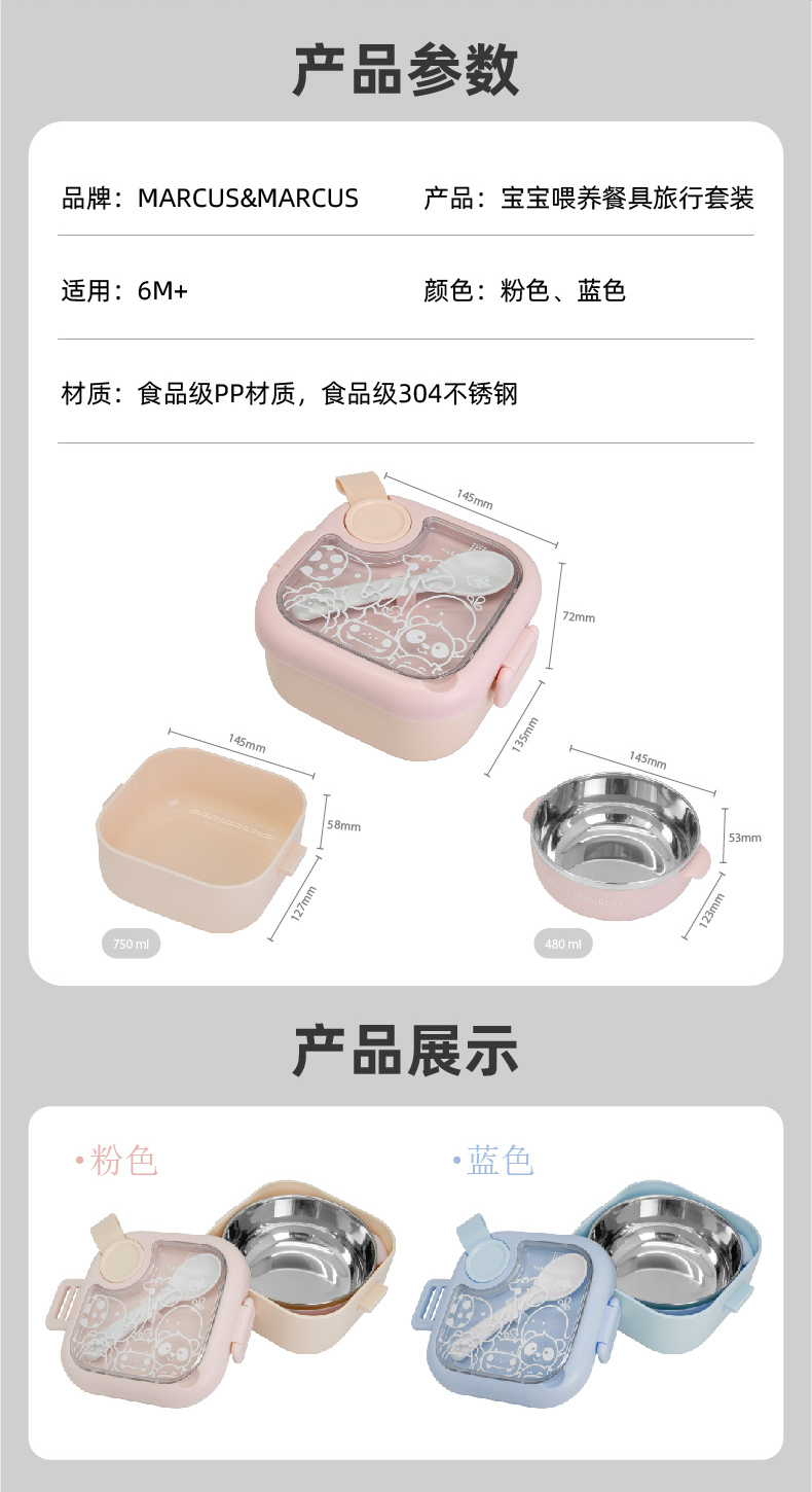 *marcus马库狮 宝宝喂养餐具旅行套装(6m+)/户外便当盒5合1(2岁+)【餐具属个人卫生产品,一经拍下不支持七天无理由退换货,介意慎拍】