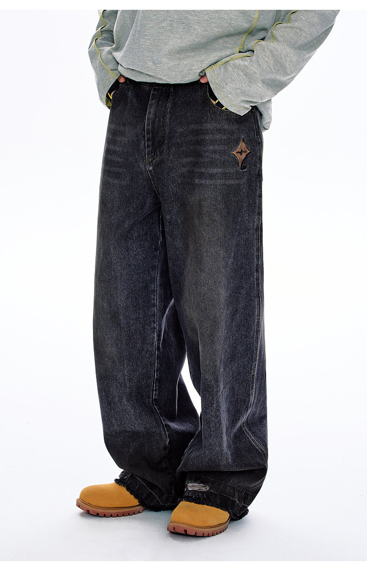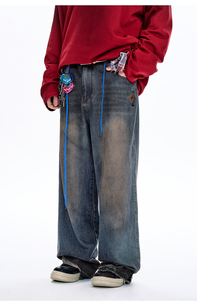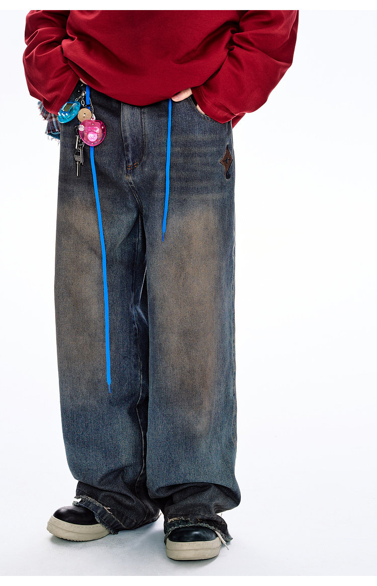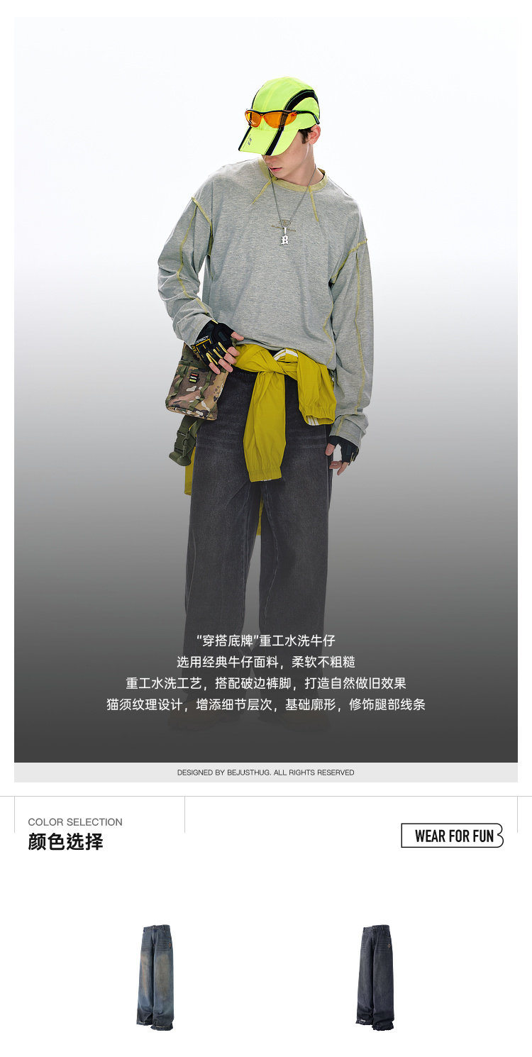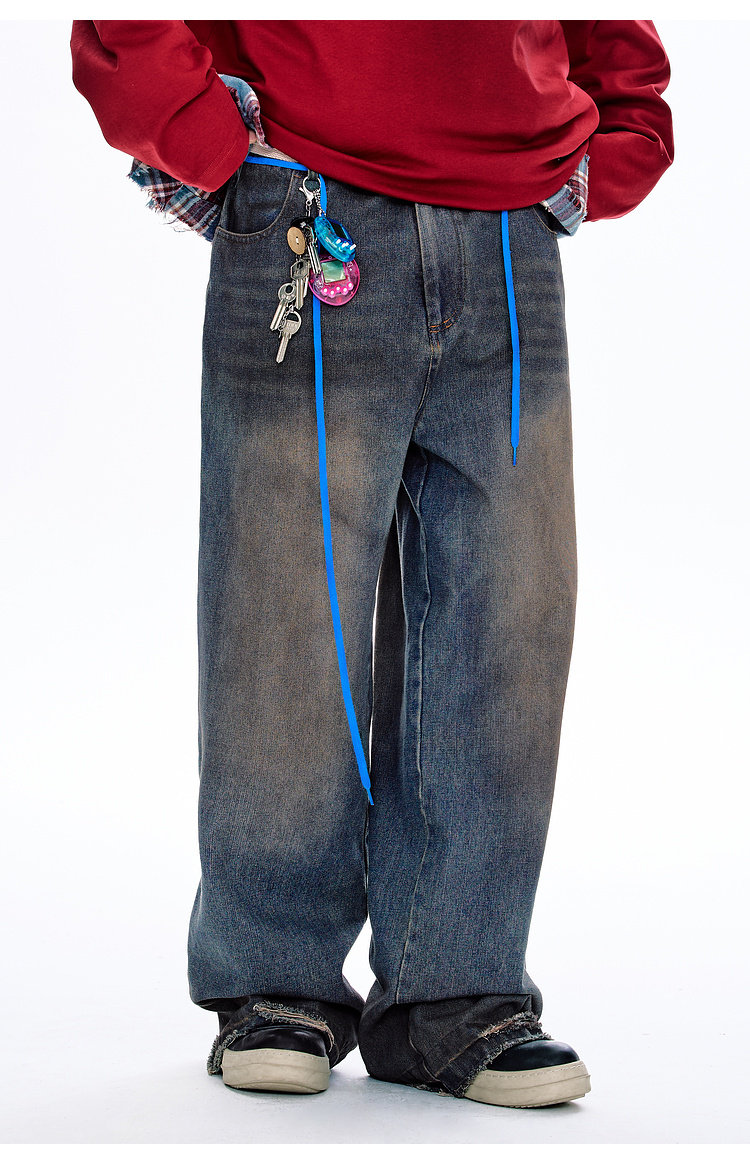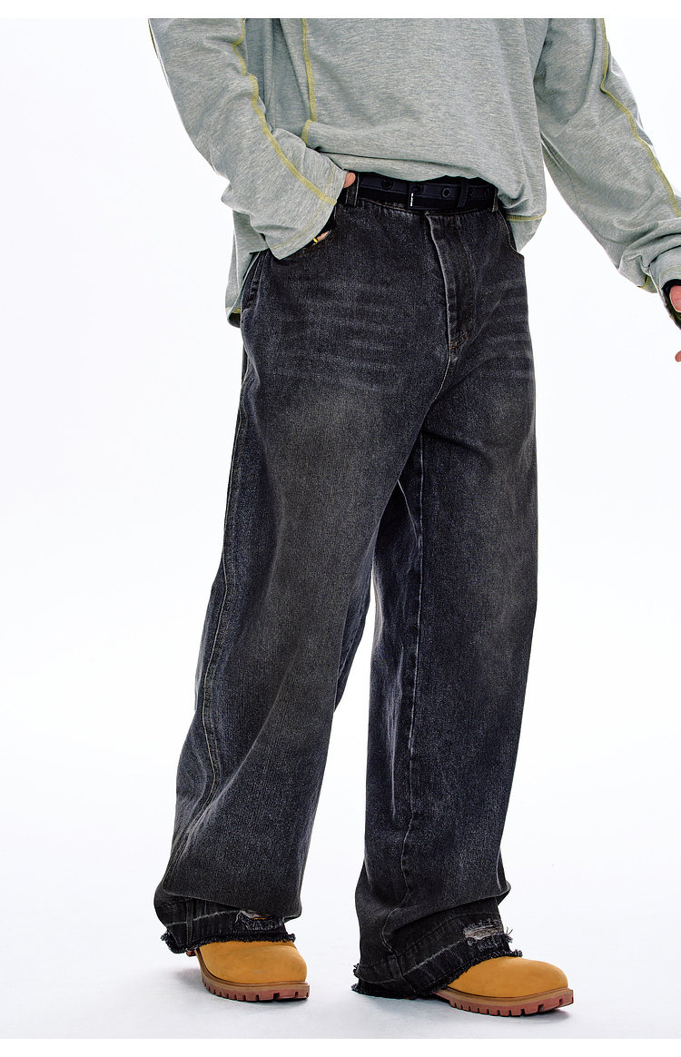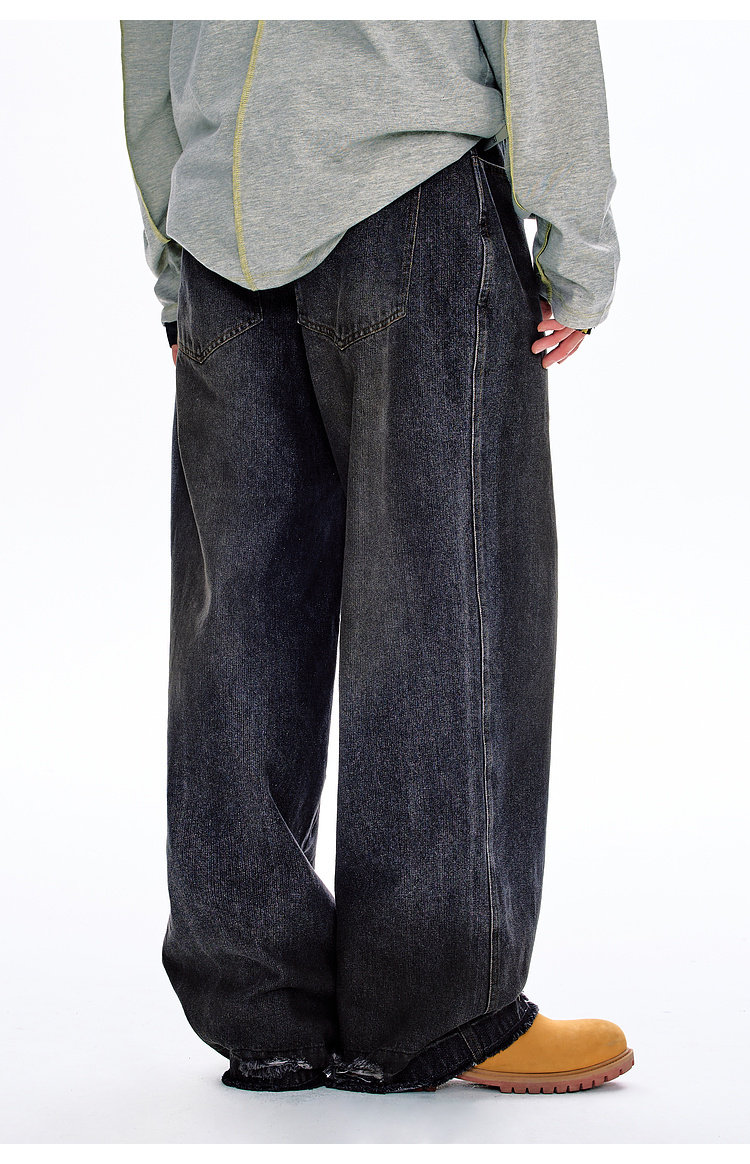 BJHG不计后果原色复古牛仔裤子男款春季水洗宽松直筒休闲裤长裤女