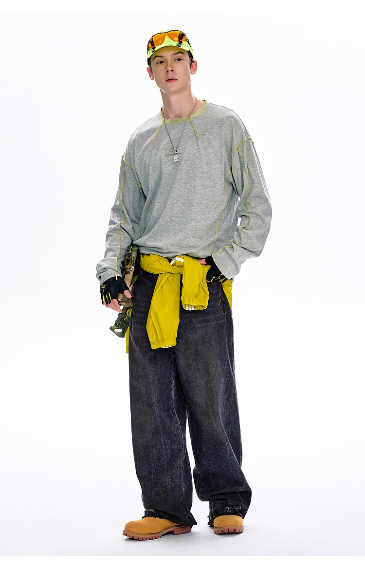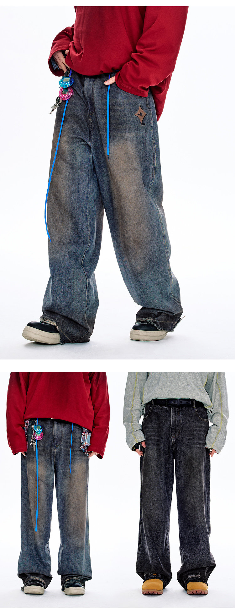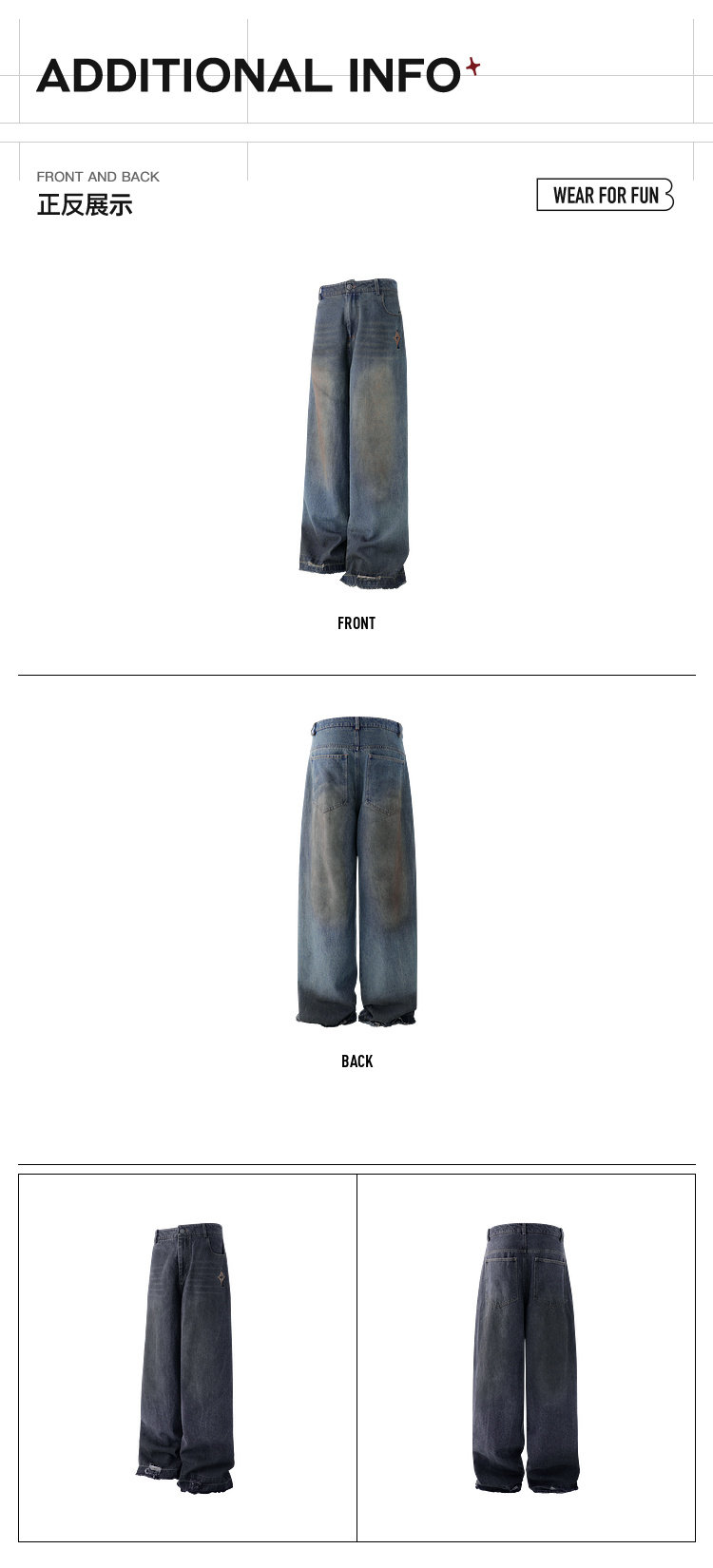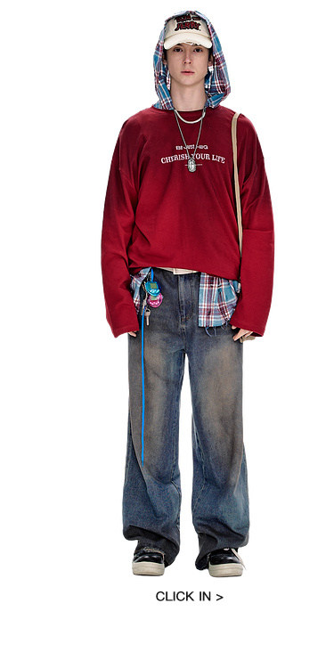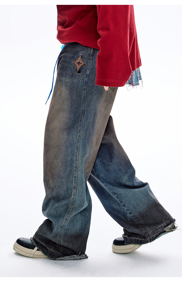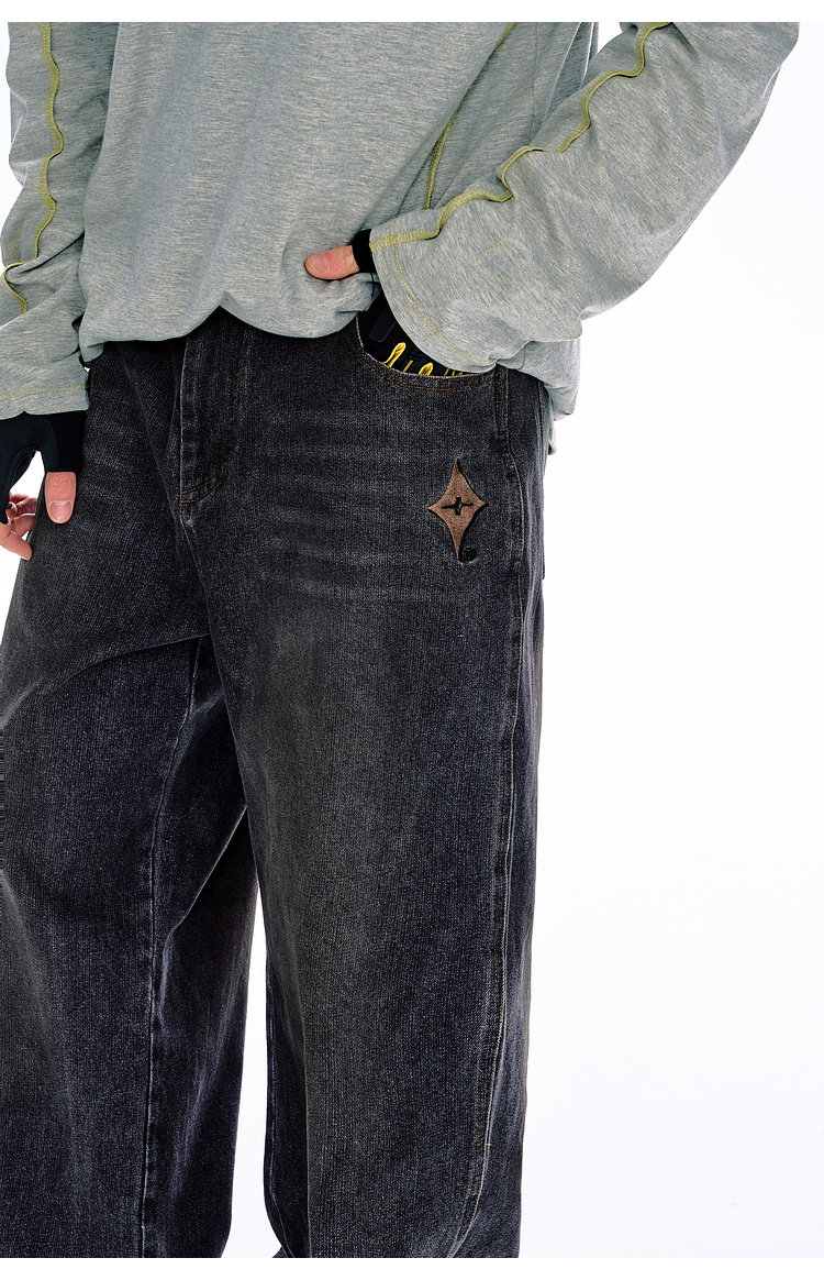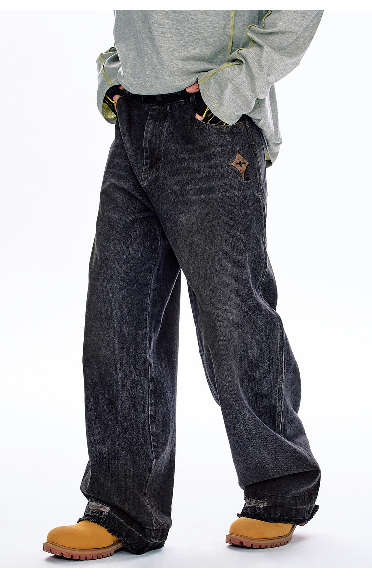 BJHG不计后果原色复古牛仔裤子男款春季水洗宽松直筒休闲裤长裤女
