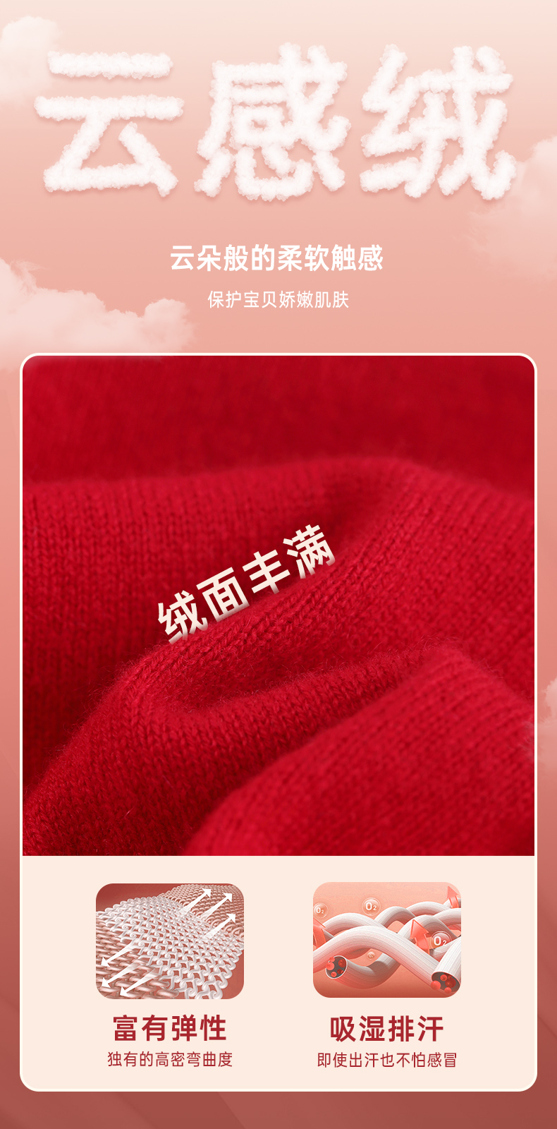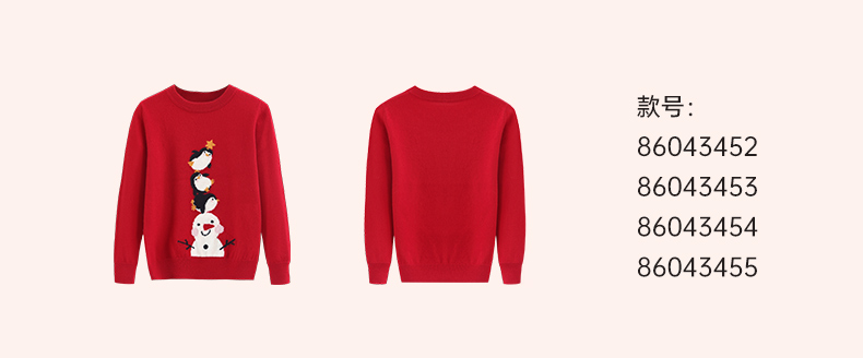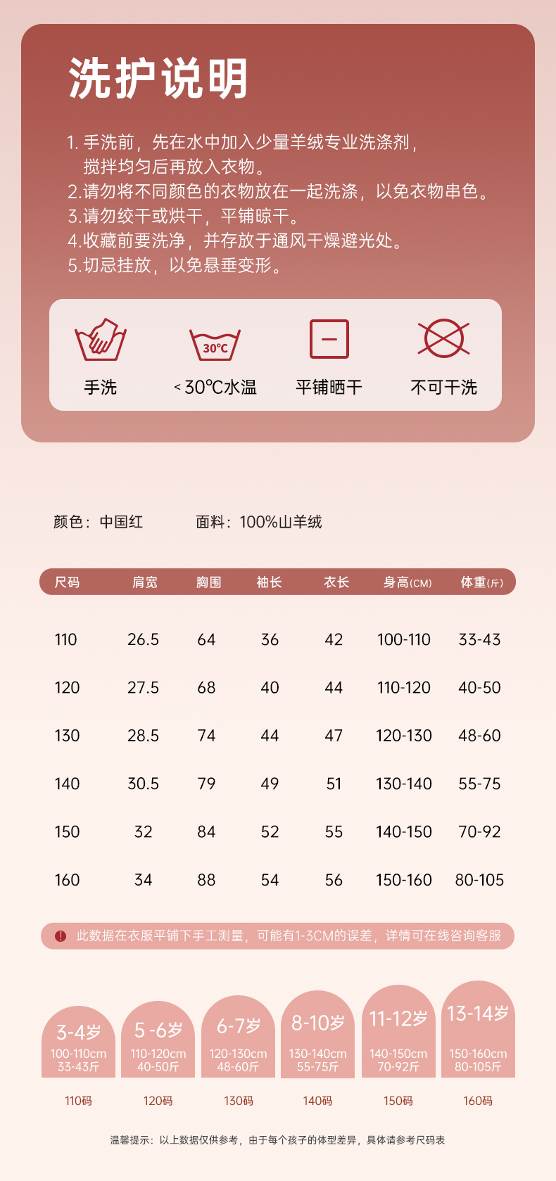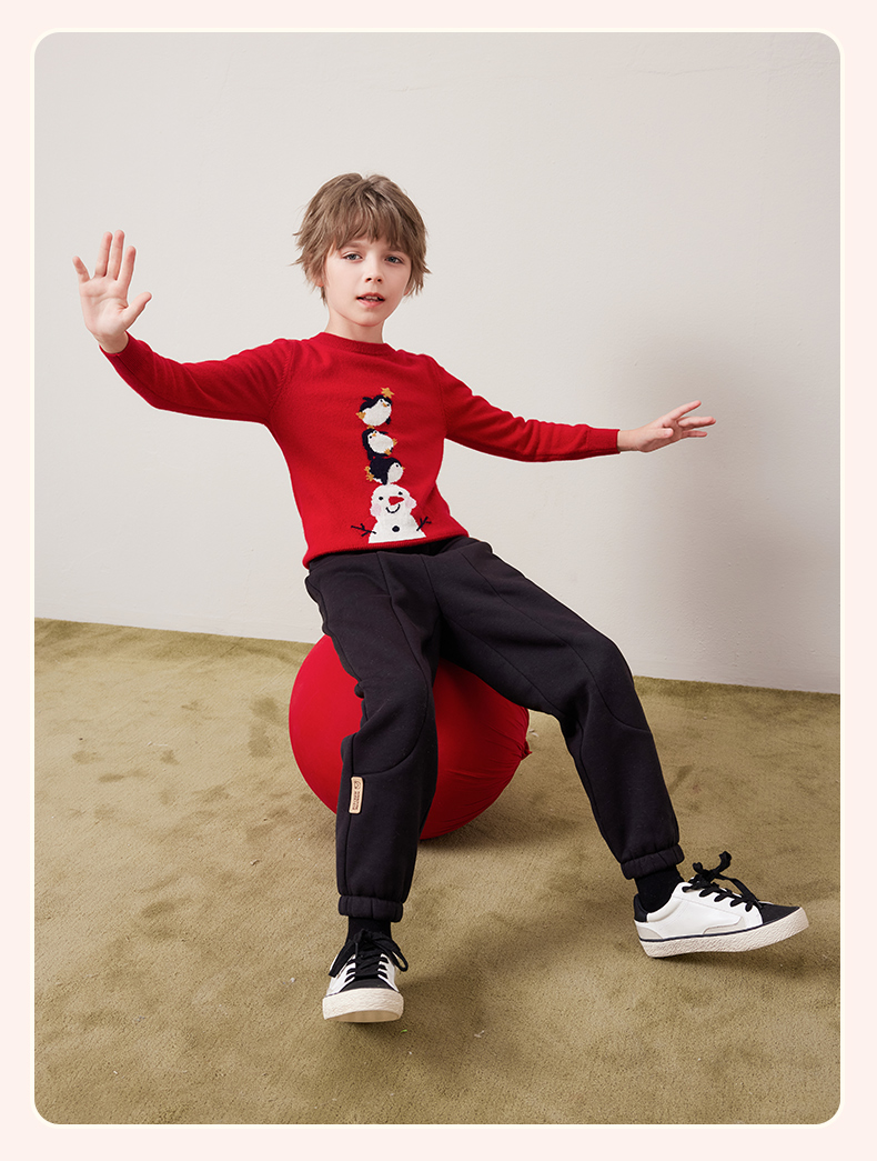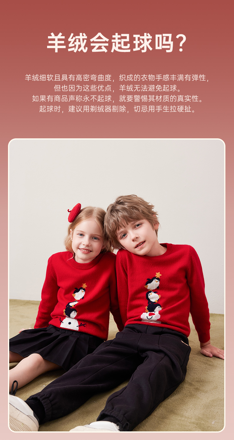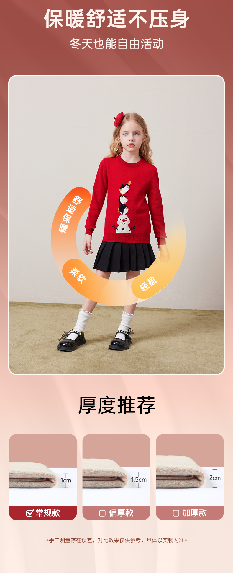 mettekids儿童100%羊绒衫2024秋冬新款男童卡通针织女童红色毛衣