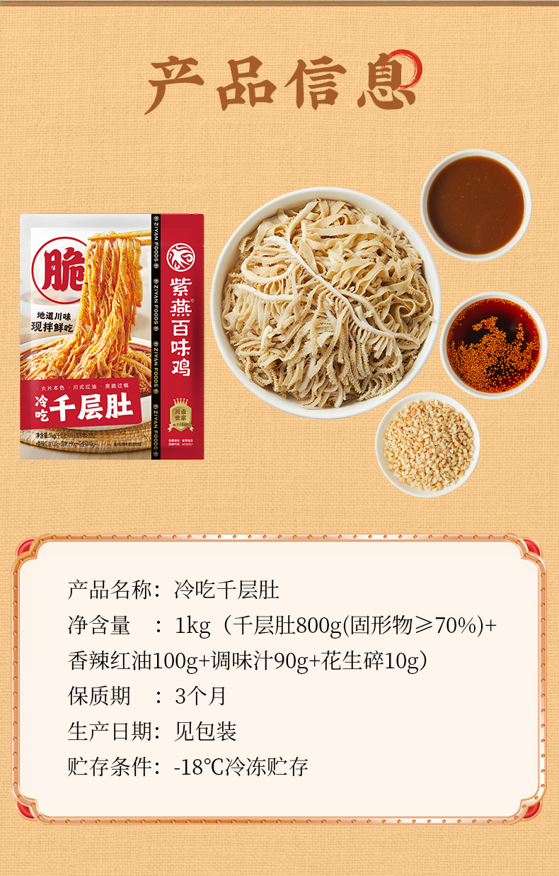 紫燕百味鸡冷吃千层肚1000g脆爽卤味凉拌即食熟菜川式红油