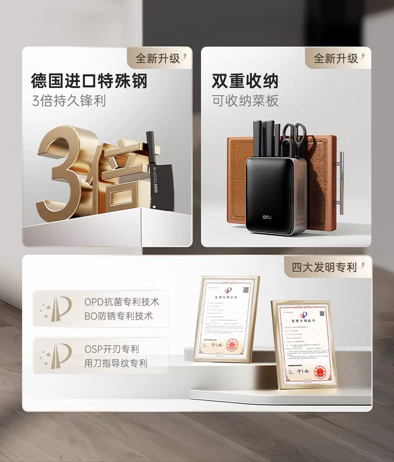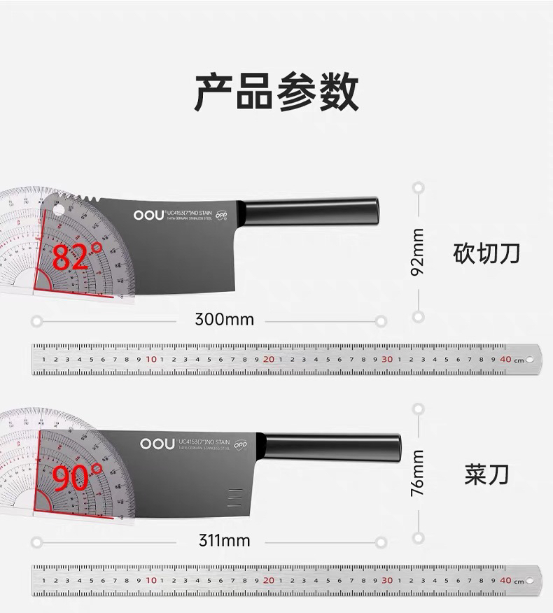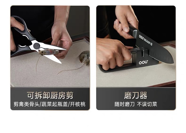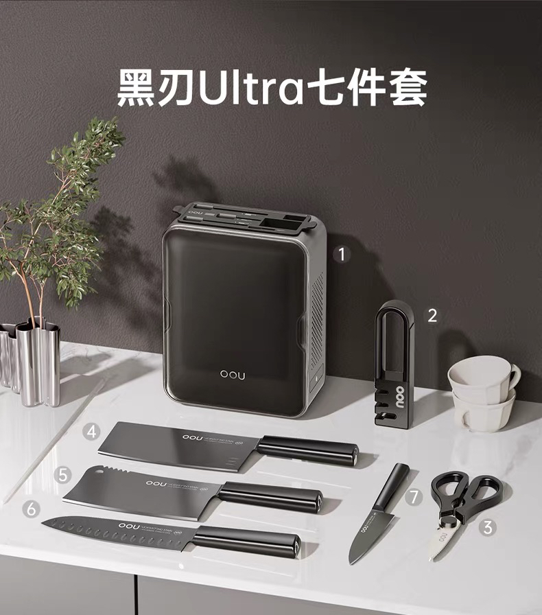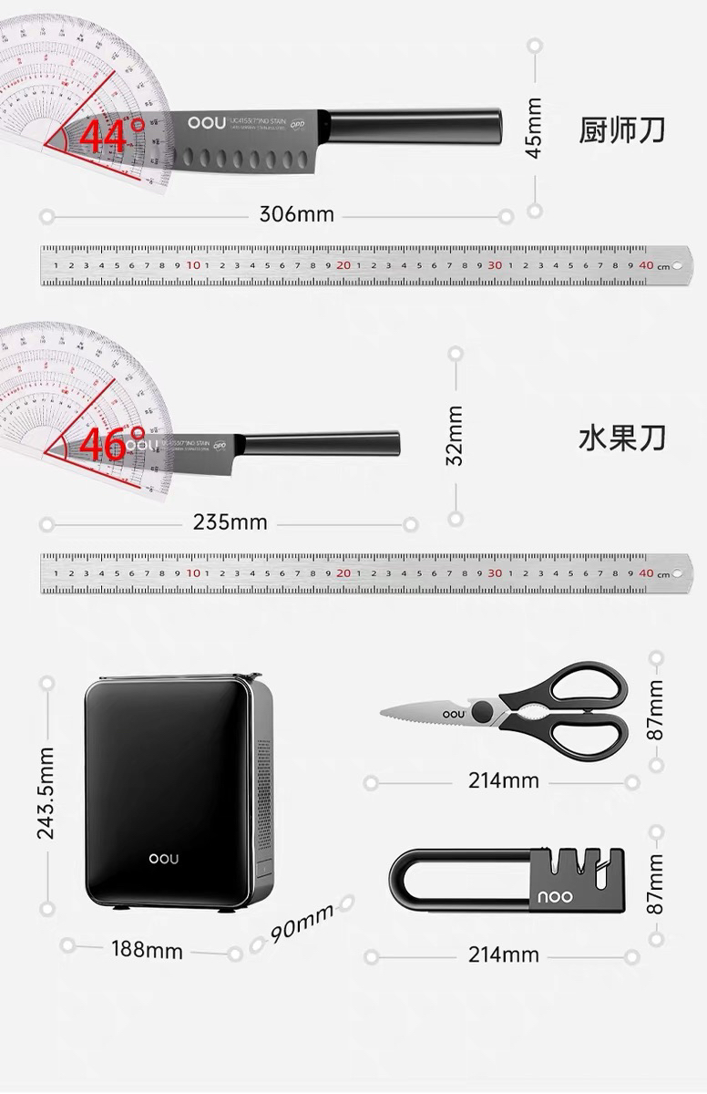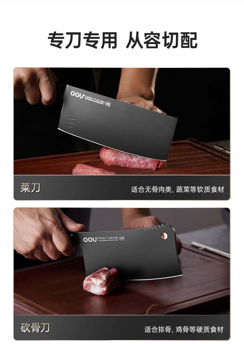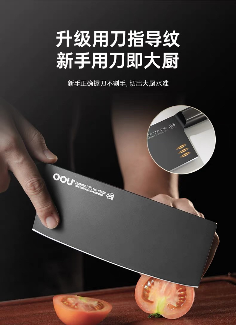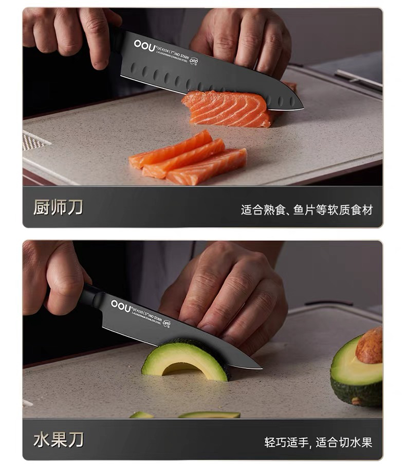 OOU黑刃五代系列组合菜刀家用厨具全套切菜刀水果刀德国钢材厨刀