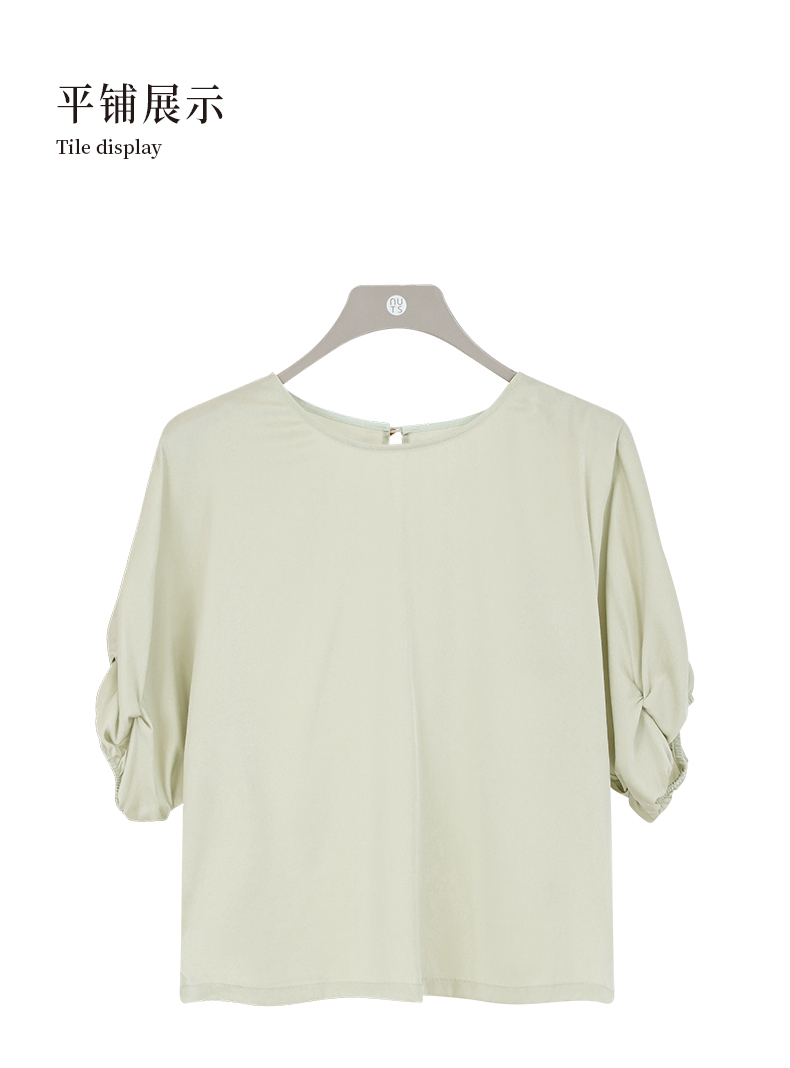 NUTS夏款气质通勤高级感桑蚕丝宽松圆领短袖套头衬衫女428013516