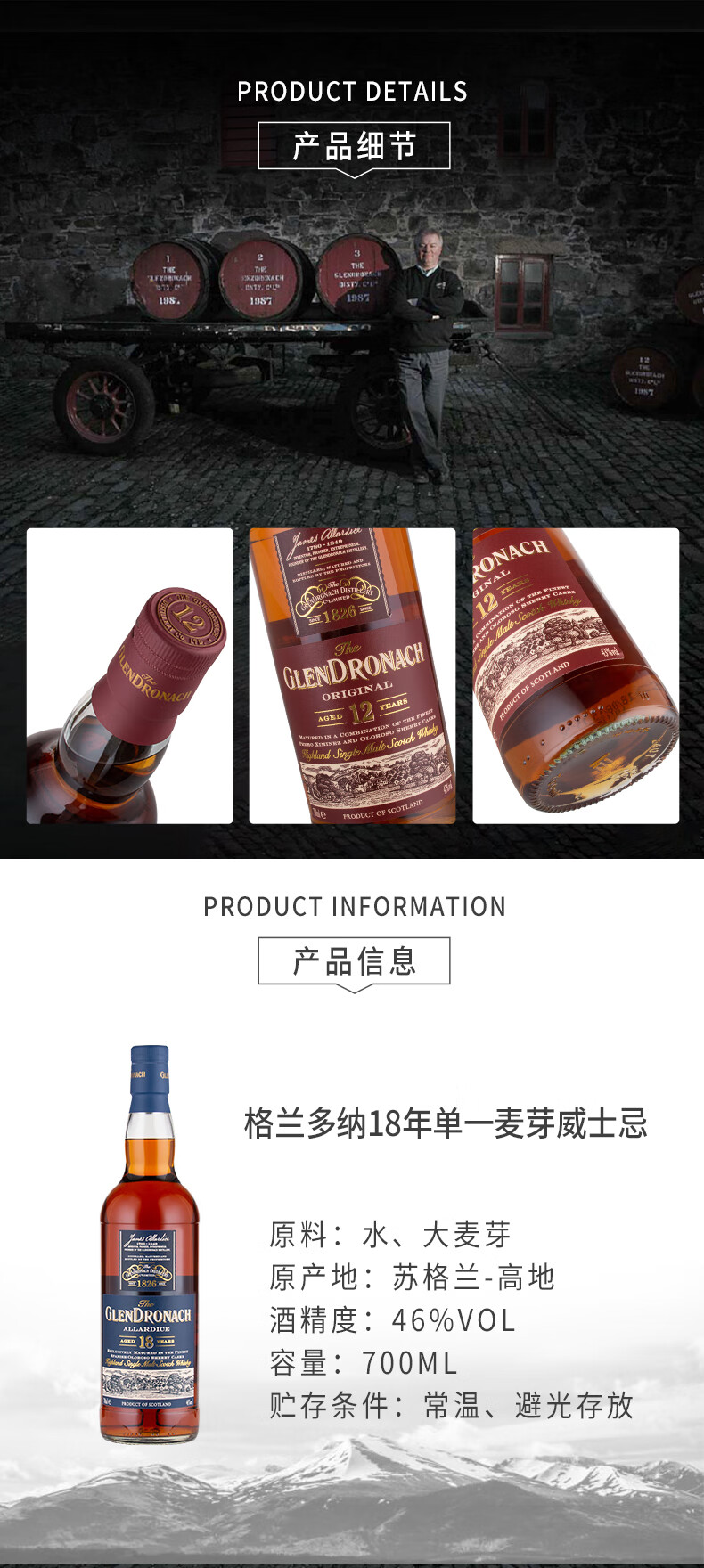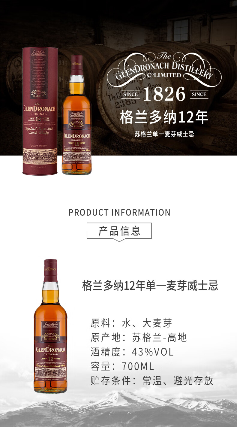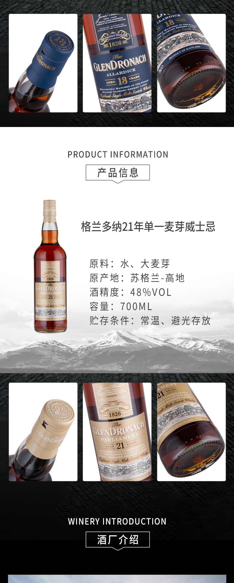 【有税版】格兰多纳21年苏格兰单一麦芽威士忌 700ml 高地