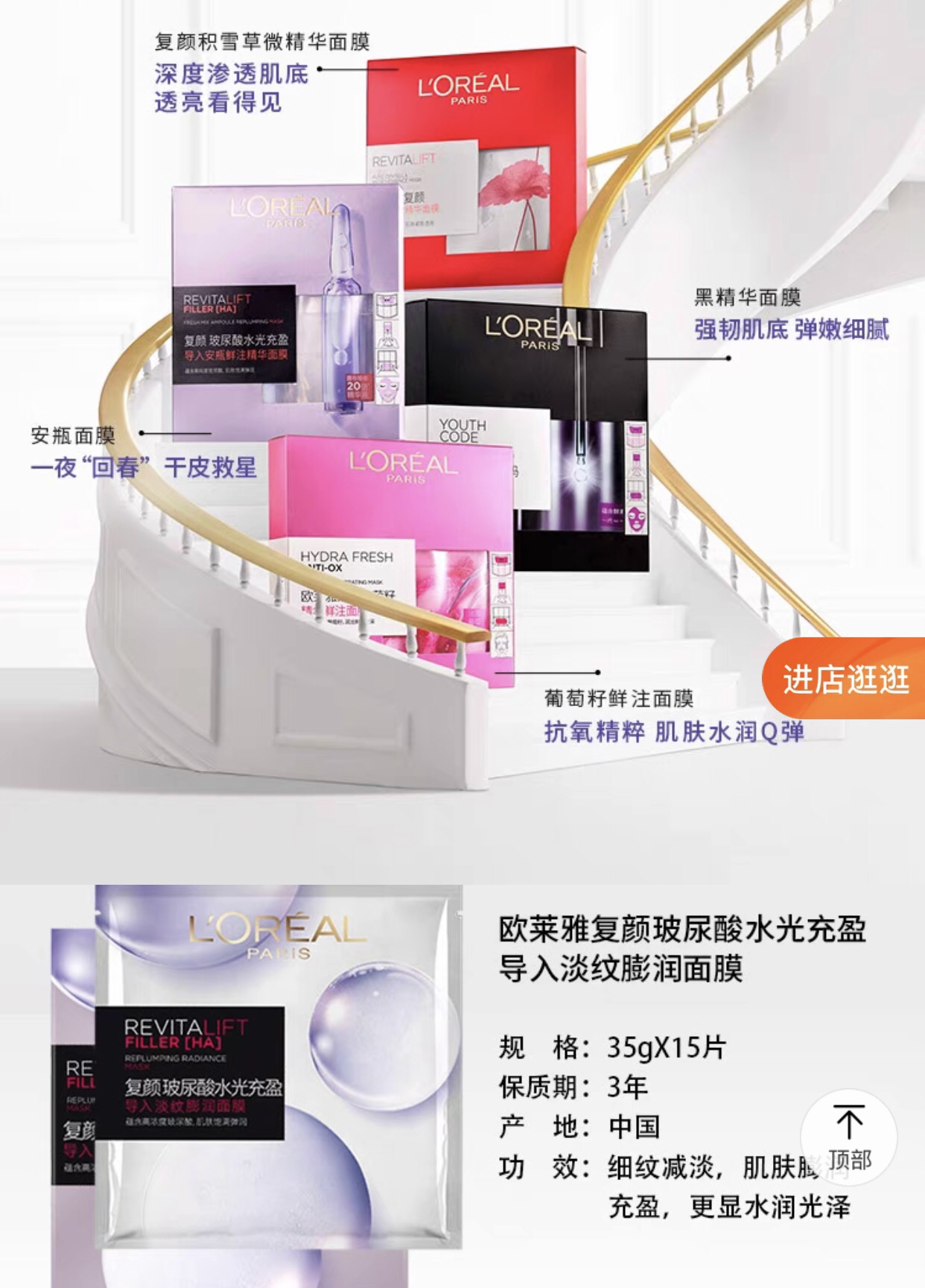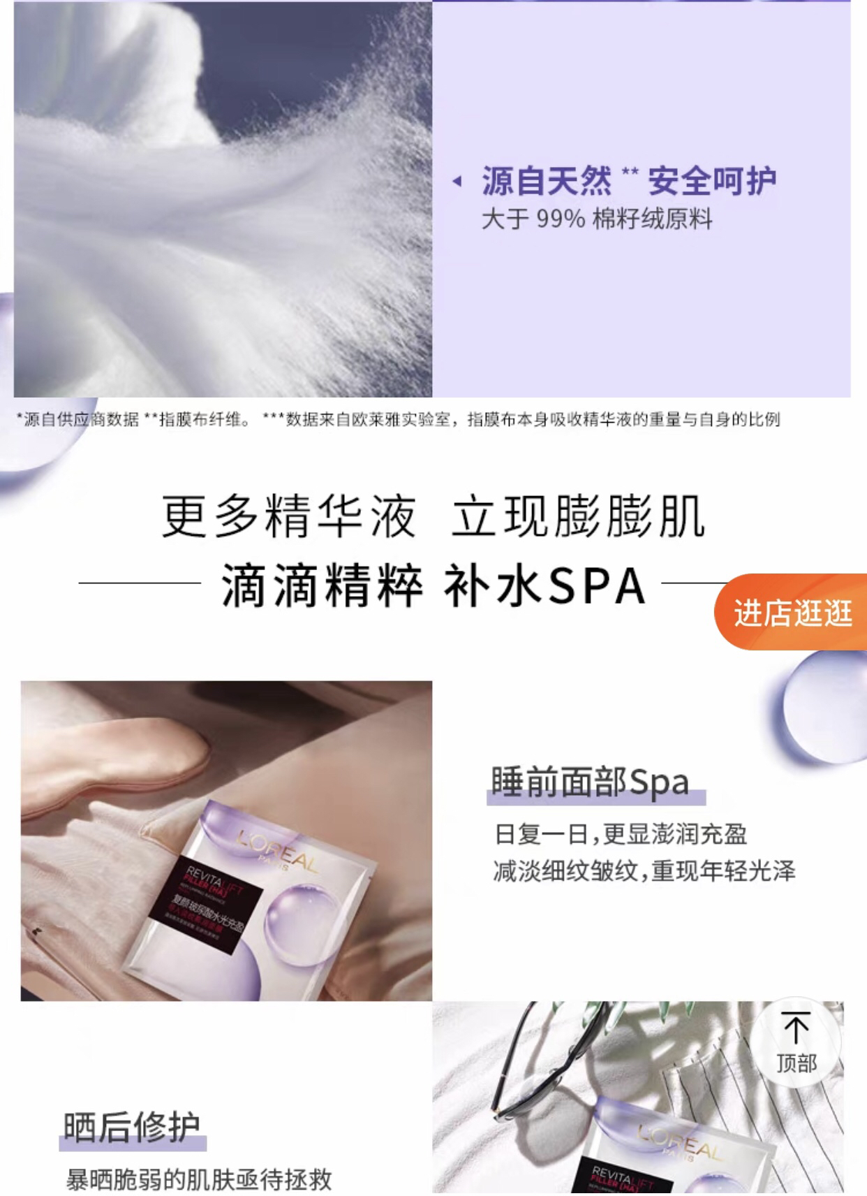 欧莱雅复颜玻尿酸淡纹精华面膜-补水保湿淡纹紧致舒缓-15片-金卡会员6折