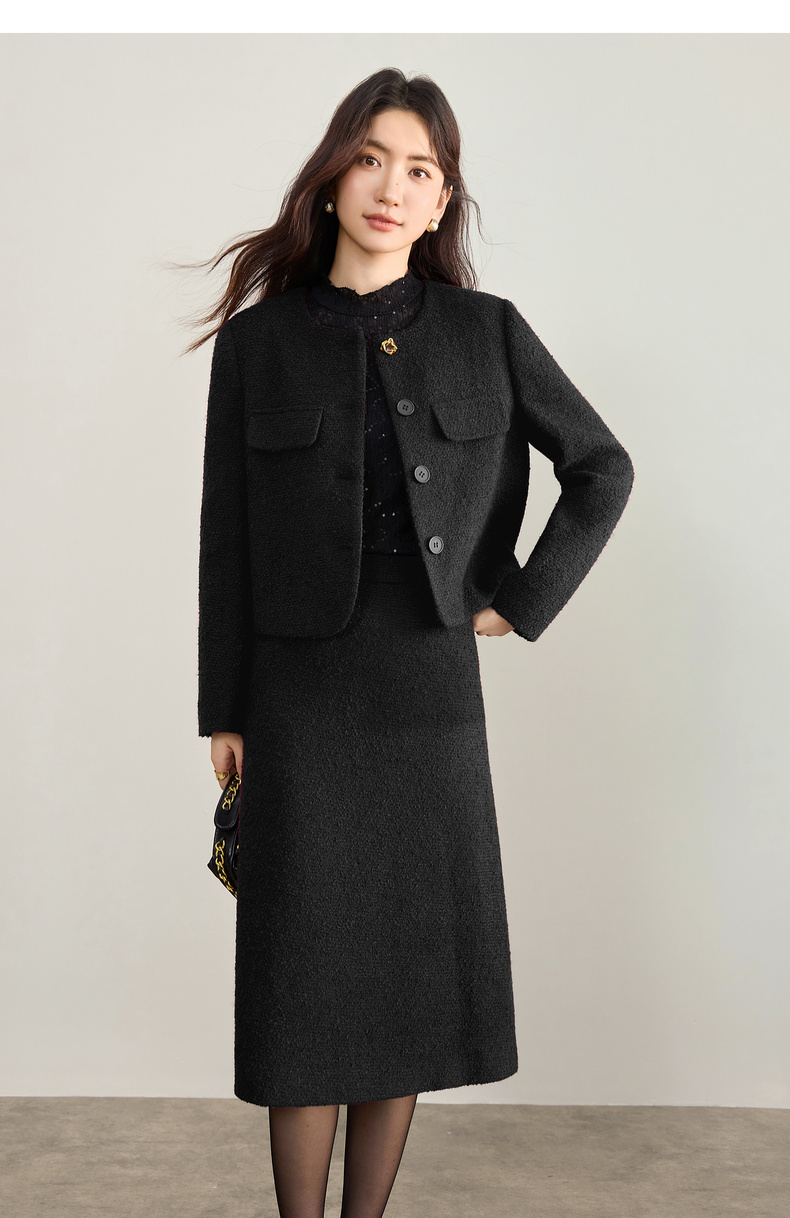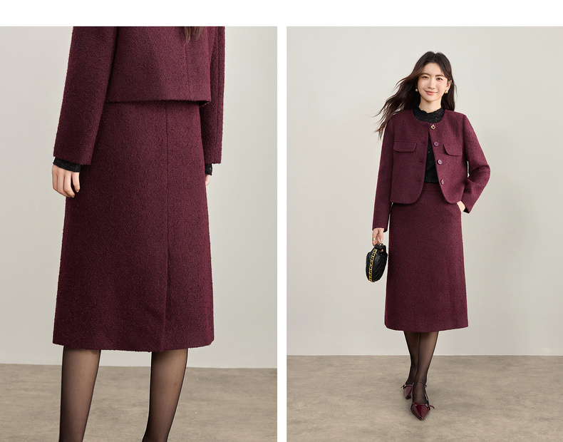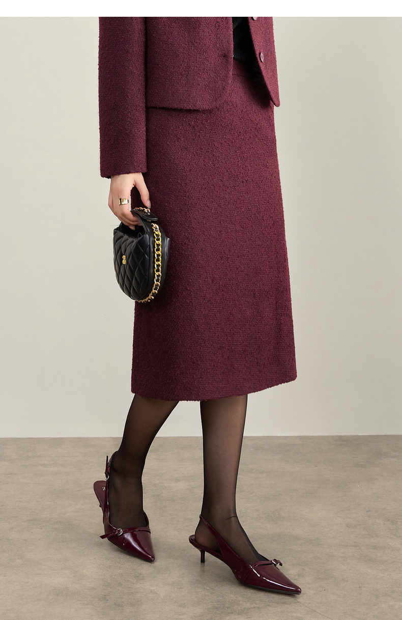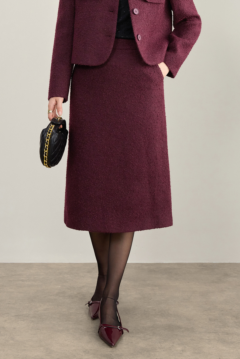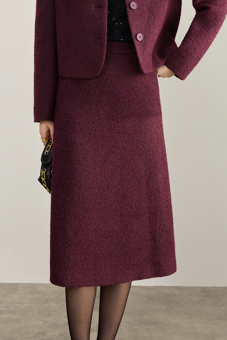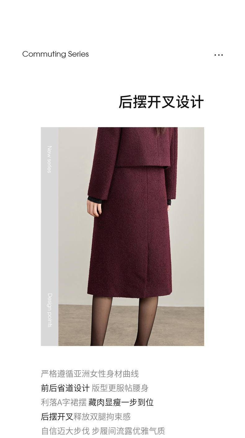 【内购】【含绵羊毛】优雅通勤下摆开叉设计A字中长裙半身裙-153QA3551