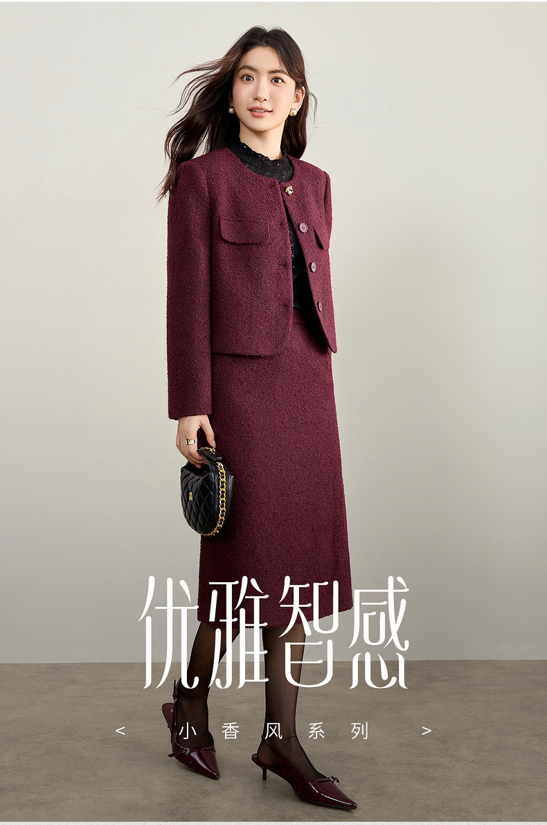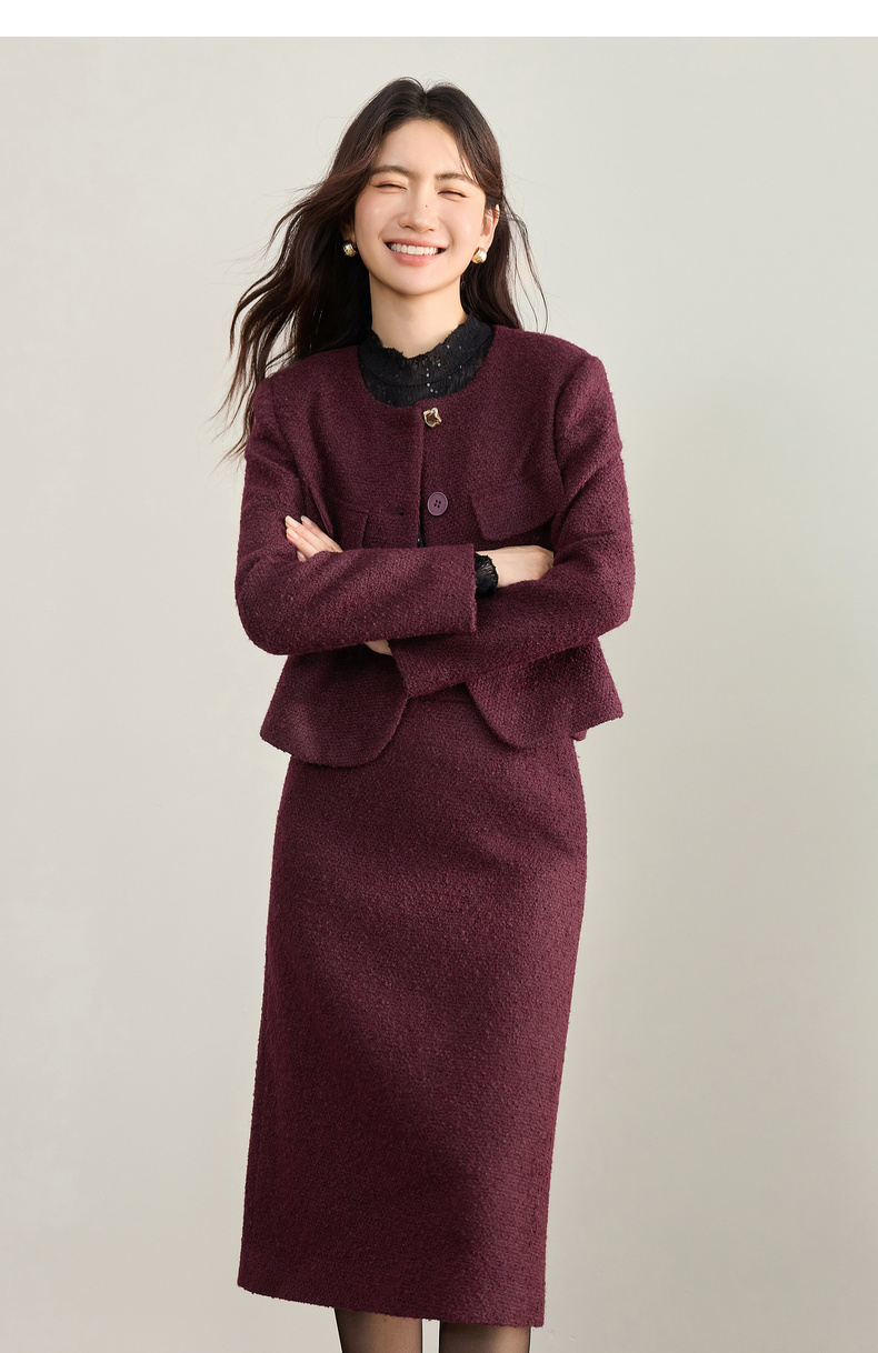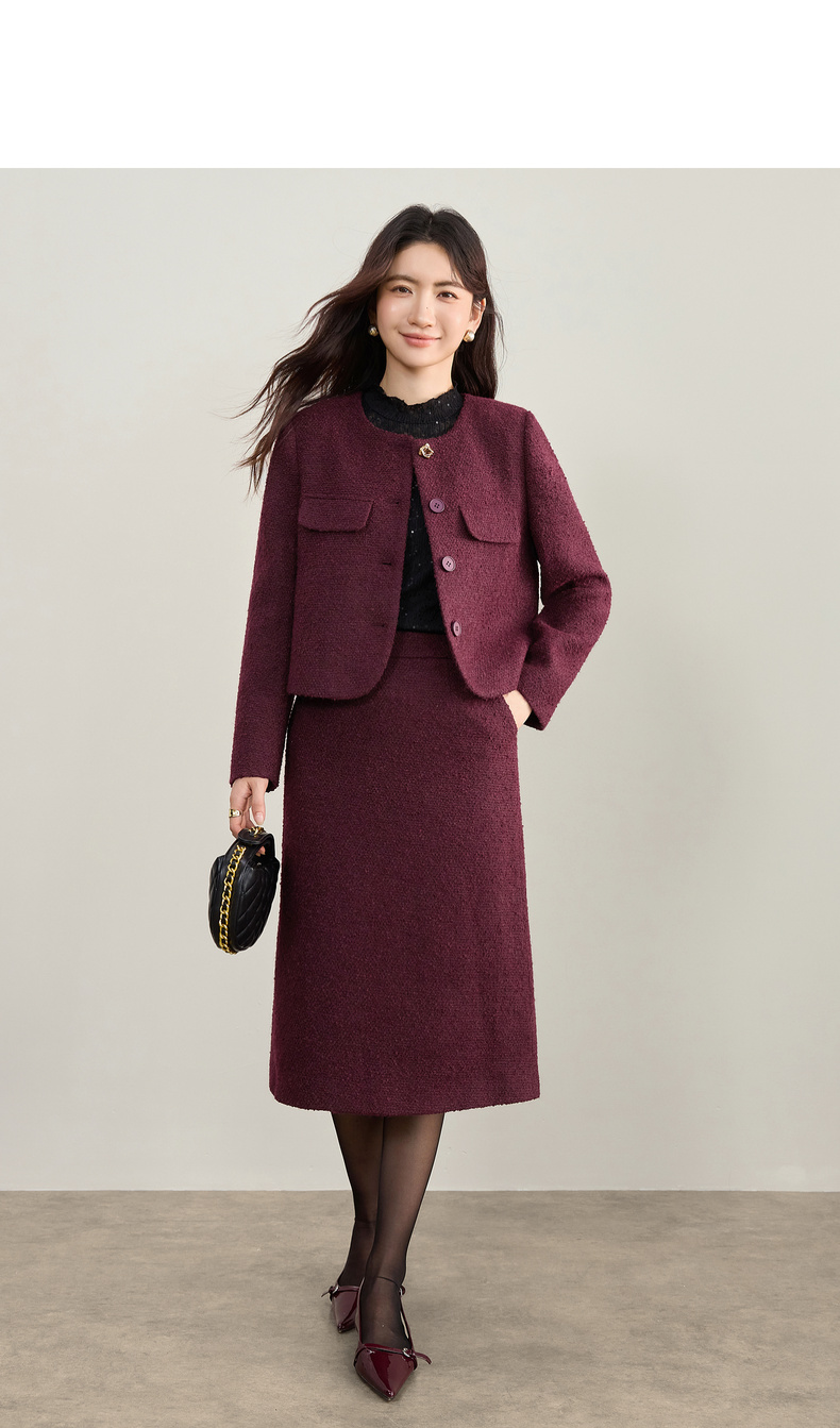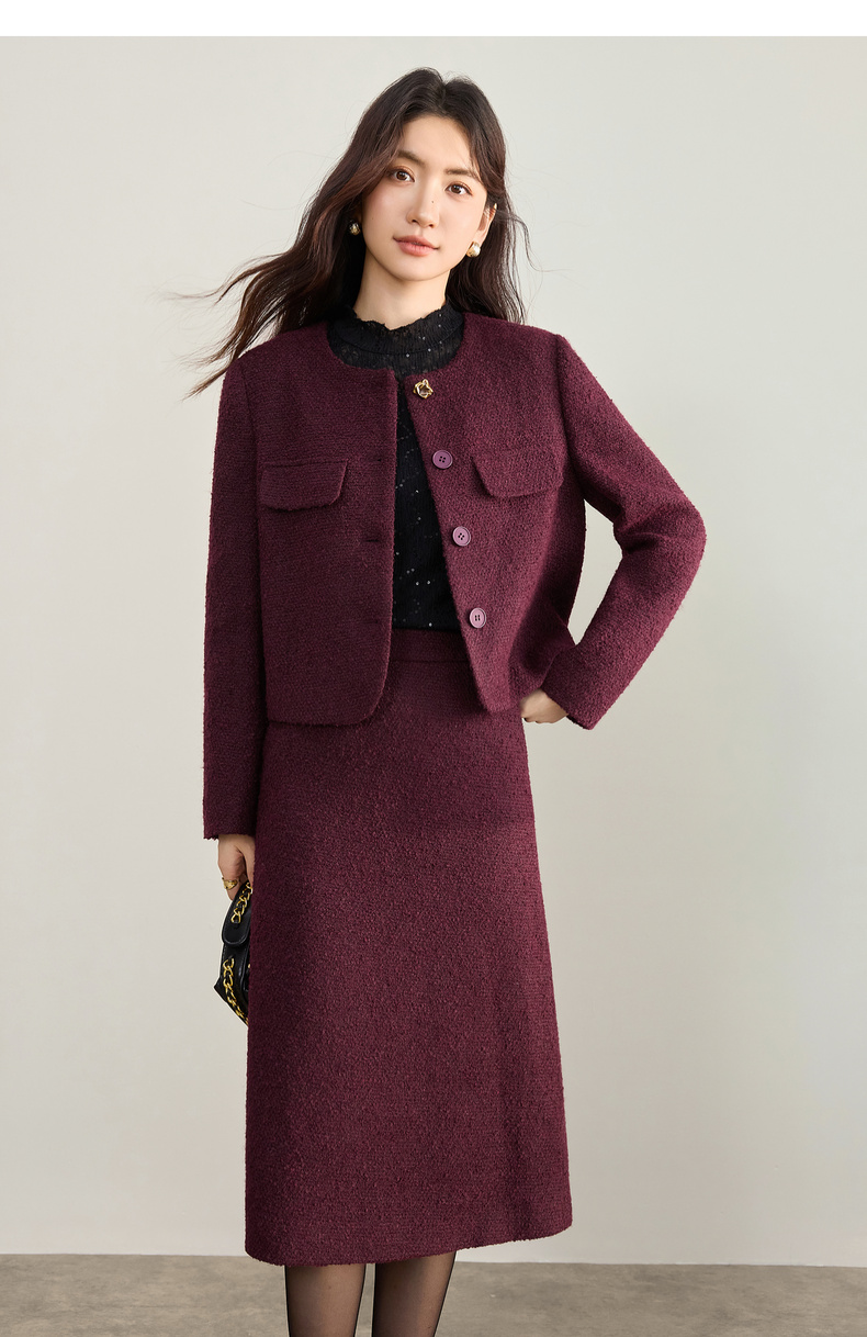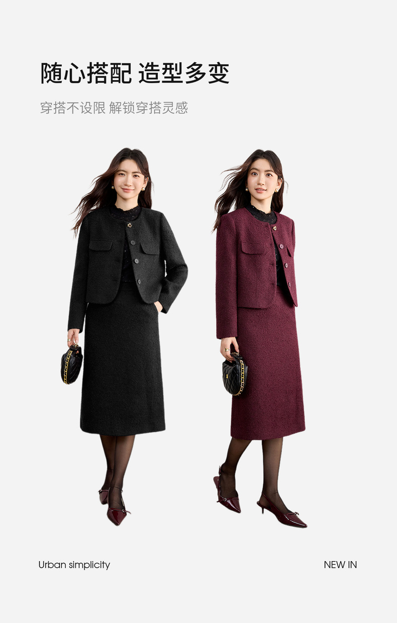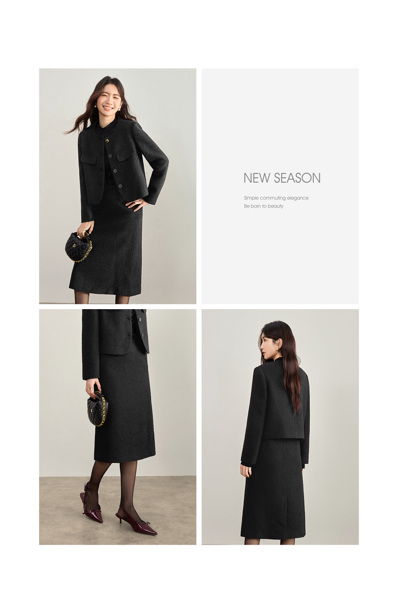 【内购】【含绵羊毛】优雅通勤下摆开叉设计A字中长裙半身裙-153QA3551
