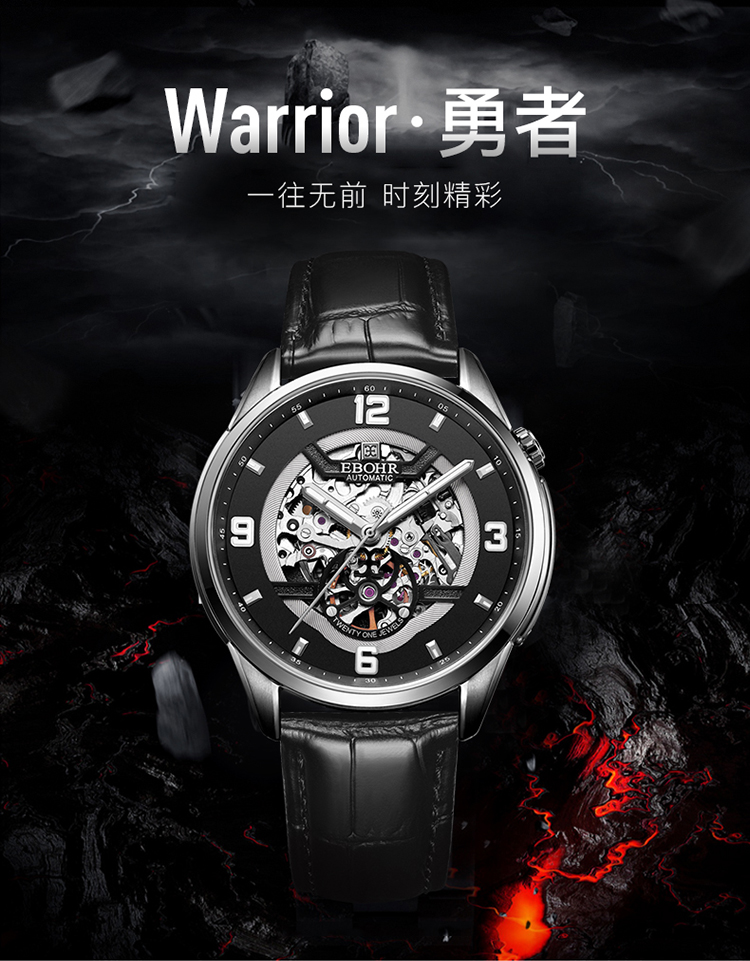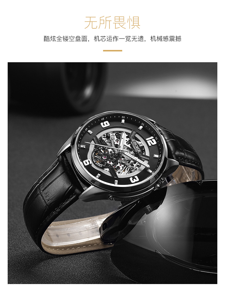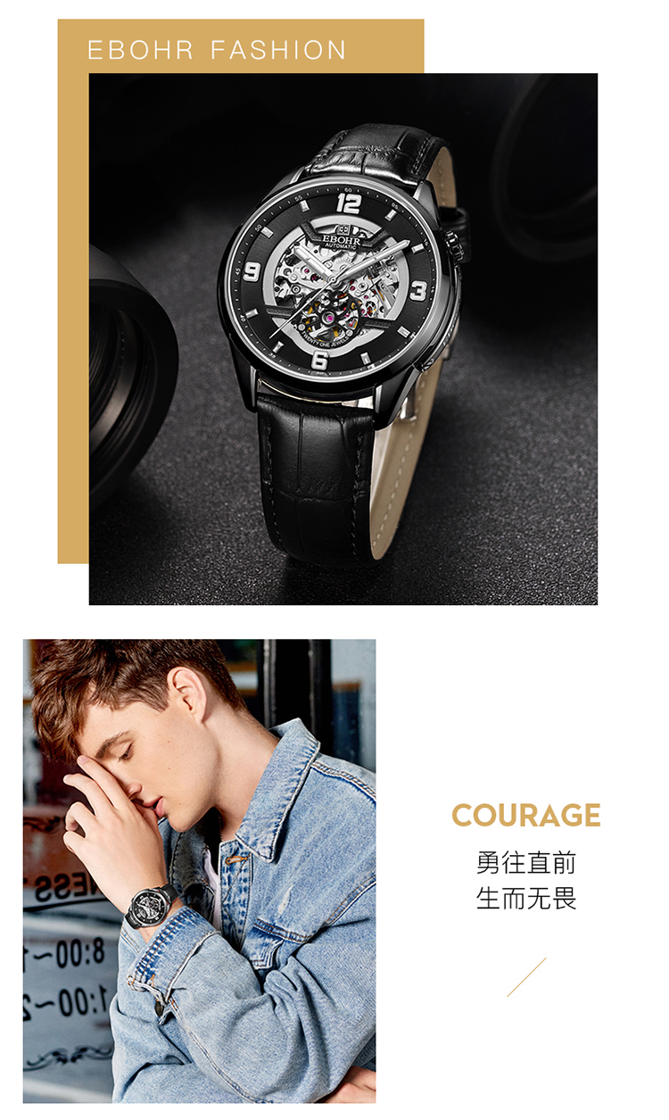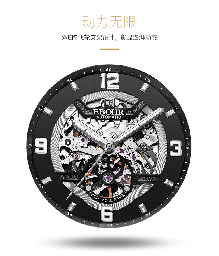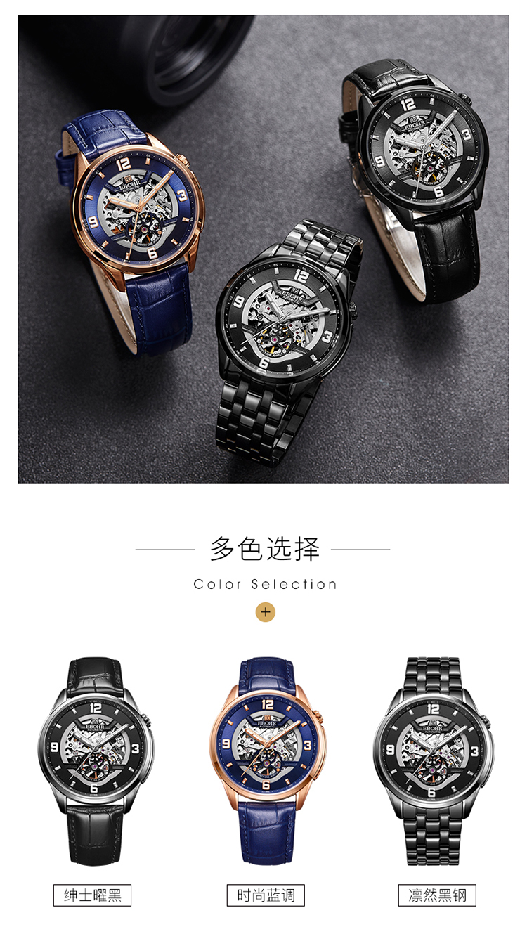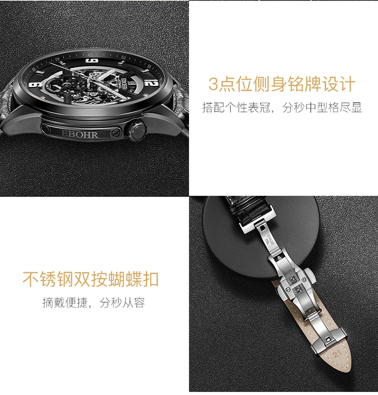 依波(EBOHR)男表大师系列正品防水镂空自动机械表男表3636