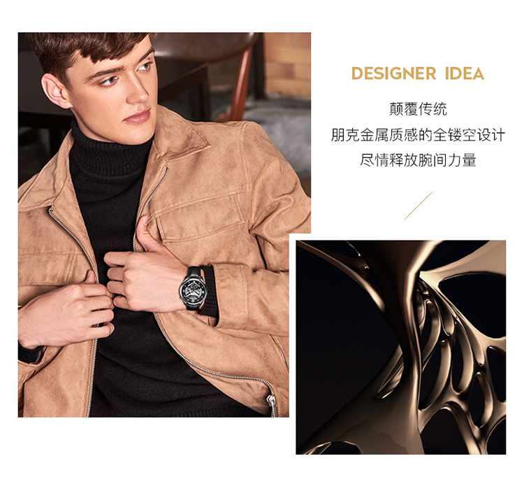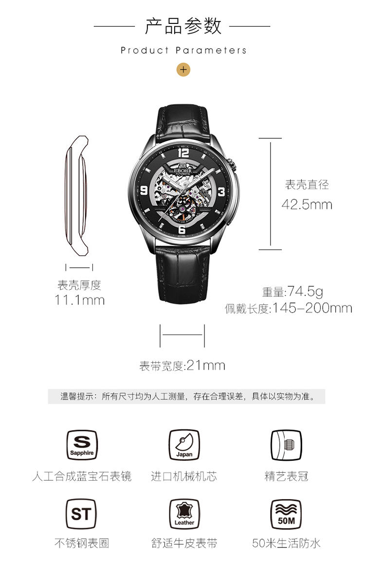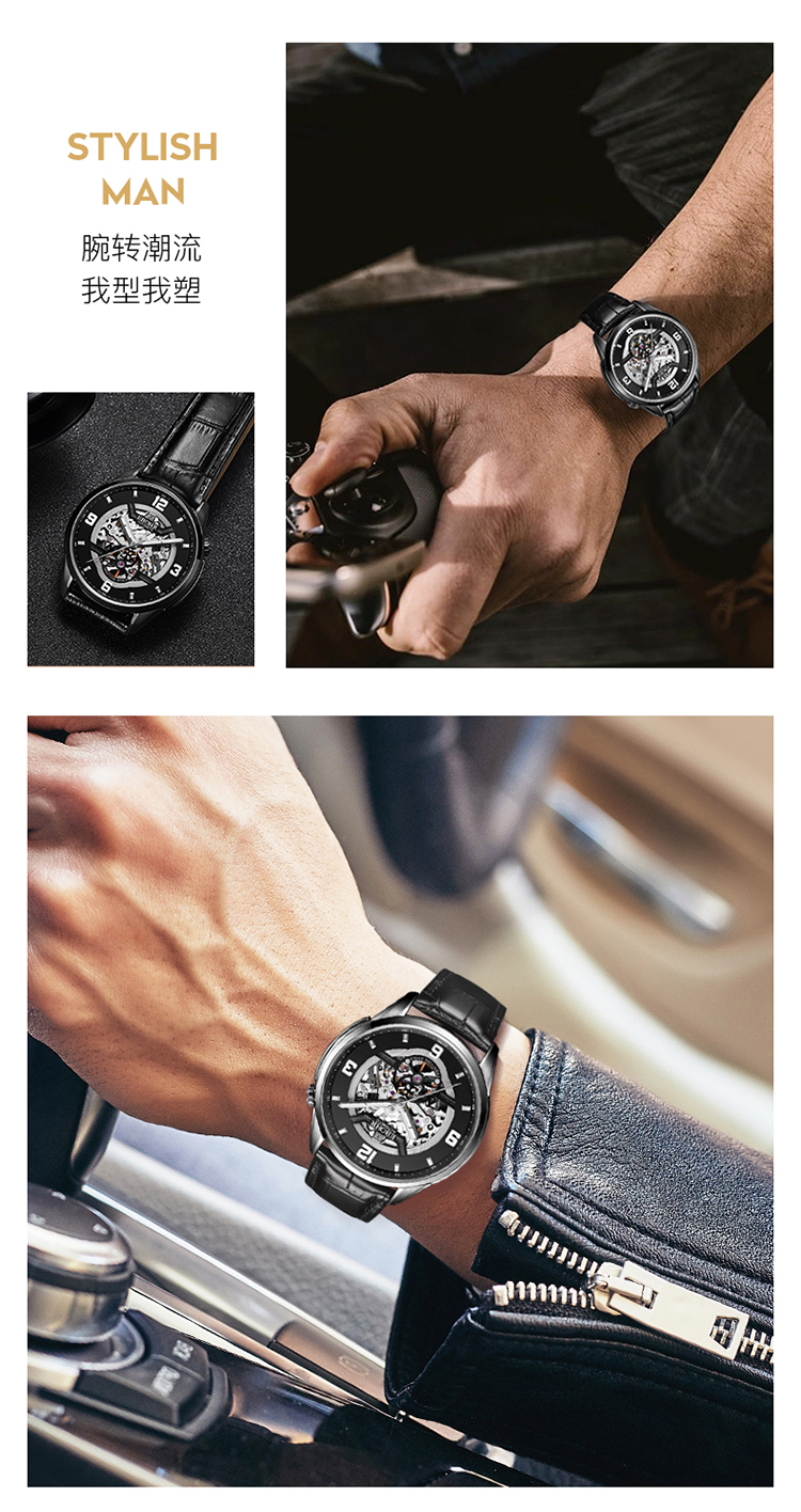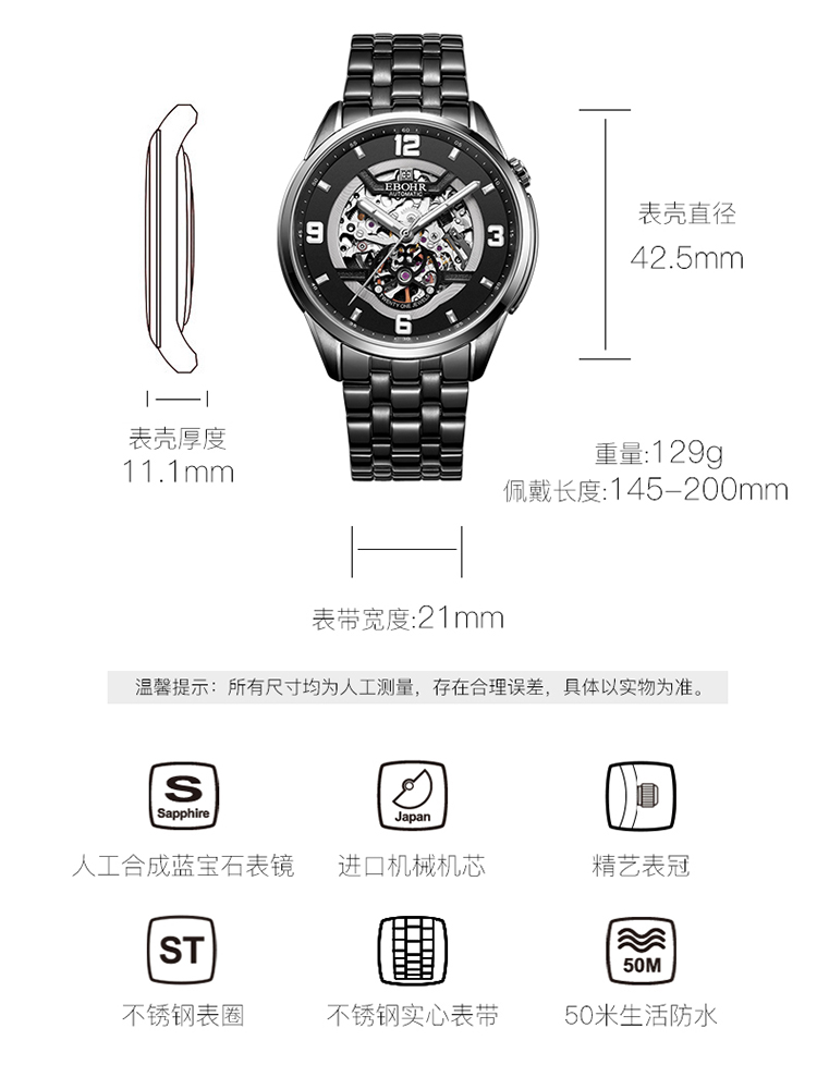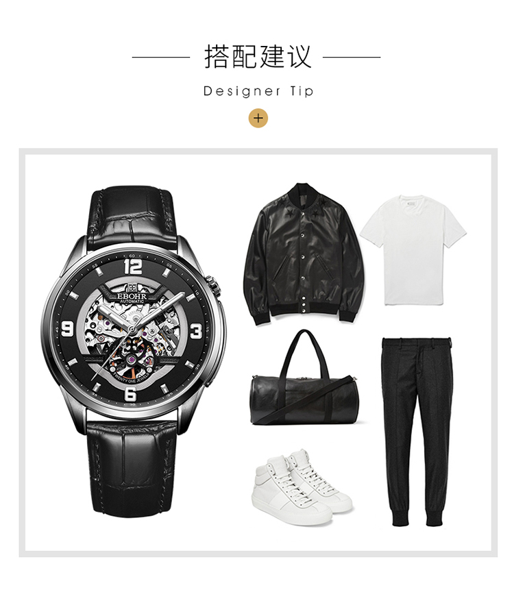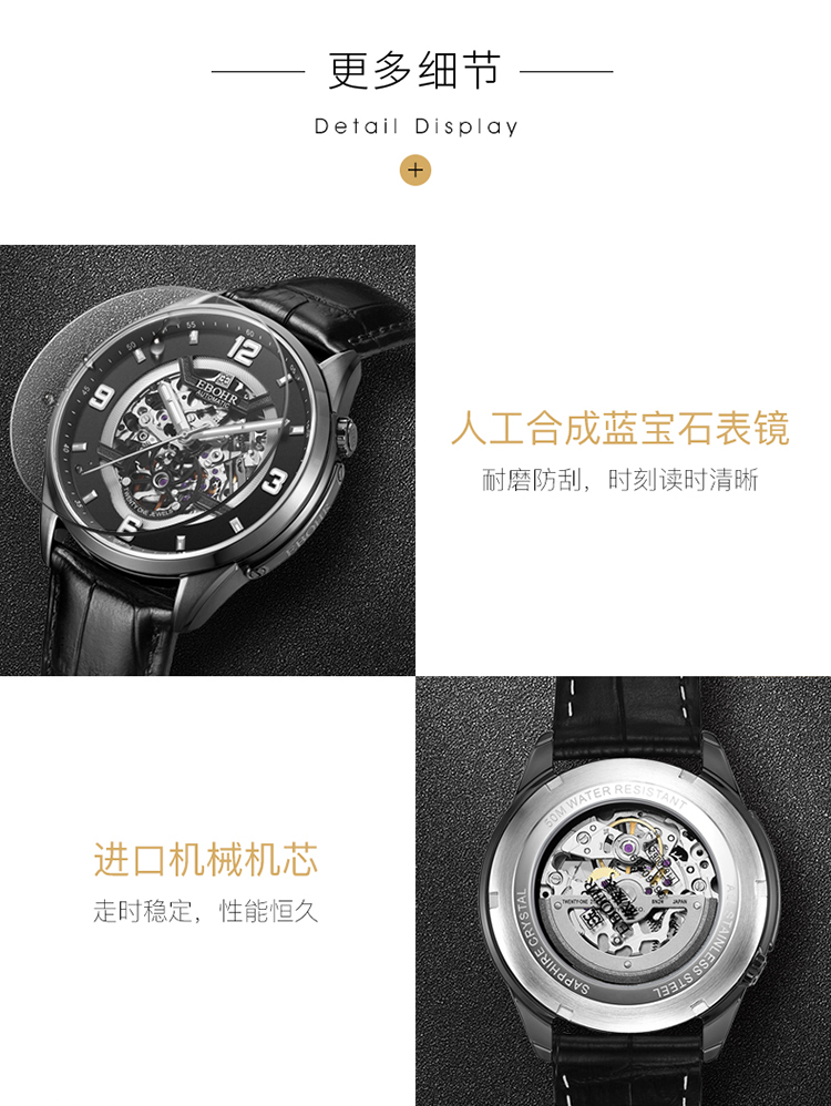依波(EBOHR)男表大师系列正品防水镂空自动机械表男表3636
