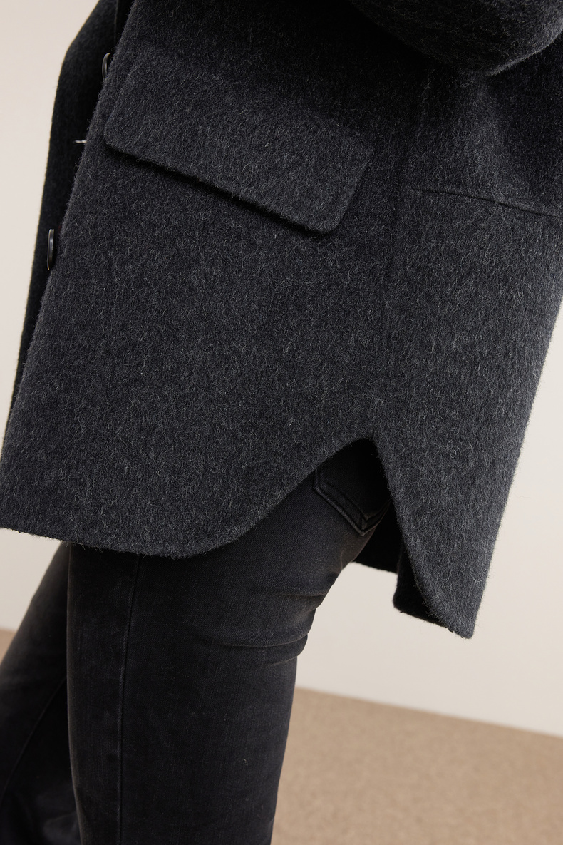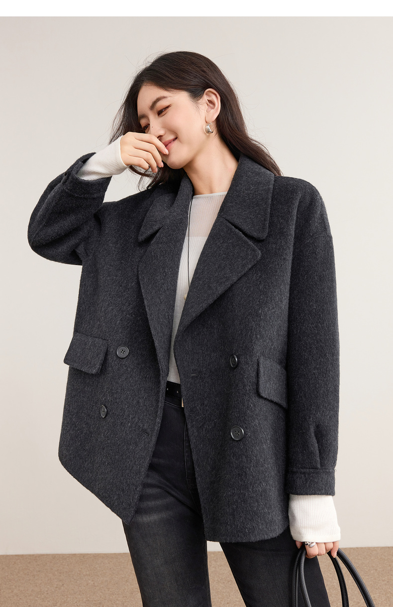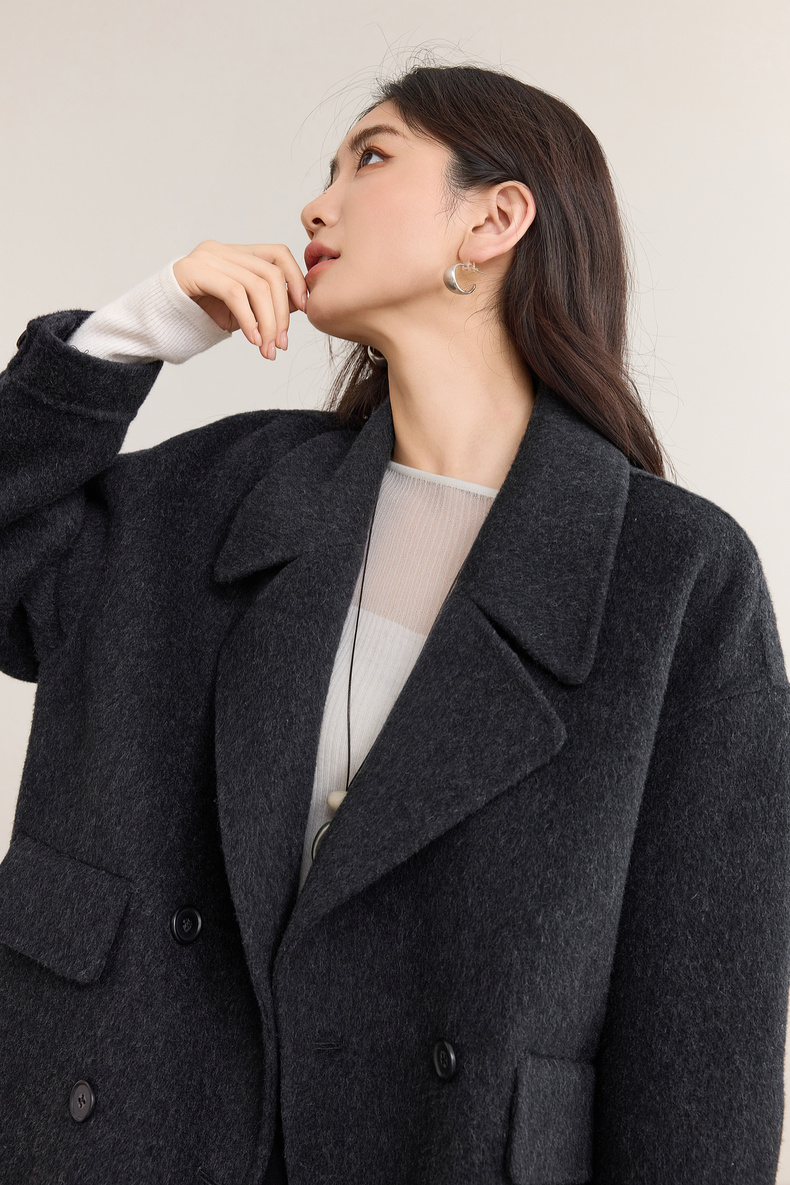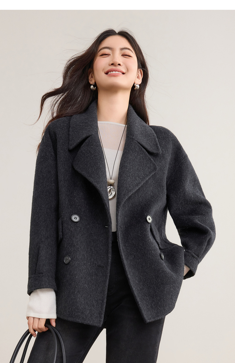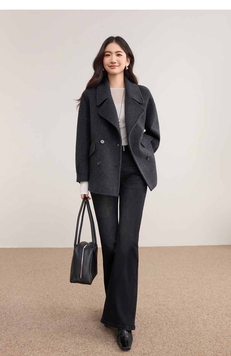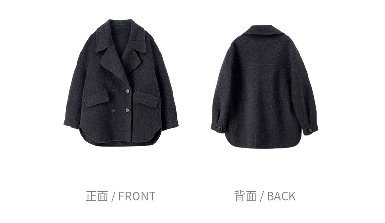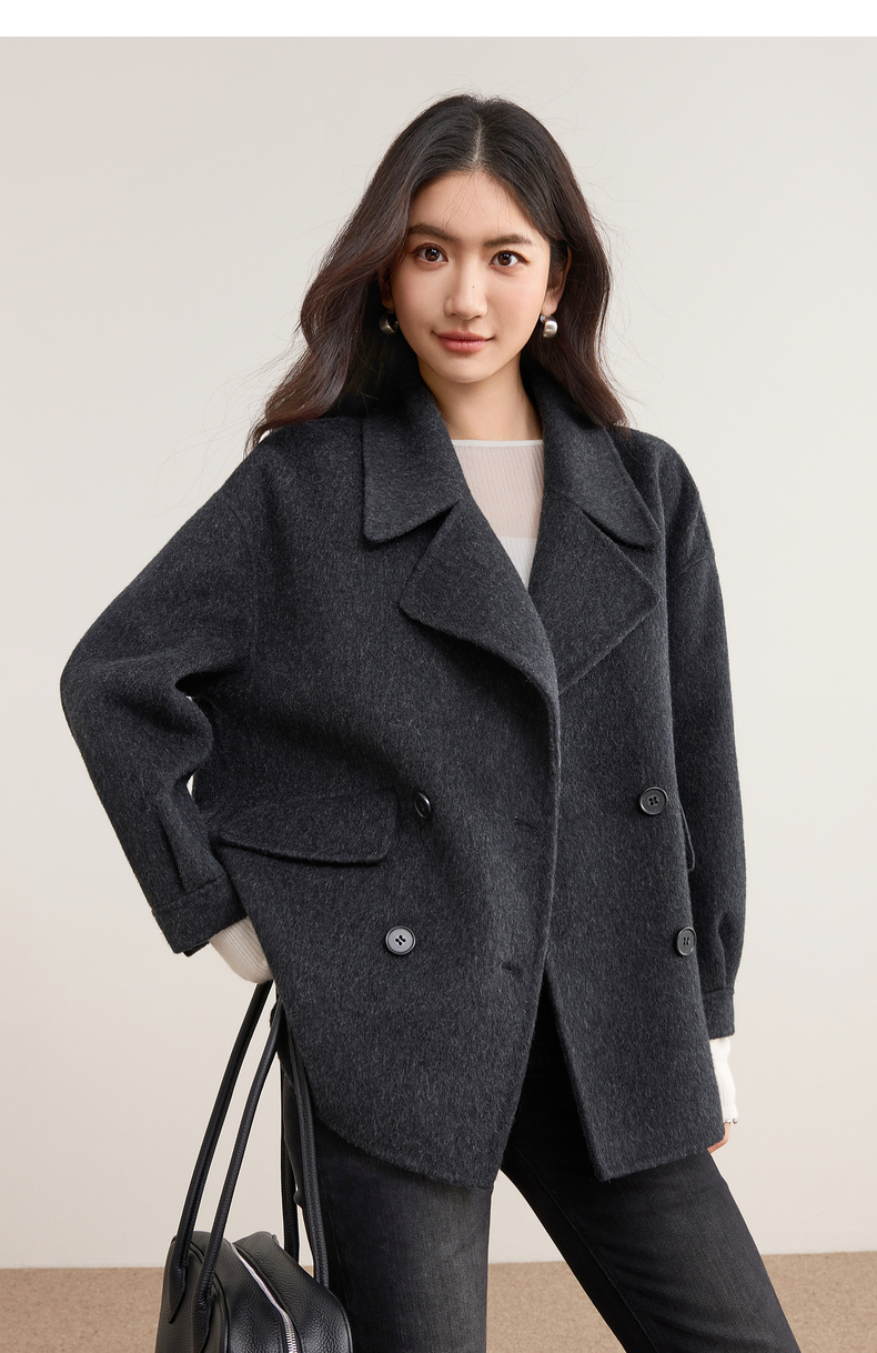 【内购】【绵羊毛】英伦风格雷系通勤翻驳领双排扣宽松显瘦保暖双面呢外套-W54OC8775