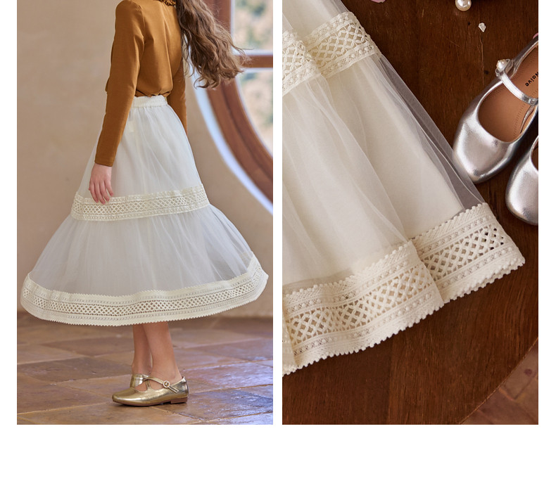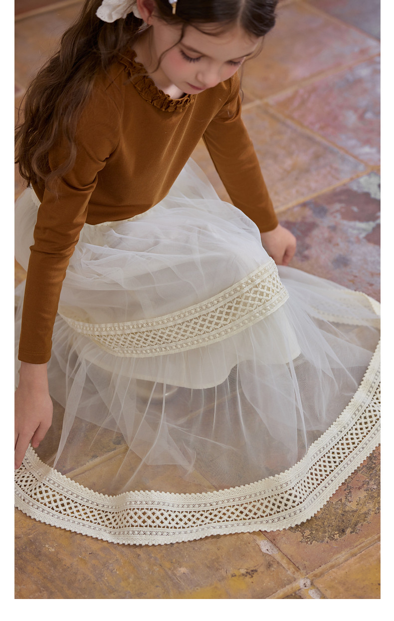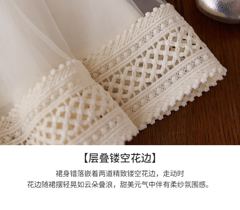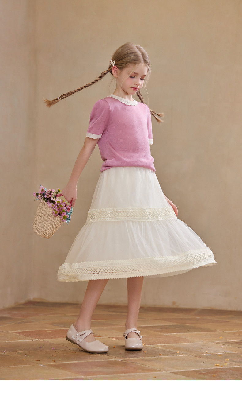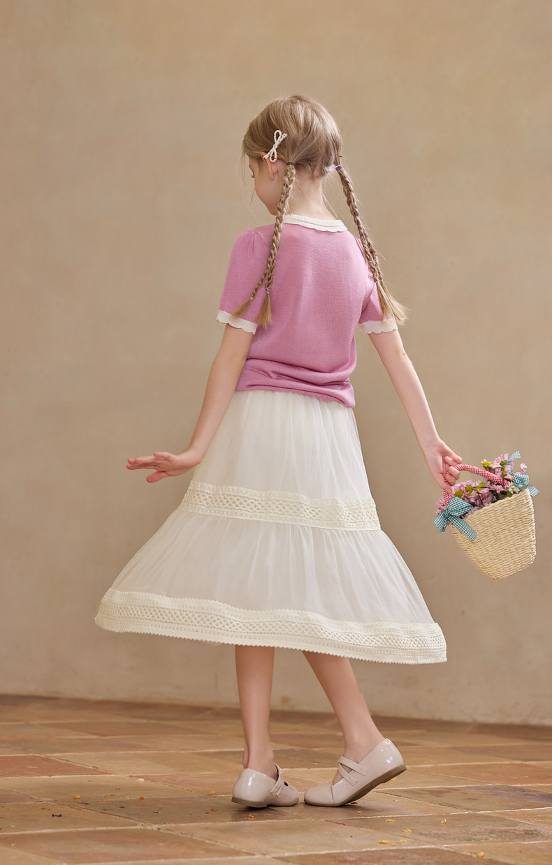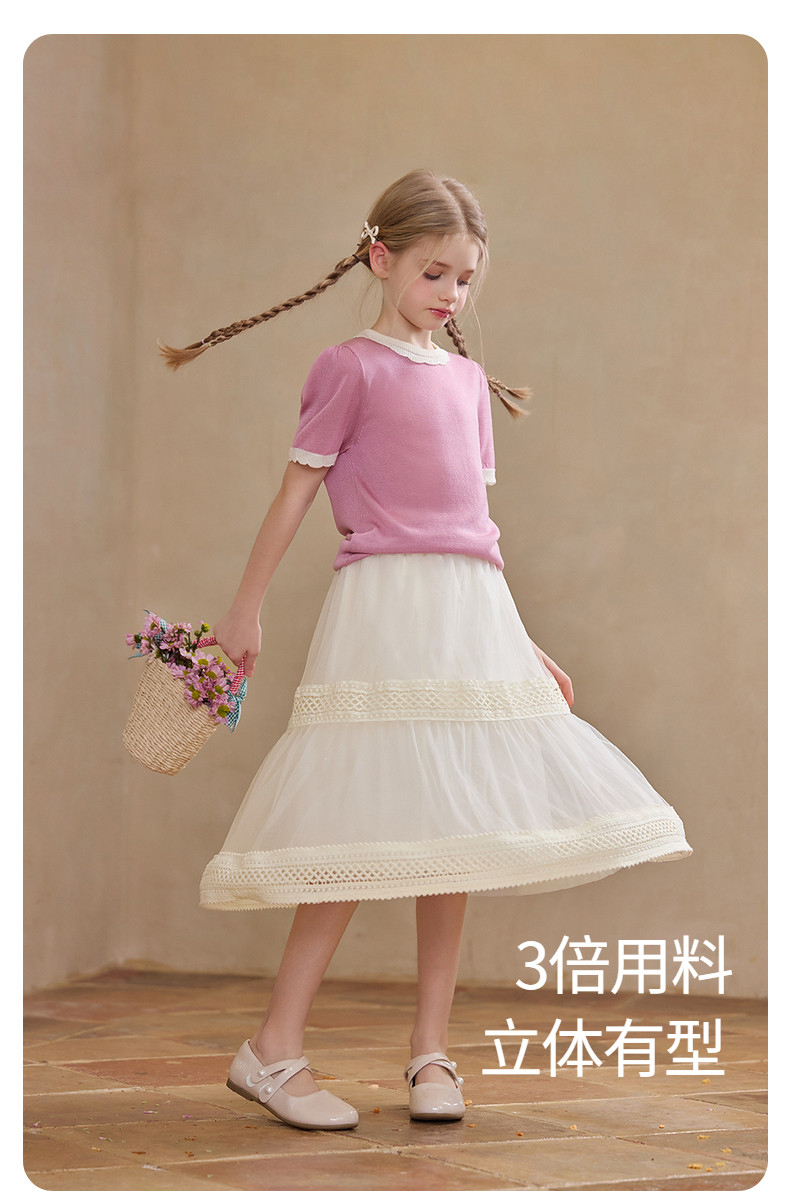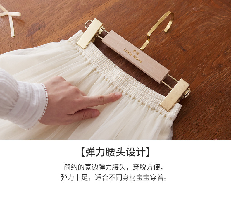 【云优选】Little Naive女童拼接半身裙春季新款花边半裙儿童百搭时髦纱裙
