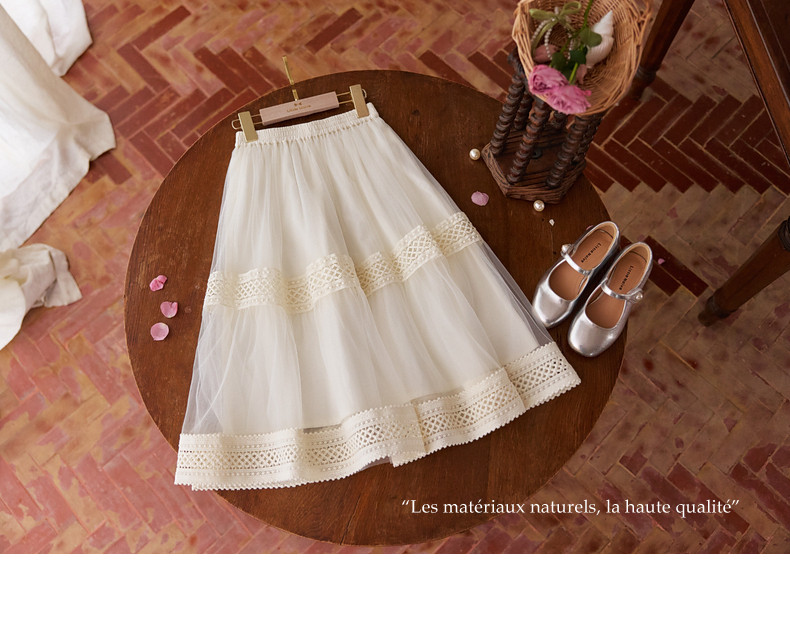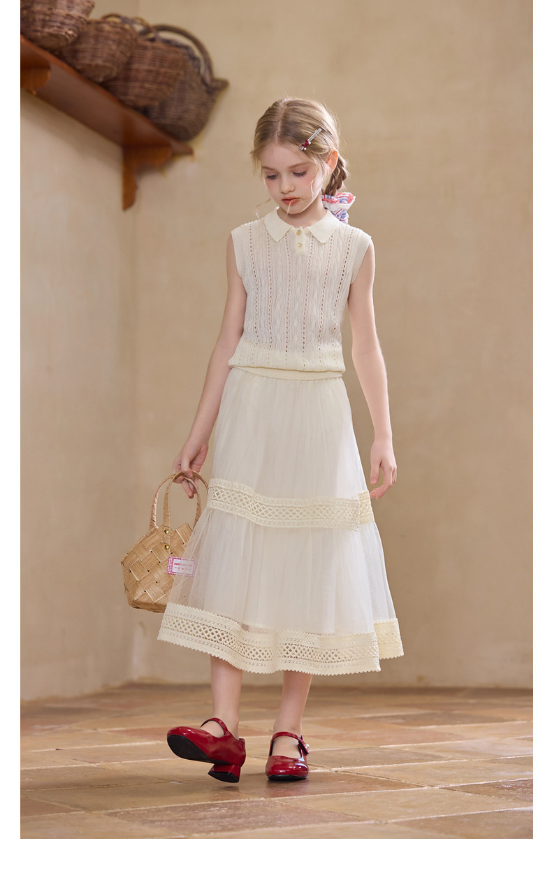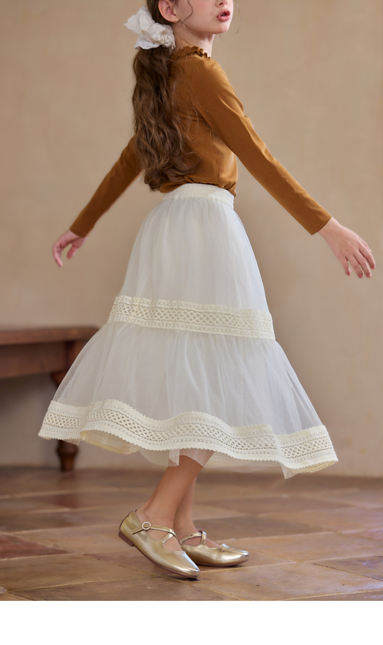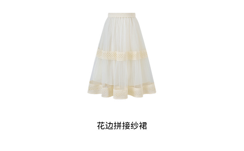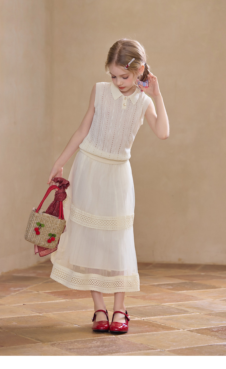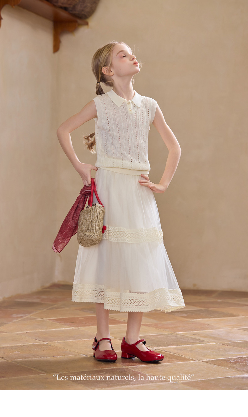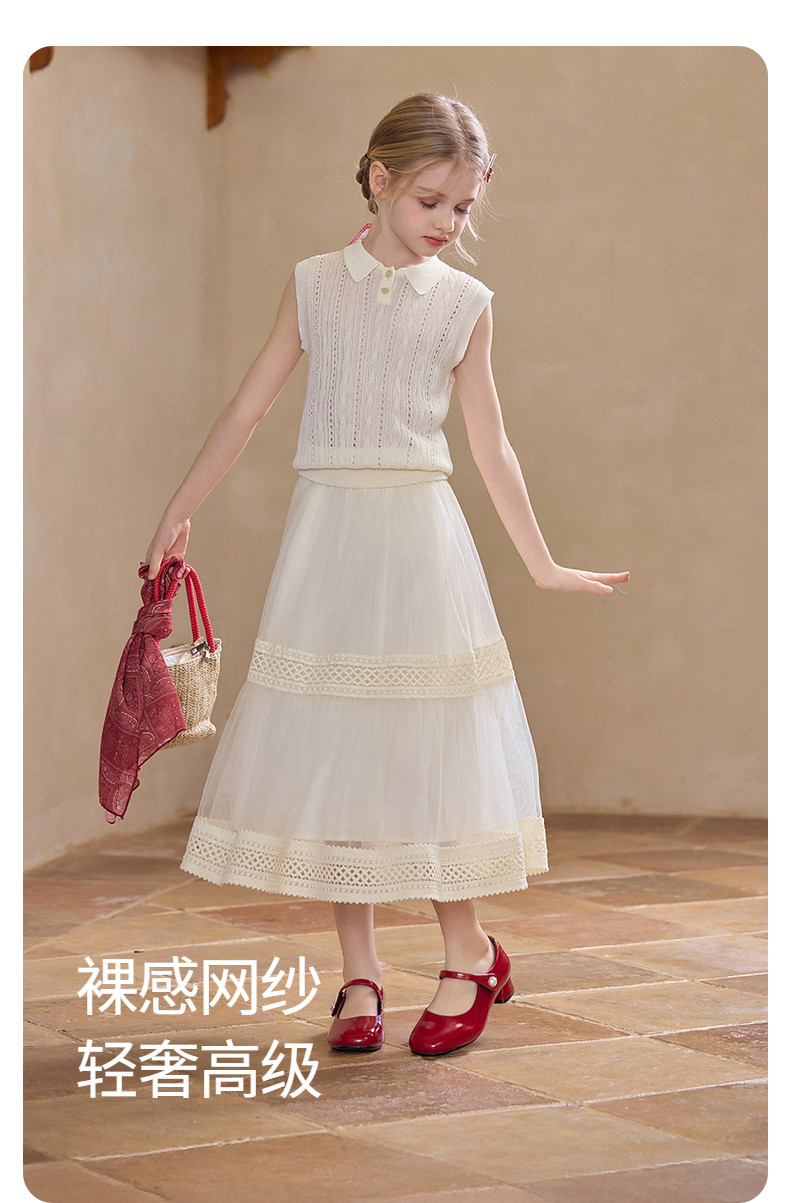 【云优选】Little Naive女童拼接半身裙春季新款花边半裙儿童百搭时髦纱裙