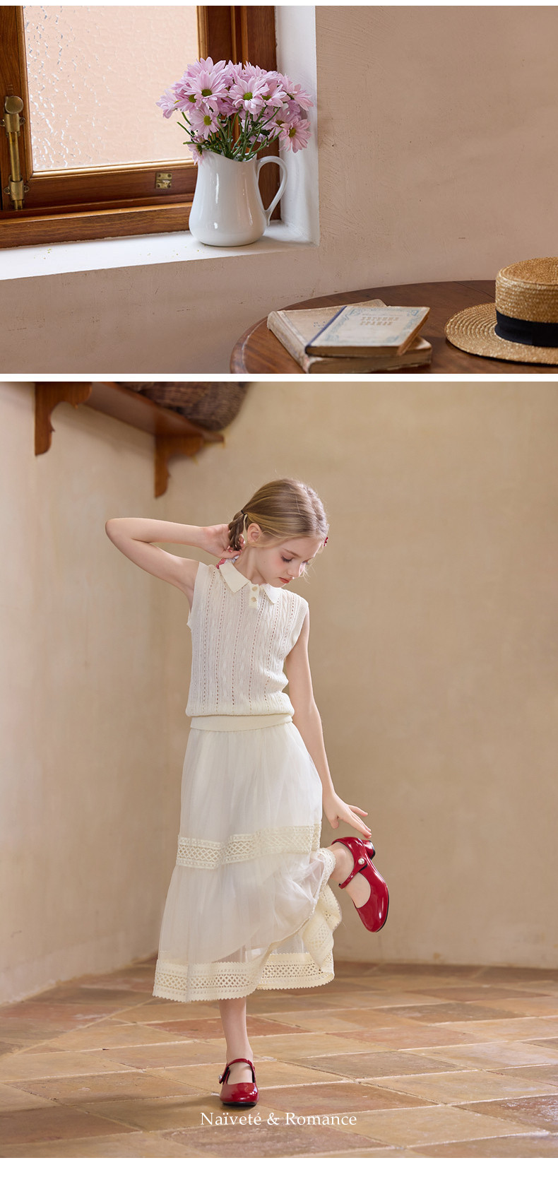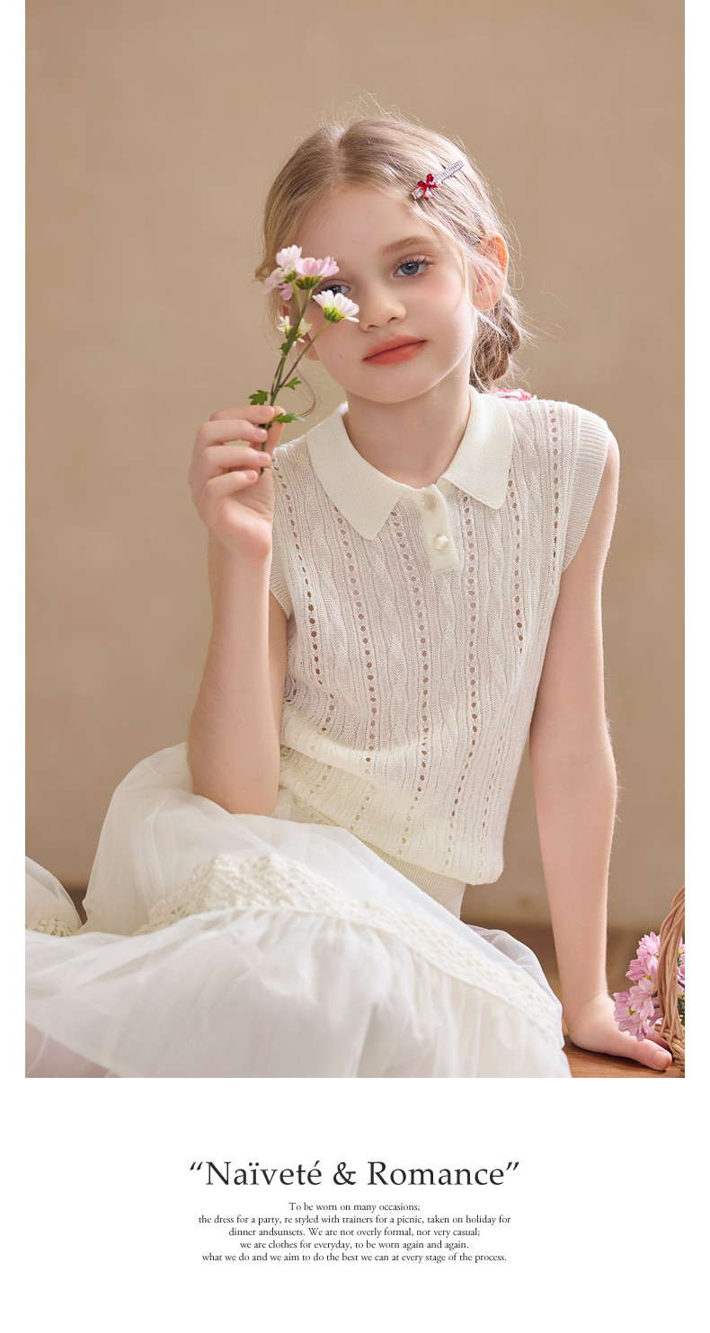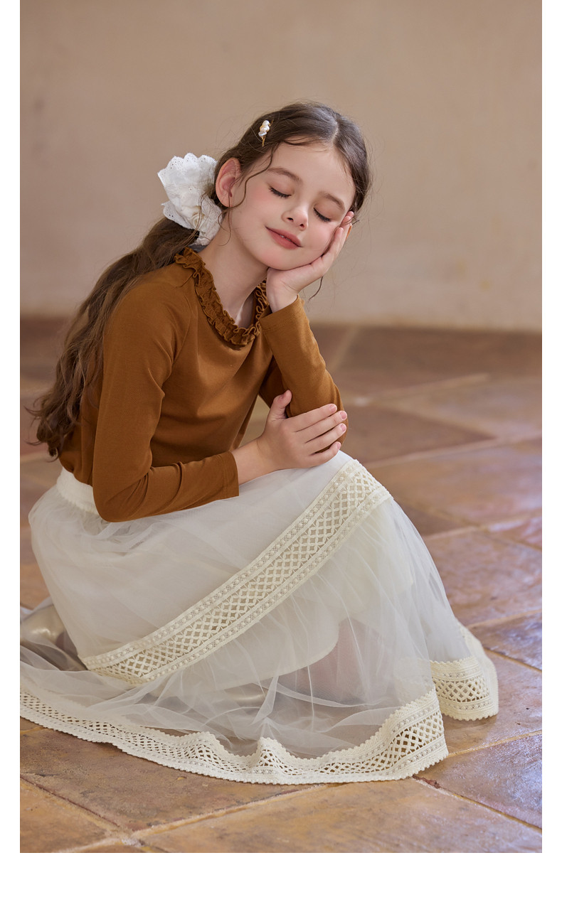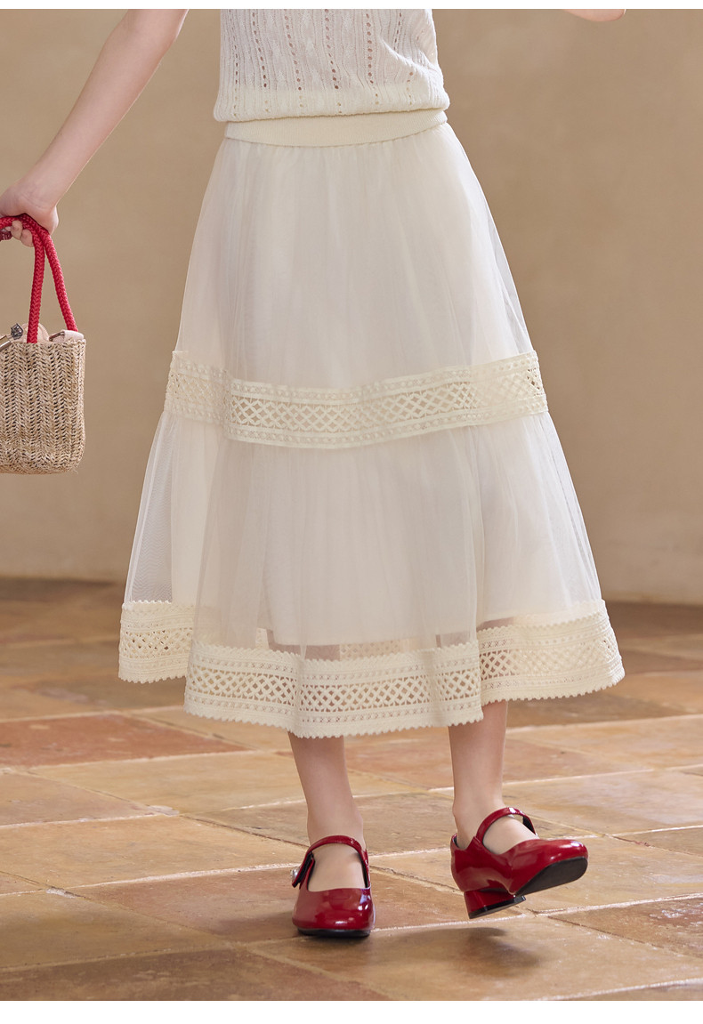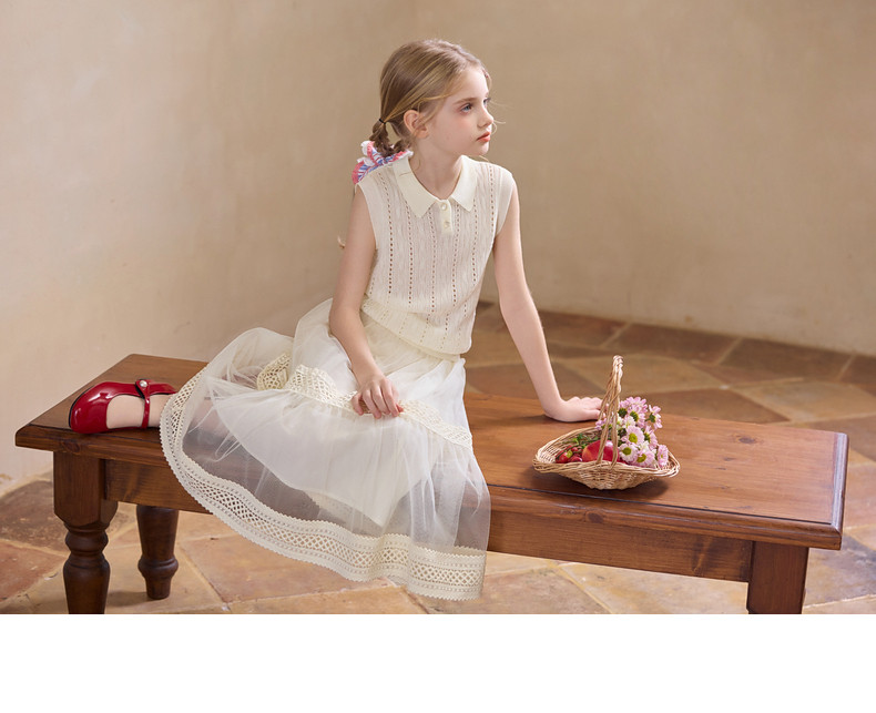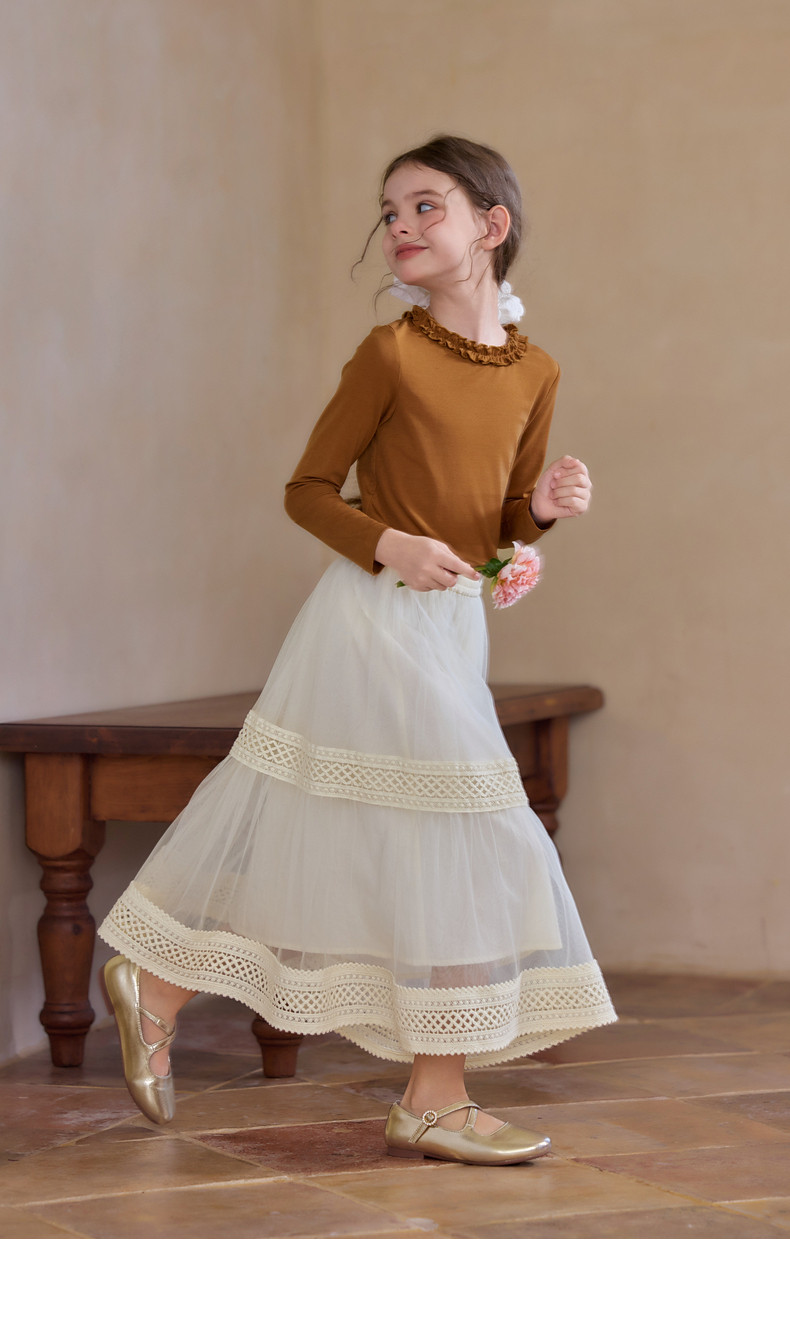 【云优选】Little Naive女童拼接半身裙春季新款花边半裙儿童百搭时髦纱裙