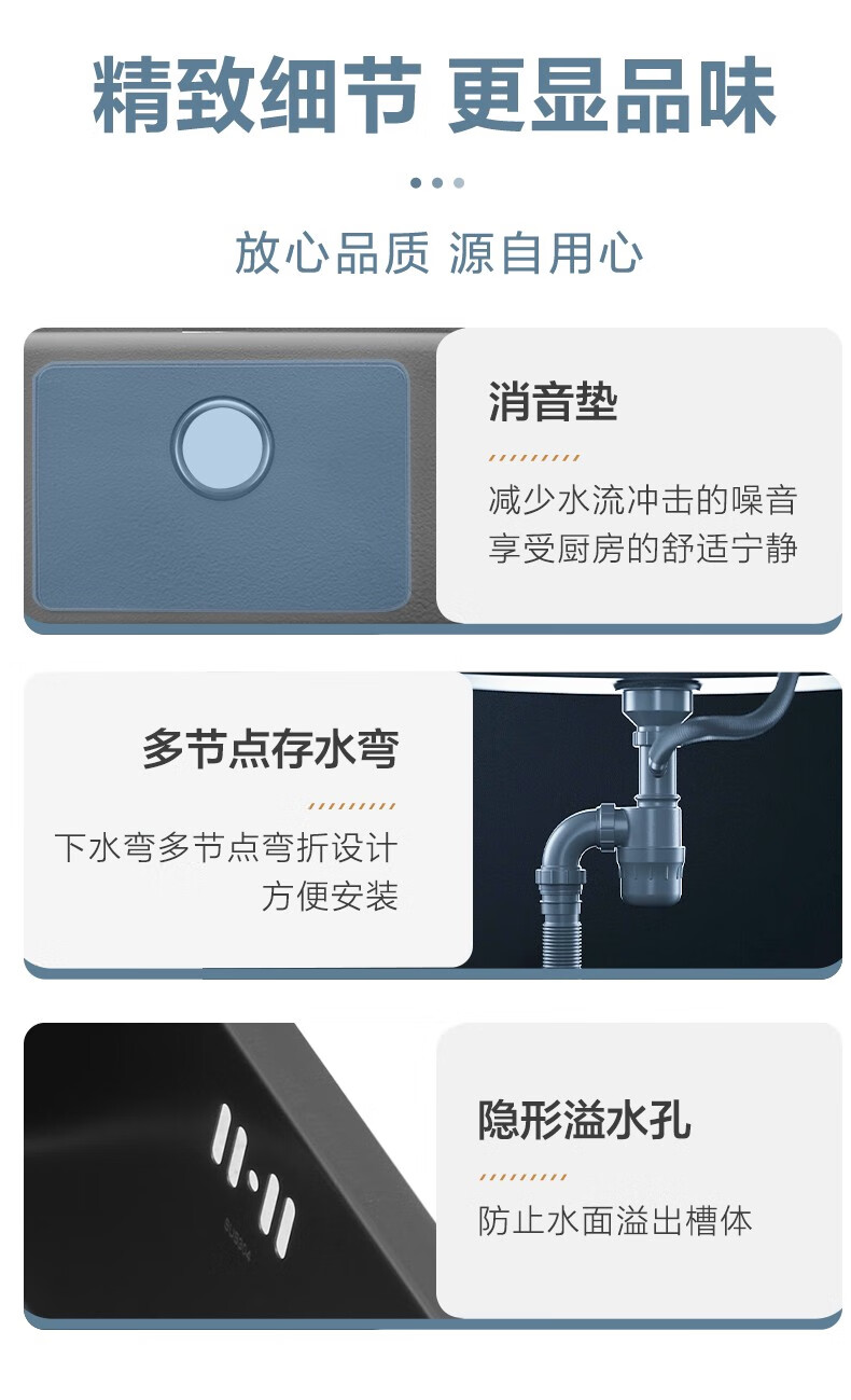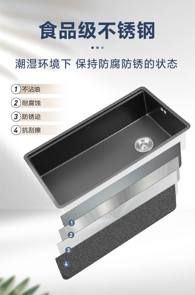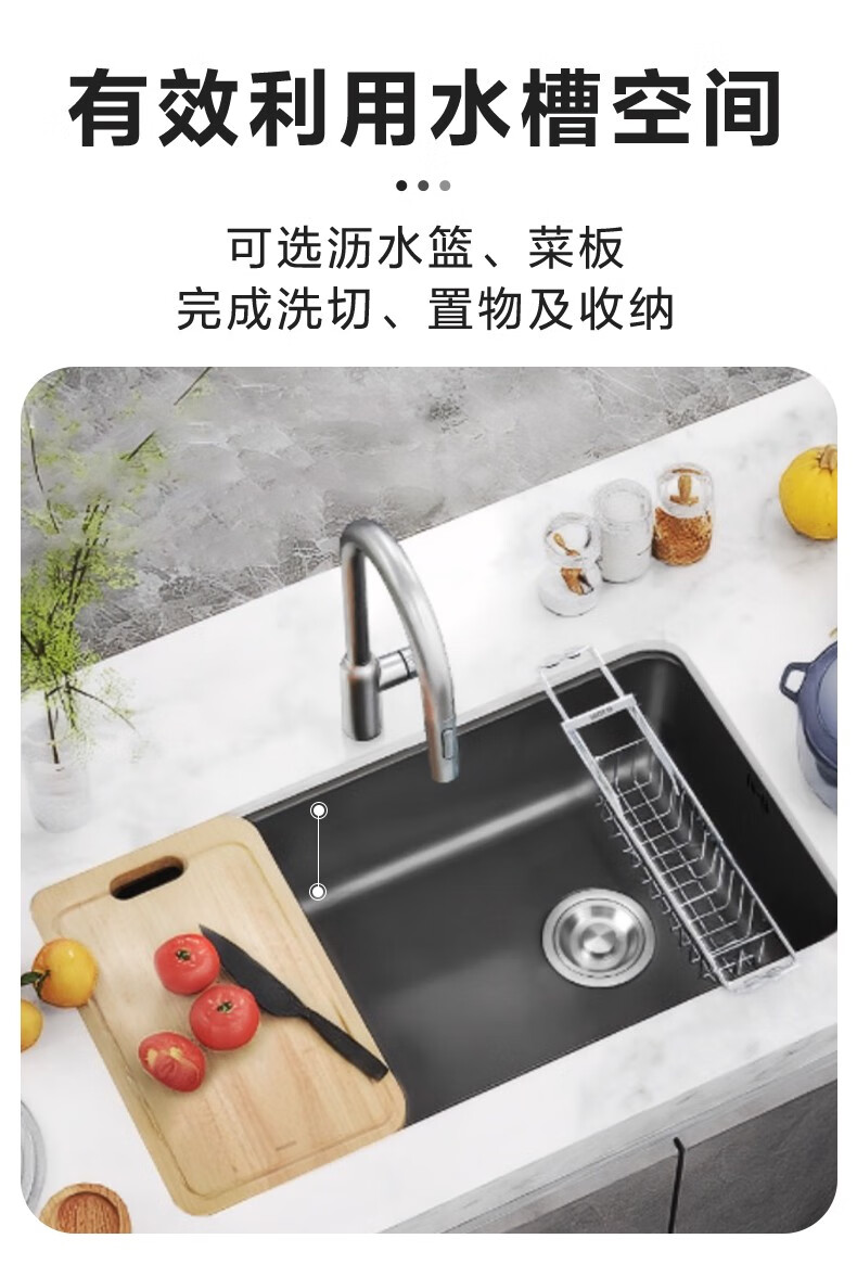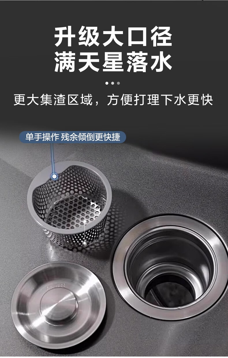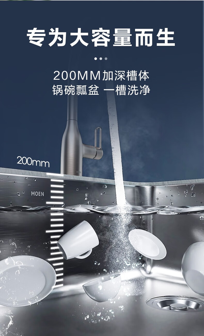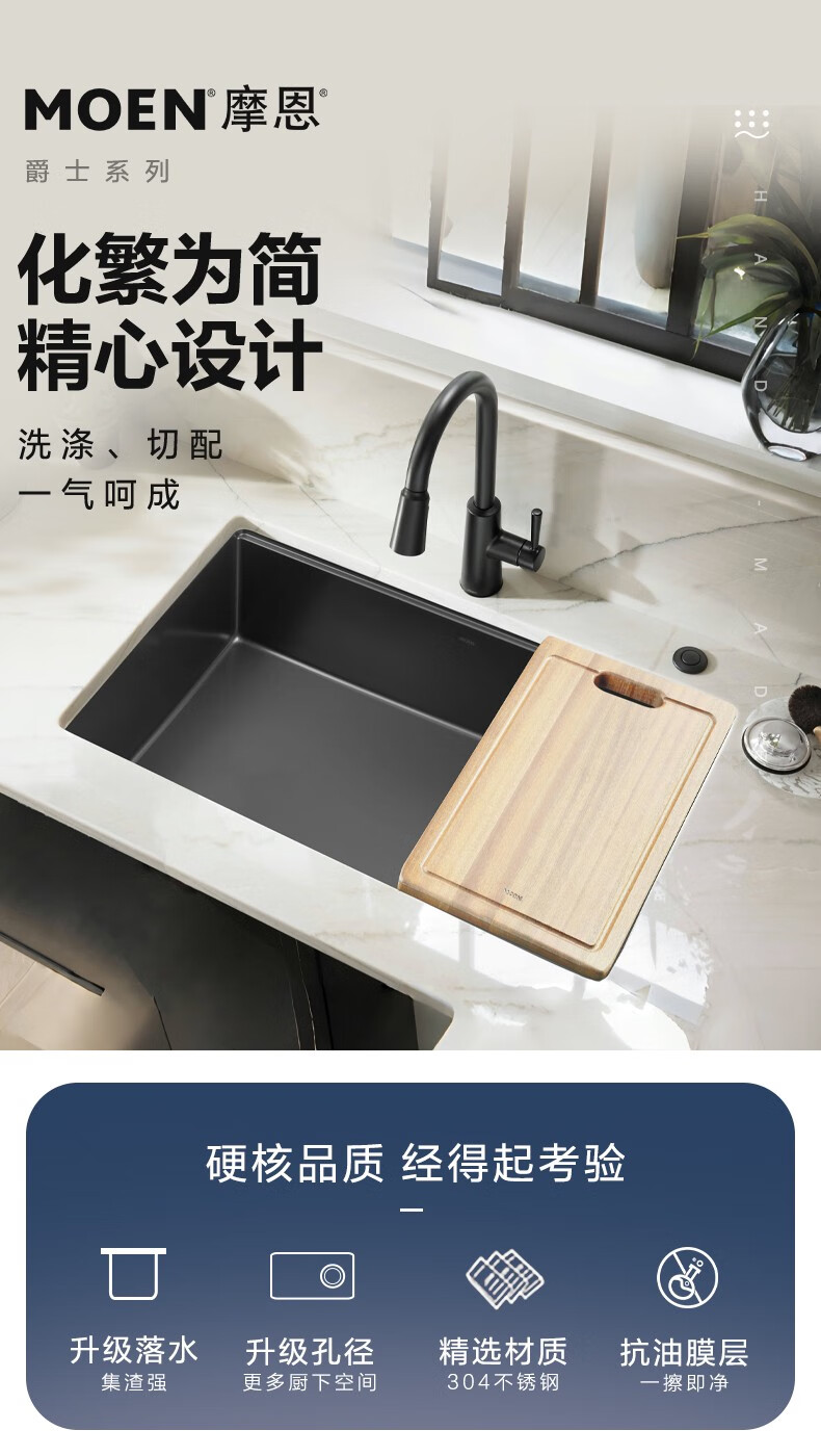 摩恩(MOEN)爵仕抗油枪灰色水槽大单槽304不锈钢洗菜盆厨房台下盆SK6 SK63833DB+SKA37