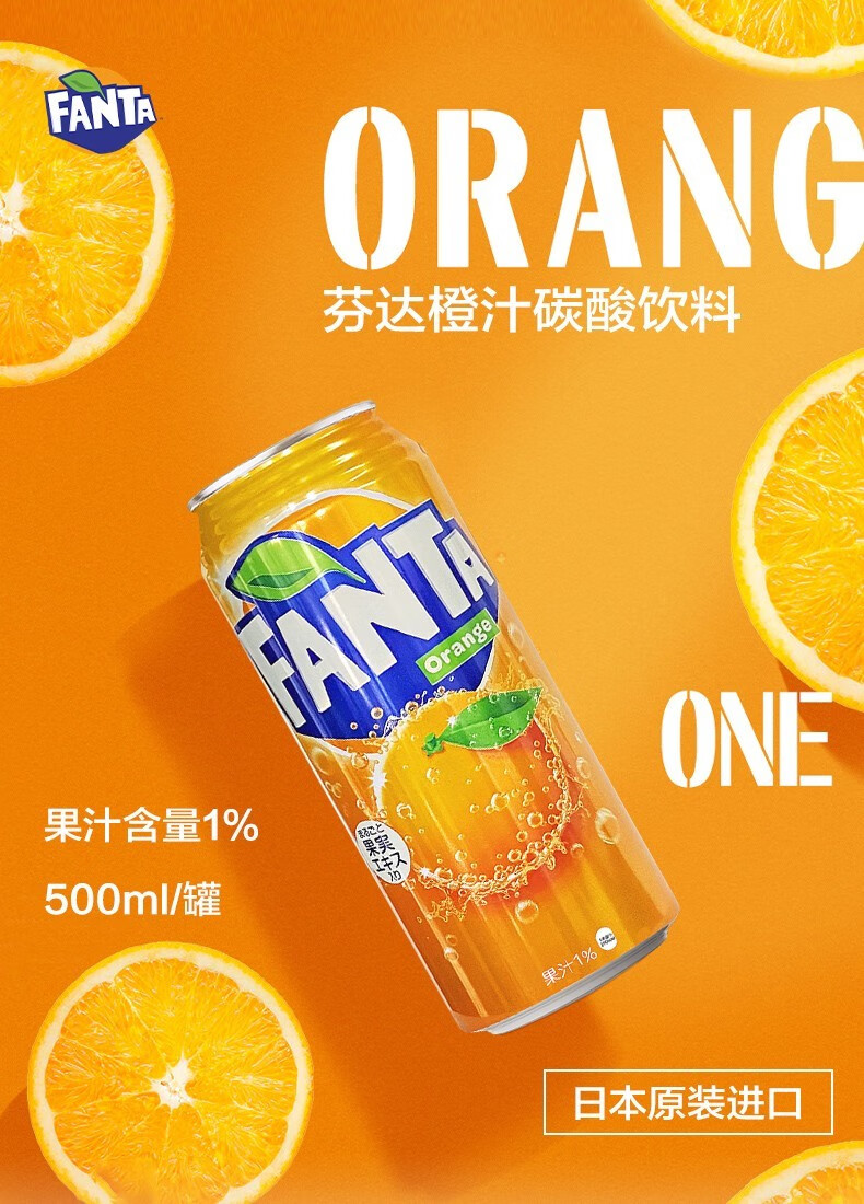 日本可口可乐橘子味/葡萄味芬达碳酸饮料500ml 滋滋气泡沁爽清新 023596/023604