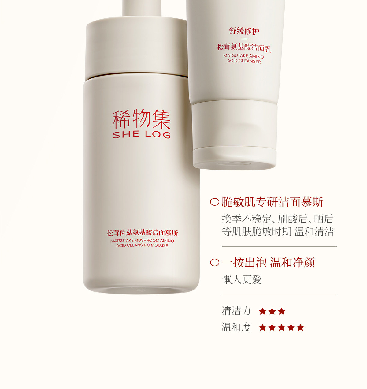 【亲肤不假滑】稀物集松茸菌菇氨基酸洗面奶 女油皮清洁干皮洁面乳