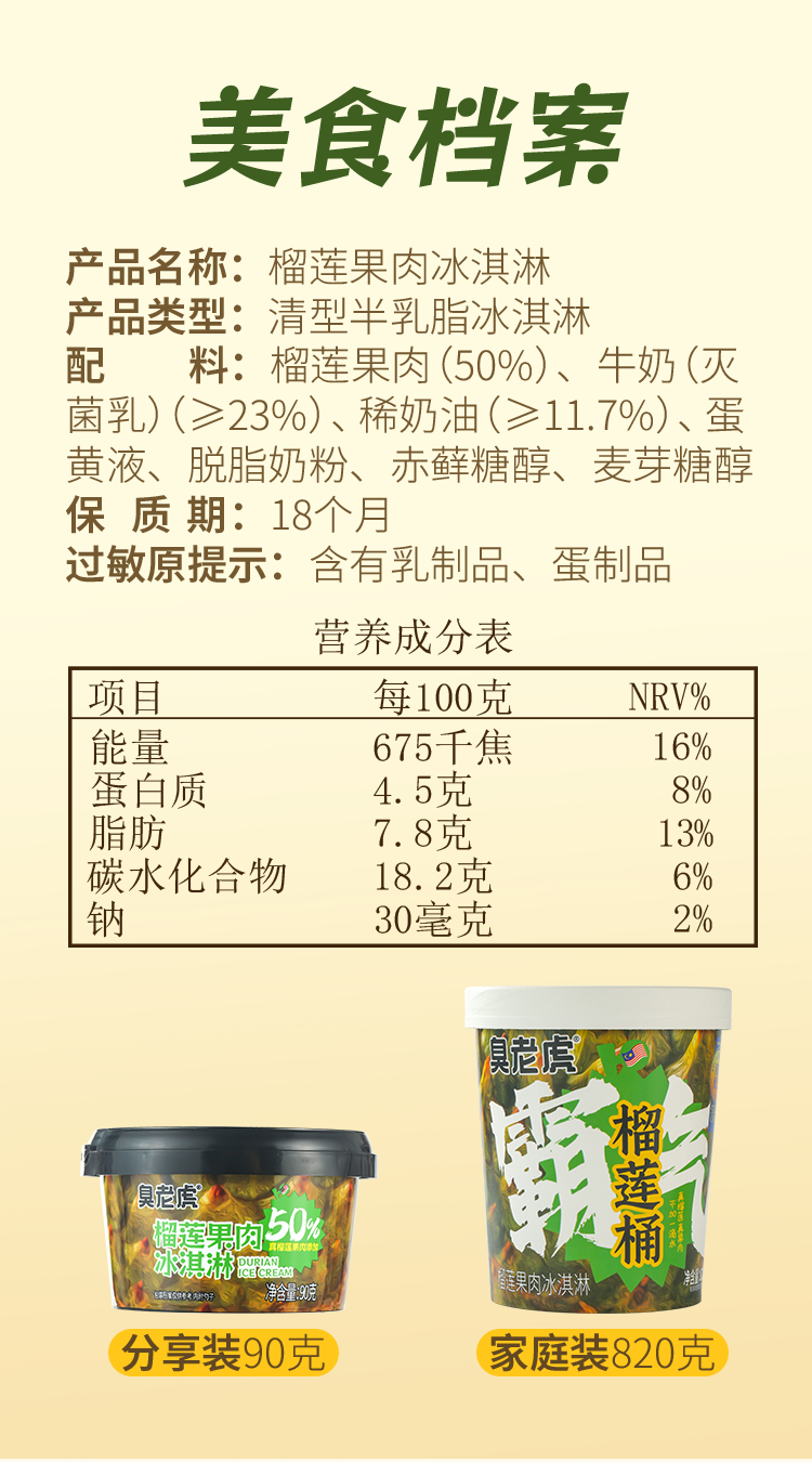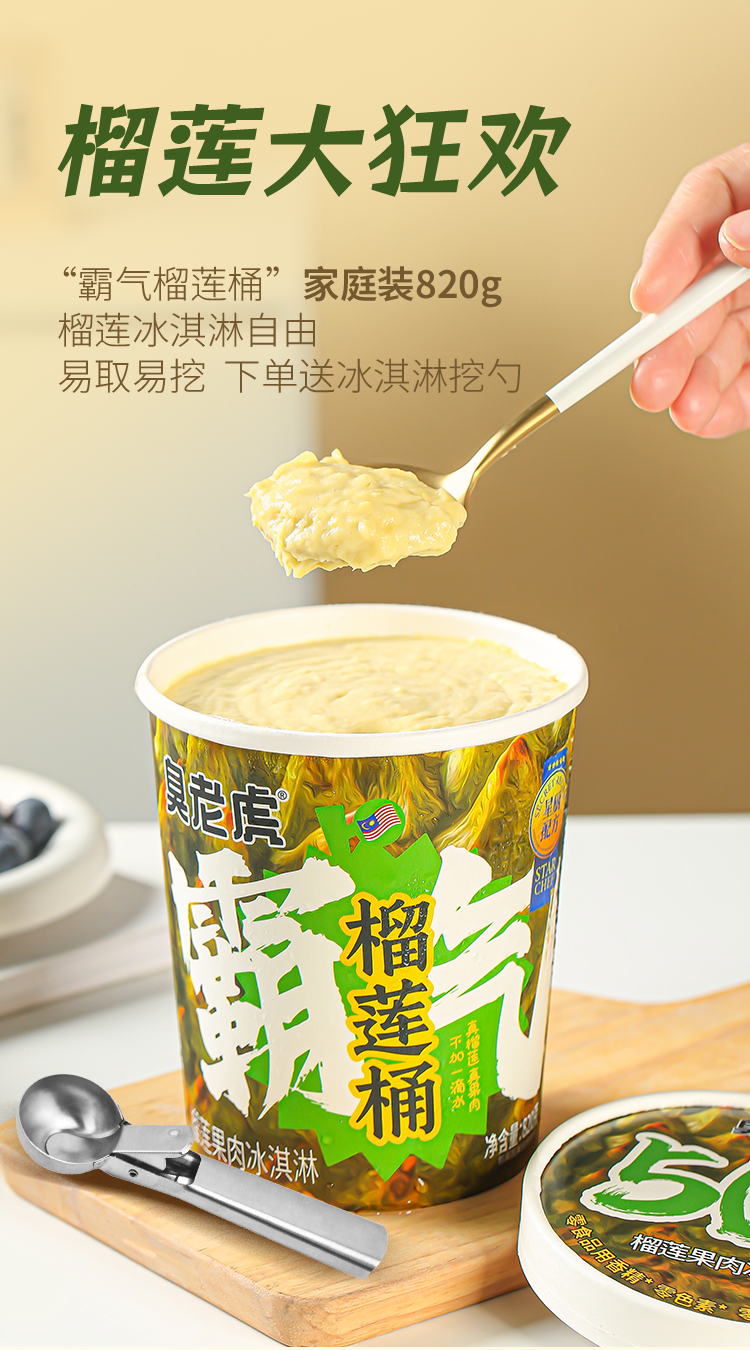 50%榴莲含量冰淇淋 霸气榴莲桶