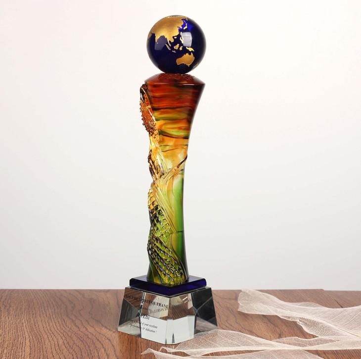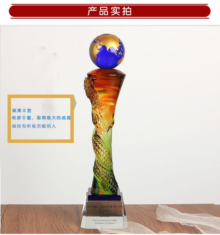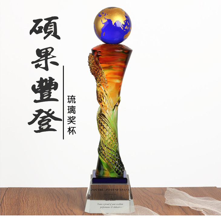高档琉璃奖杯定制水晶奖杯 年终颁奖纪念品定做优秀员工奖杯