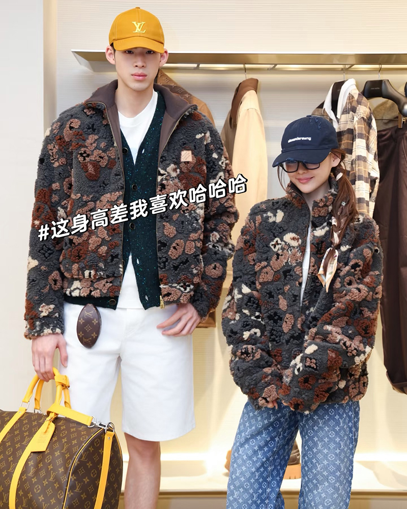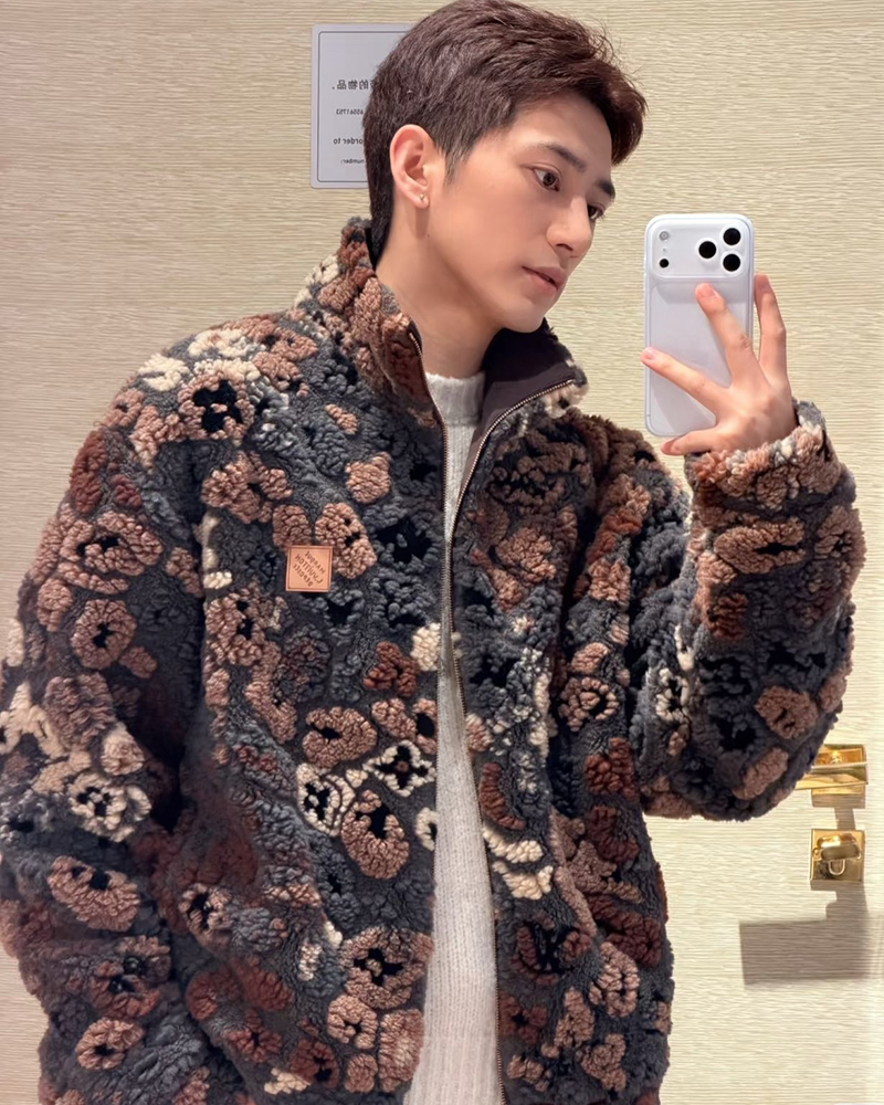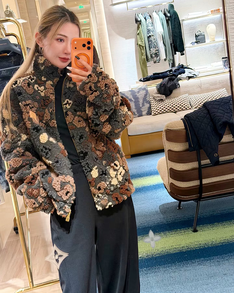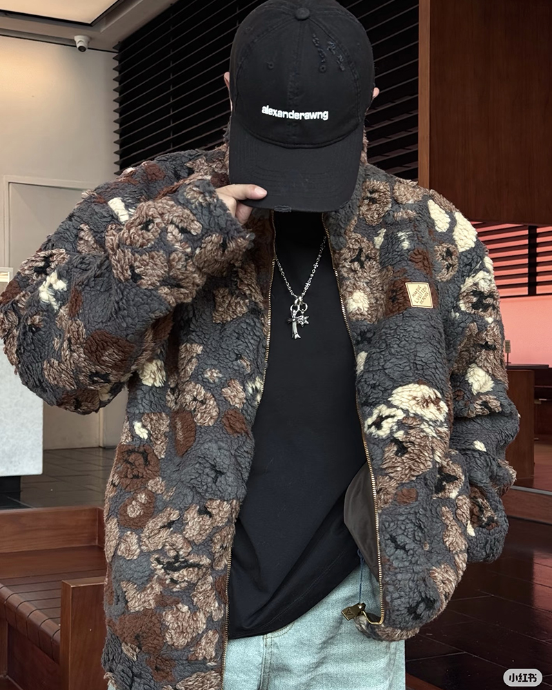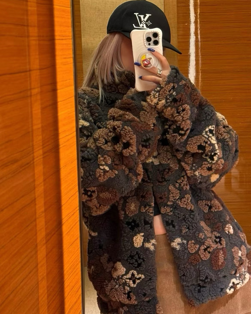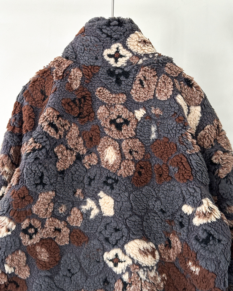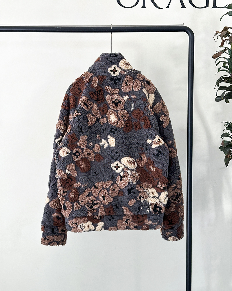 现货 THS-限时 驴家 情侣款 秋冬氛围感彩色3D抓绒花卉图案双面保暖夹克 QF089