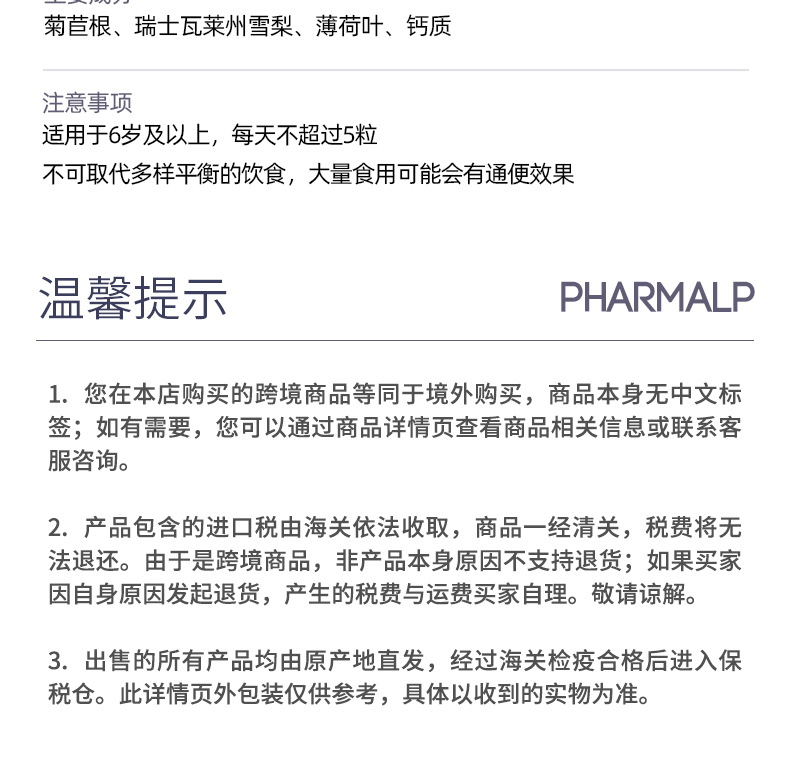 瑞士Pharmalp凡木安畅轻小绿盒菊苣根消食化积餐后阻糖助肠道蠕动