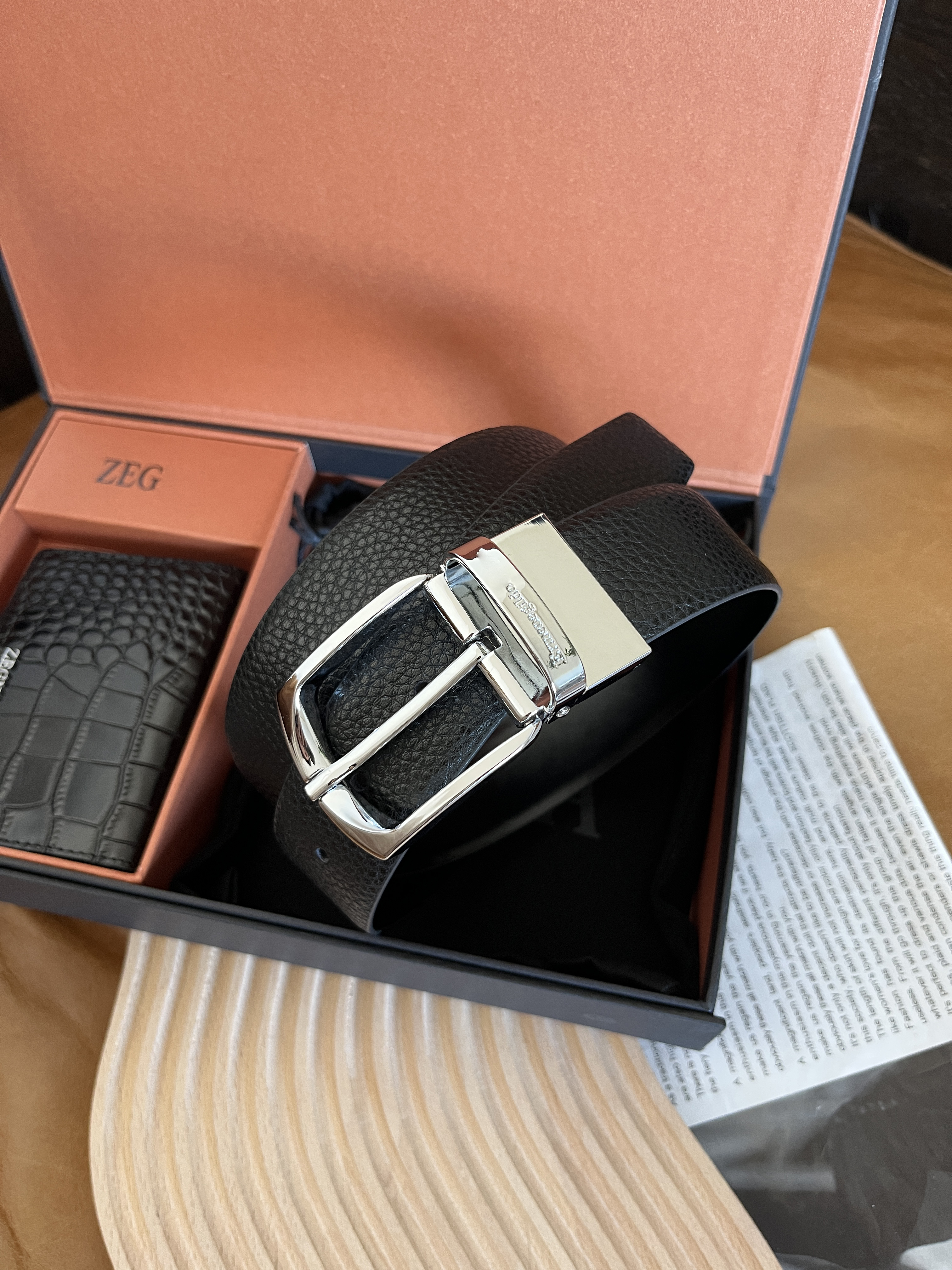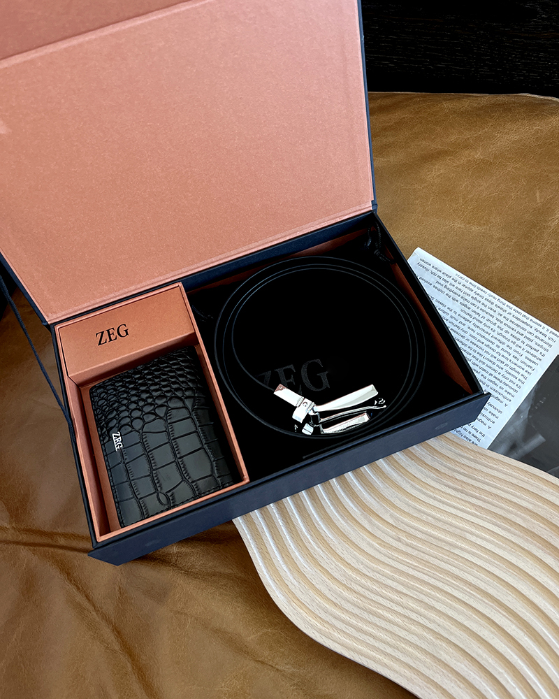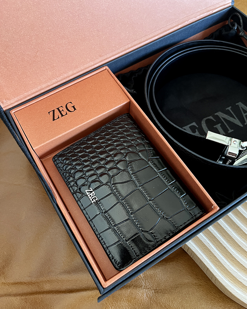 THS 11.4-无 杰尼亚家 男士礼盒装 双面可用 可剪裁 皮带腰带+卡包 CR207