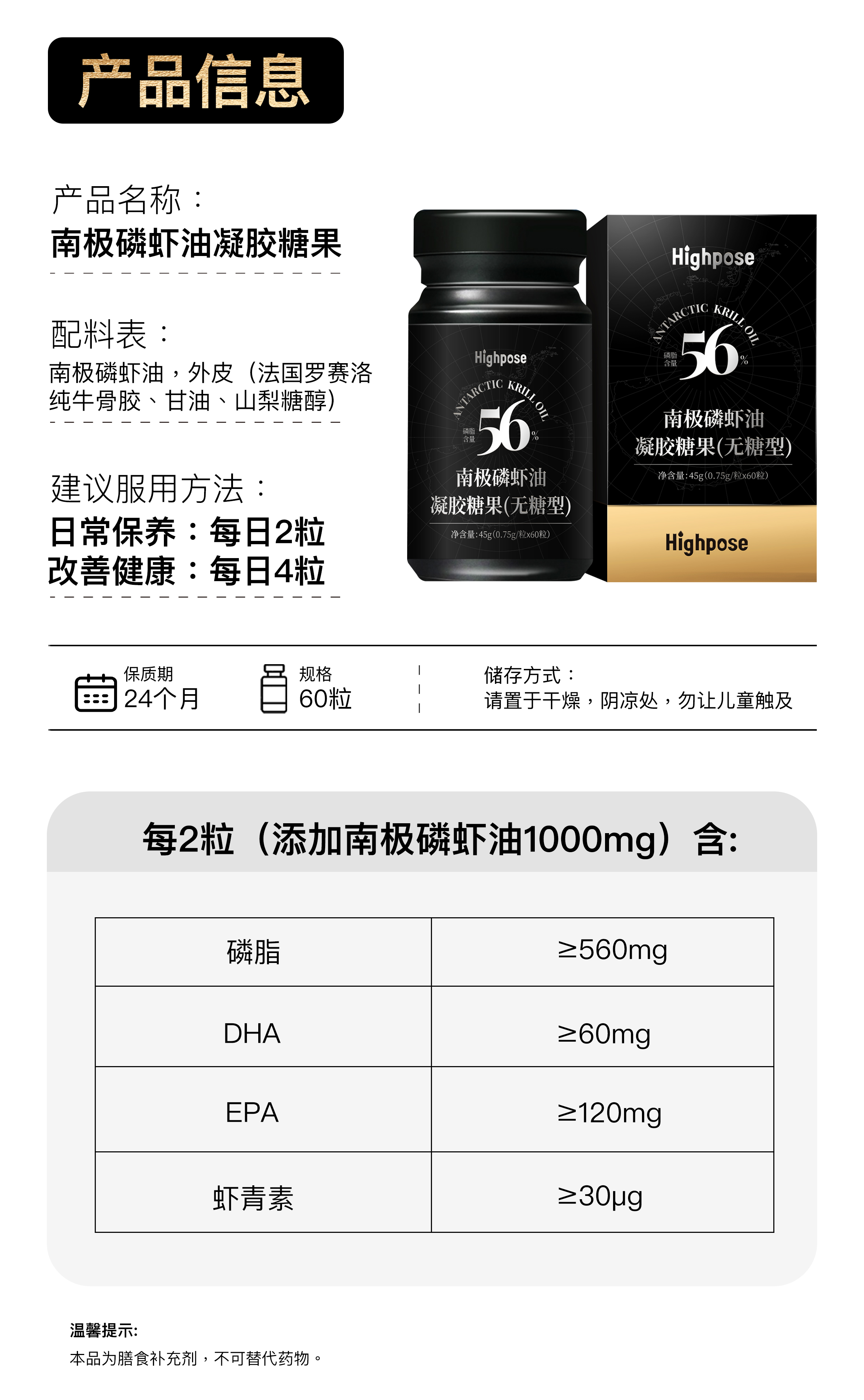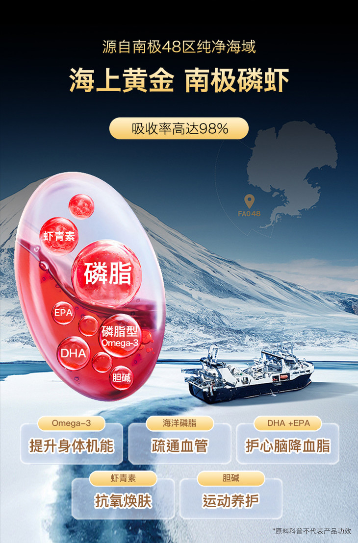 ⁵新效期仅限100单398元5瓶【南极磷虾油】56%海洋磷脂 每2粒含1000mg磷虾油 60粒/瓶 YY05-QTT-HBKJ