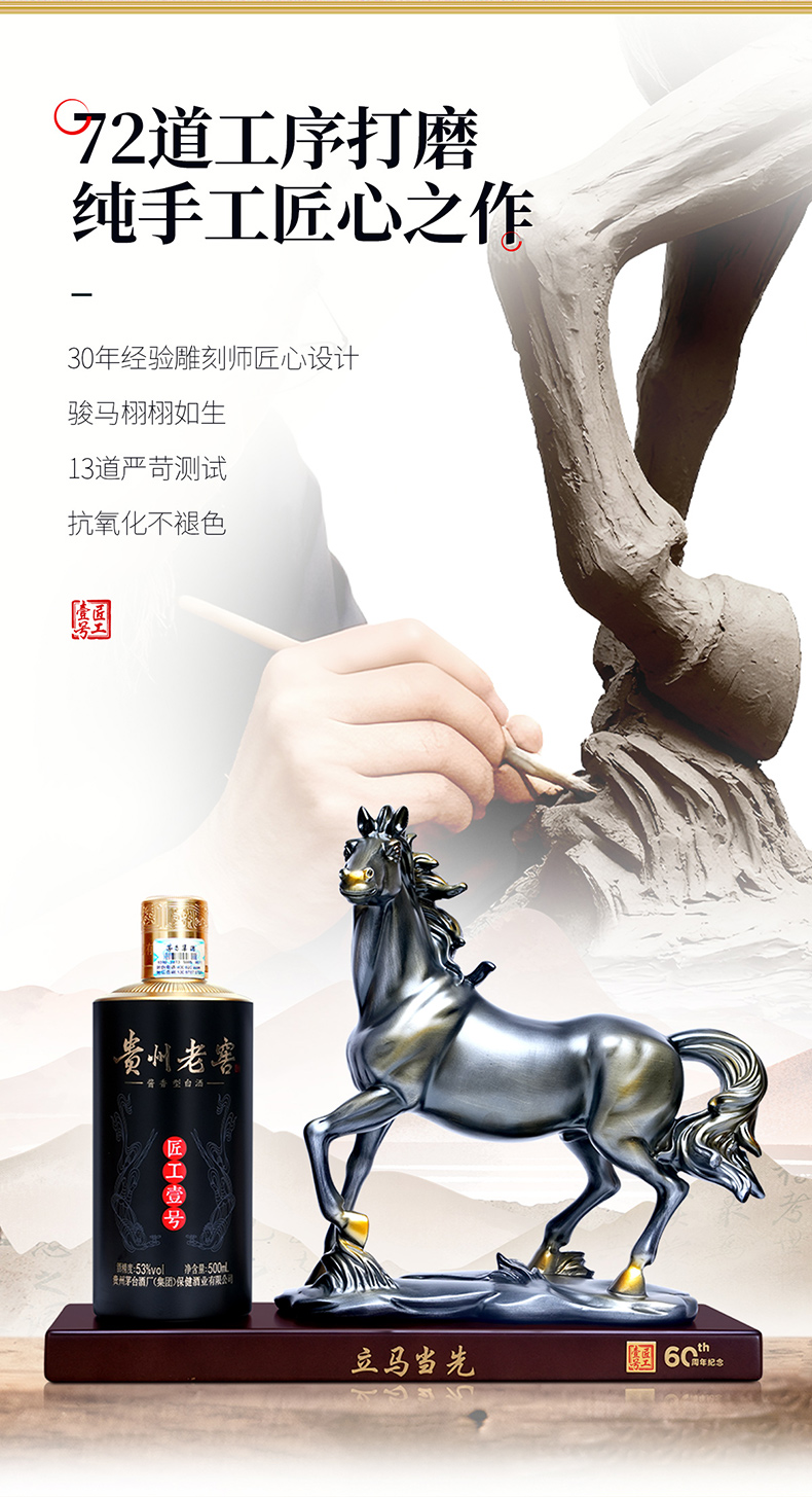 茅台集团贵州老窖酒工艺品立马当先礼盒酱香型白酒