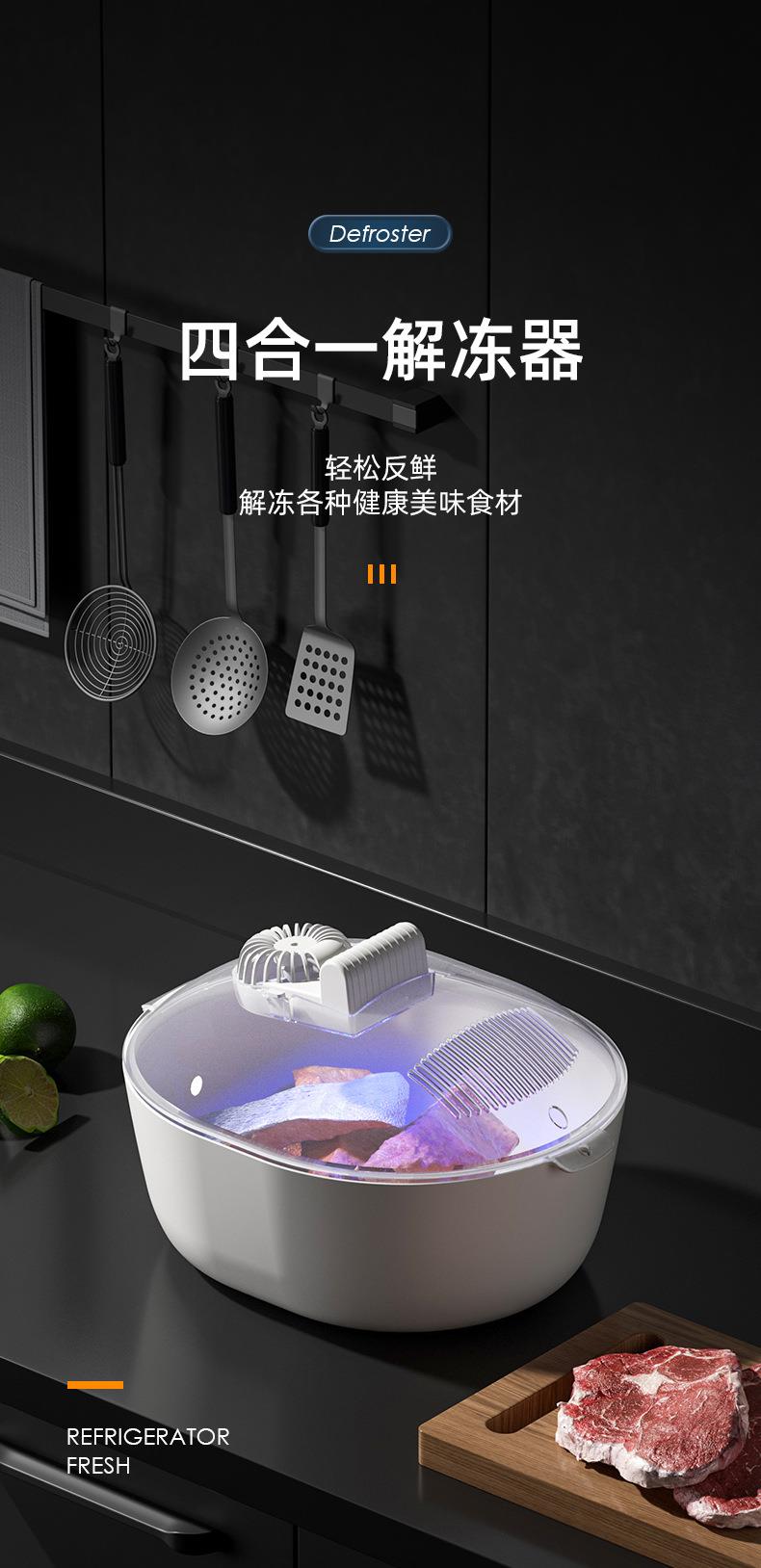跨境厨房家用四合一解冻器食品保鲜防尘解冻机家用便携防尘化冰机