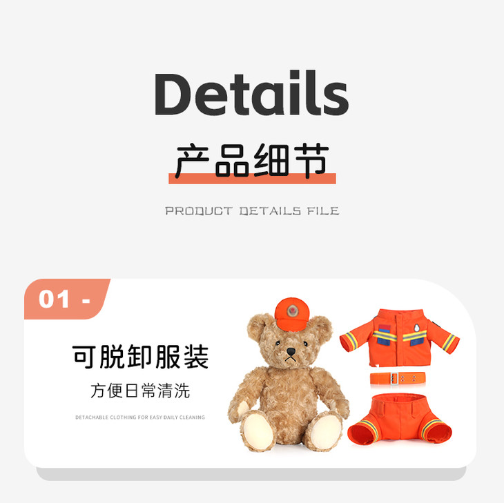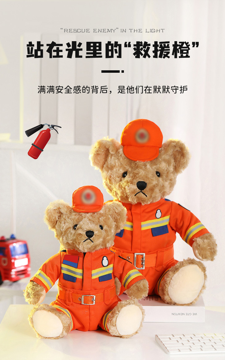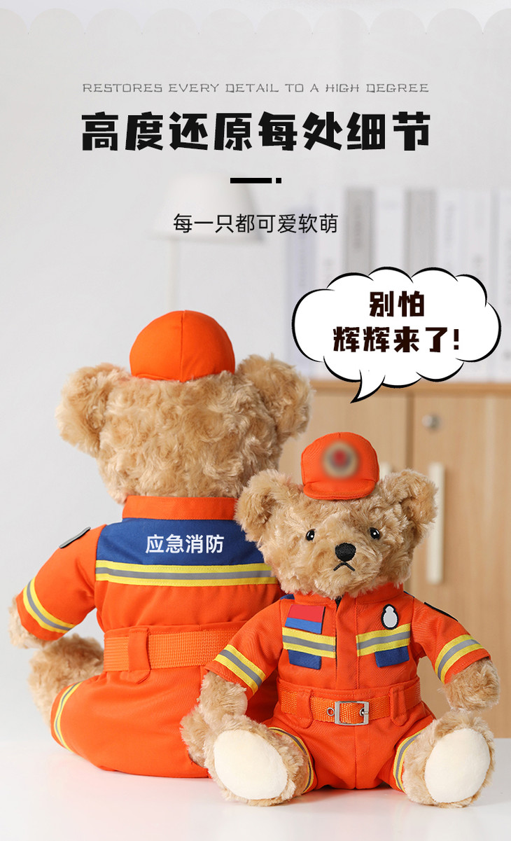 【坐姿消防熊辉辉】毛绒小熊公仔玩具服装可脱卸毛绒玩偶送礼礼品礼物