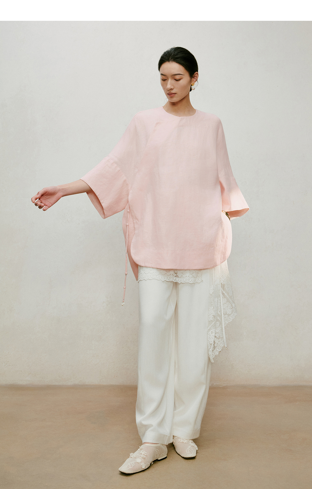 【林栖设计小店】手工挂饰|温柔新中式改良氅衣2026夏新款宽松百搭衬衣1962102