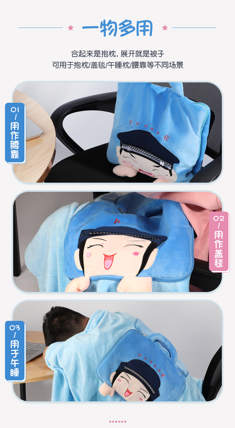 【手提式儿童抱枕】抱枕被子二合一 创意卡通午睡枕/腰靠