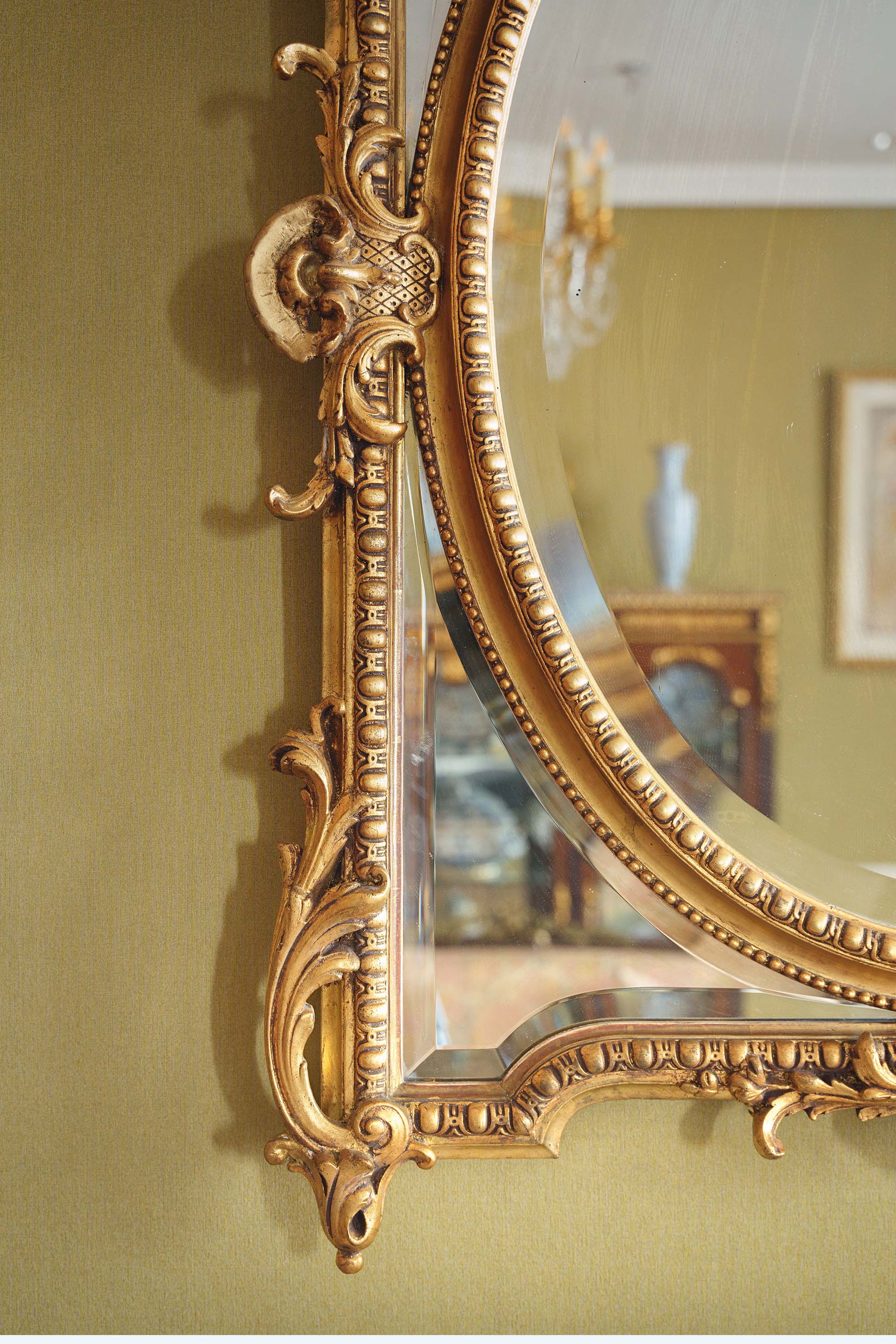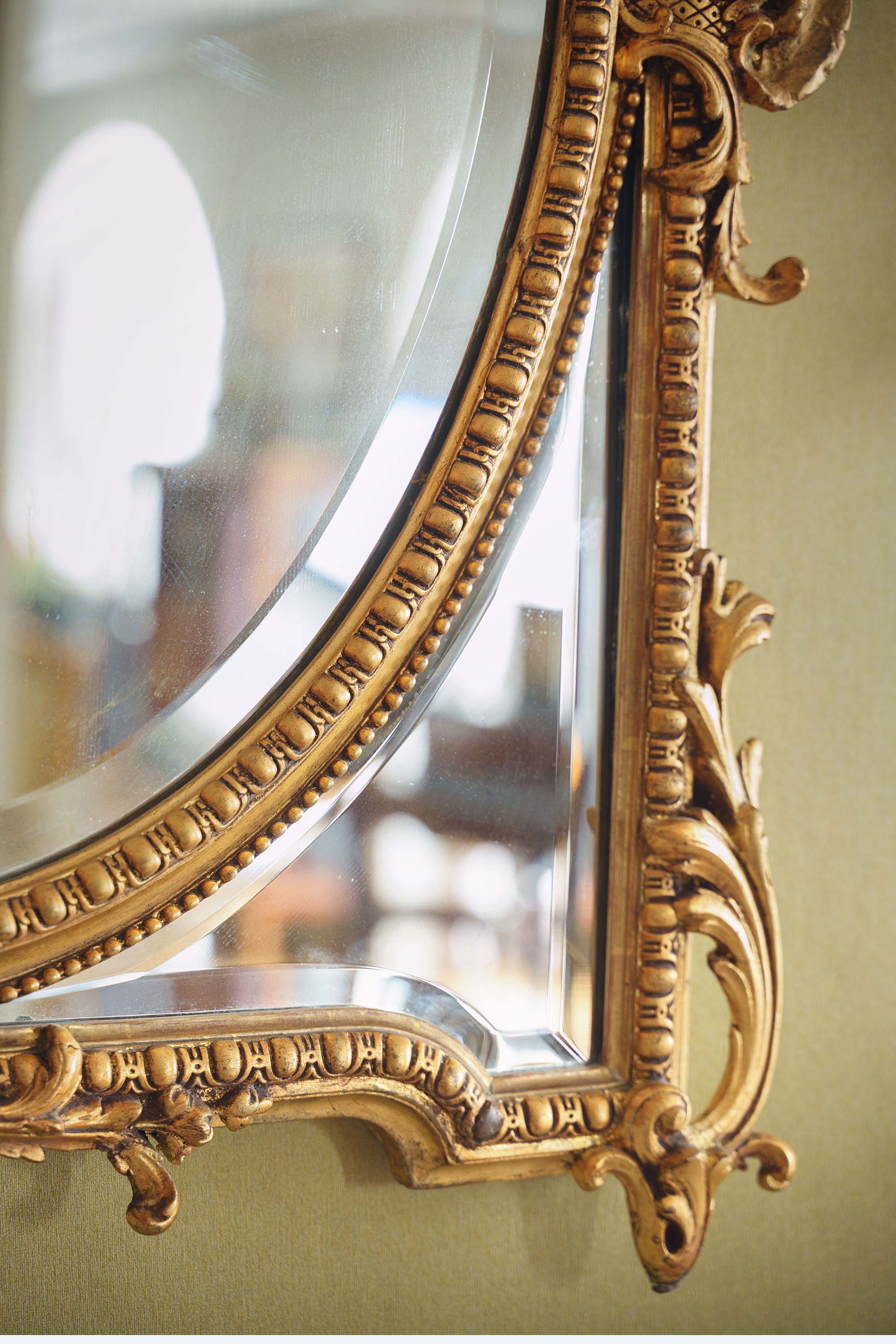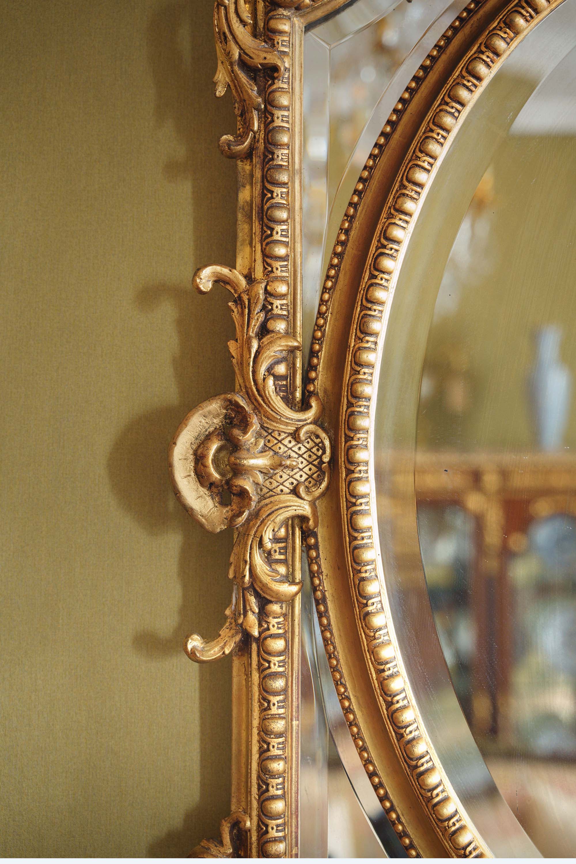 独角鹿西洋古董1880年代法国出品古典天使花蔓主题鎏金灰墁浮雕木质大型挂镜