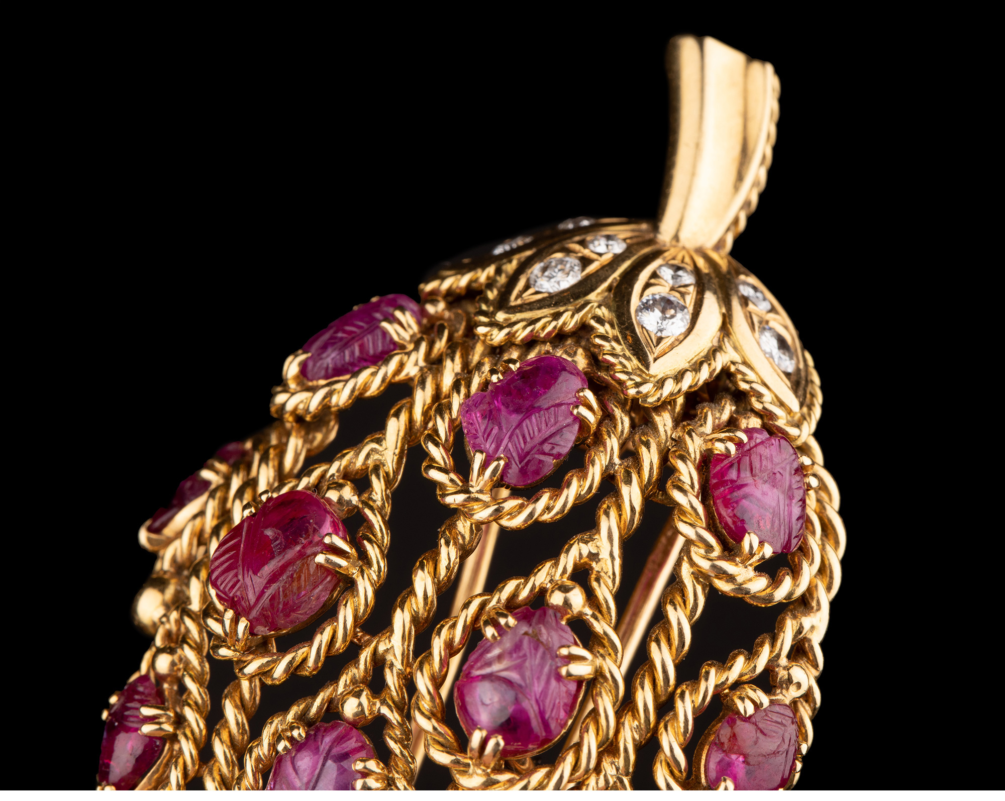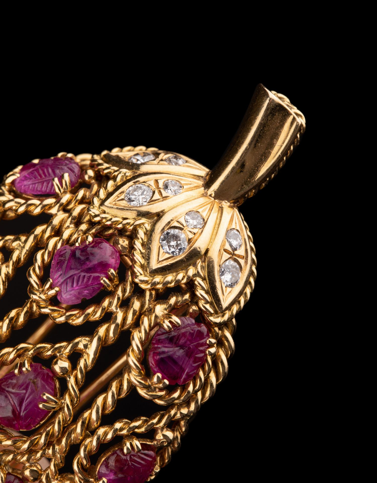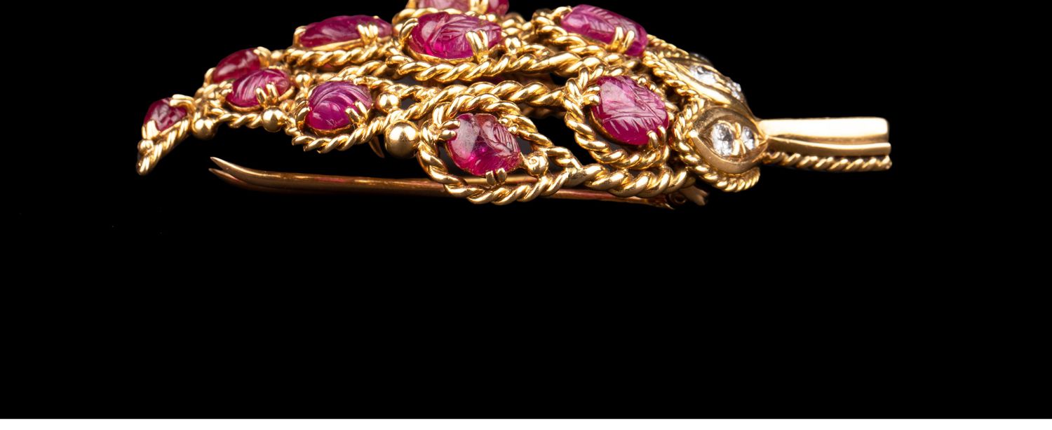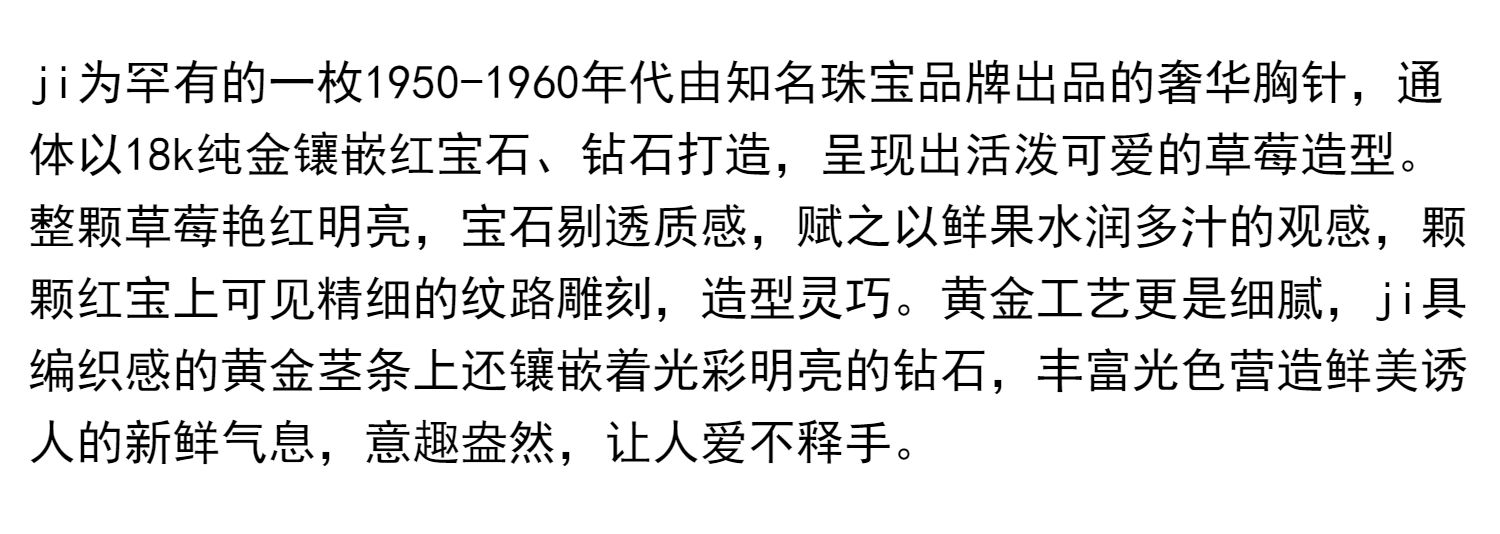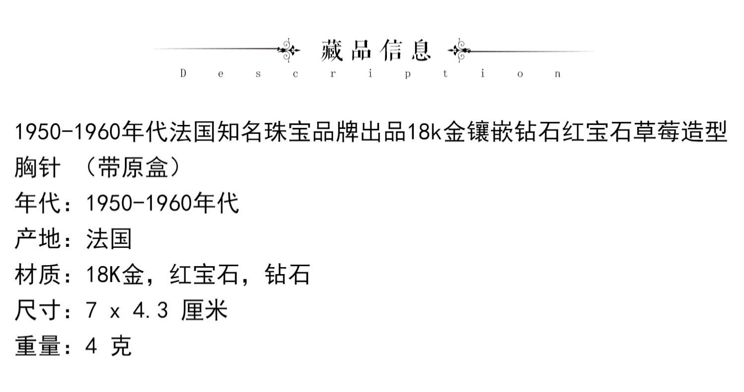 独角鹿西洋古董法国珠宝品牌18k金镶嵌钻石红宝石草莓造型胸针