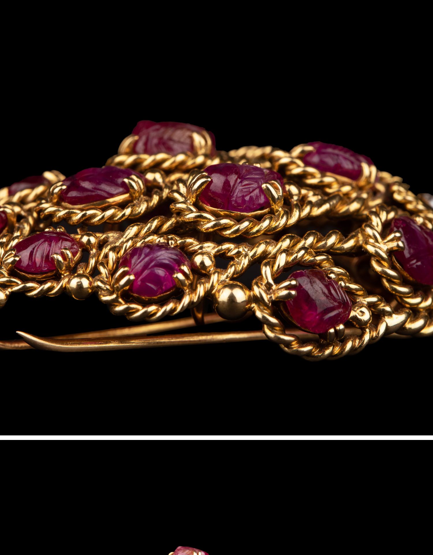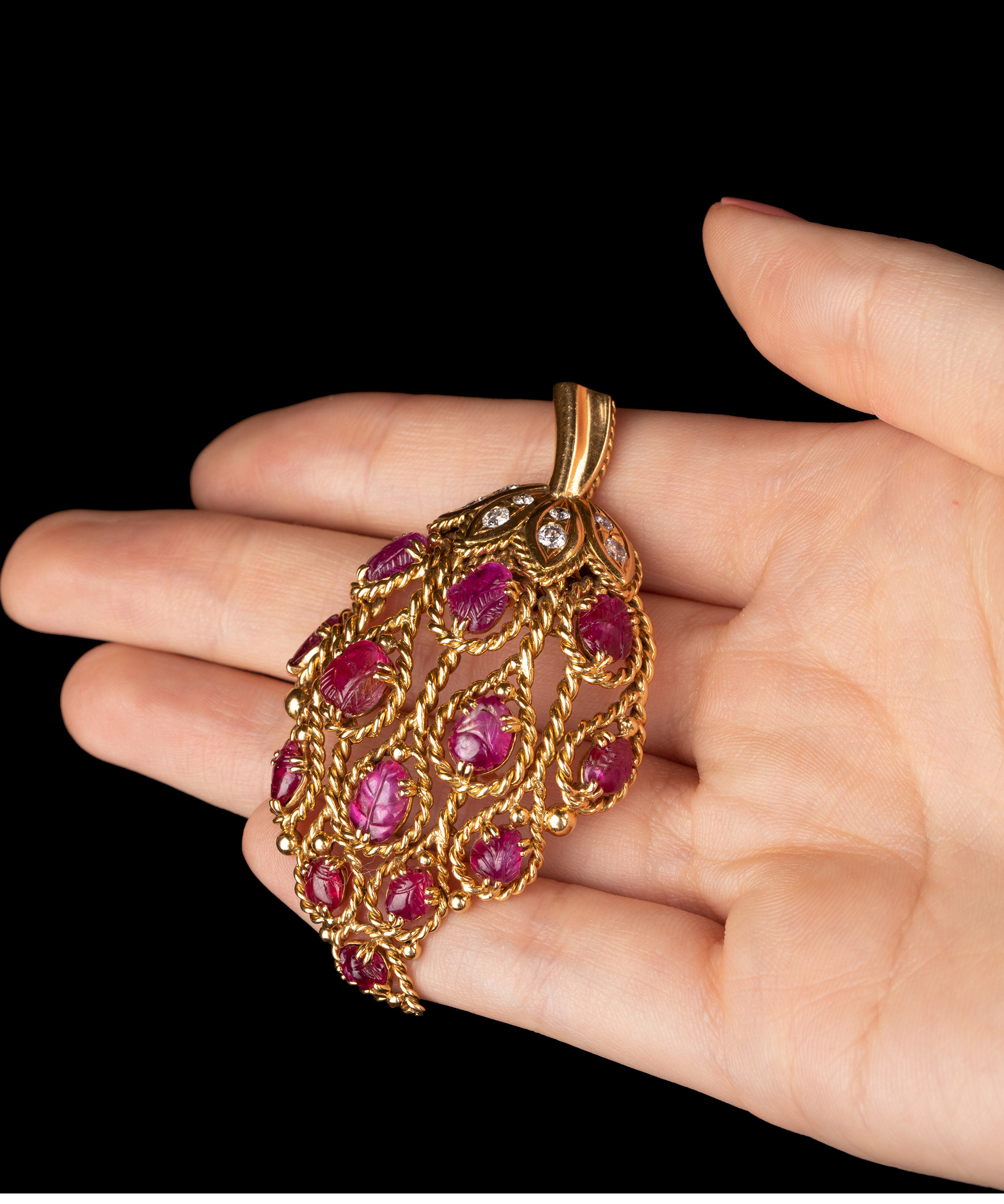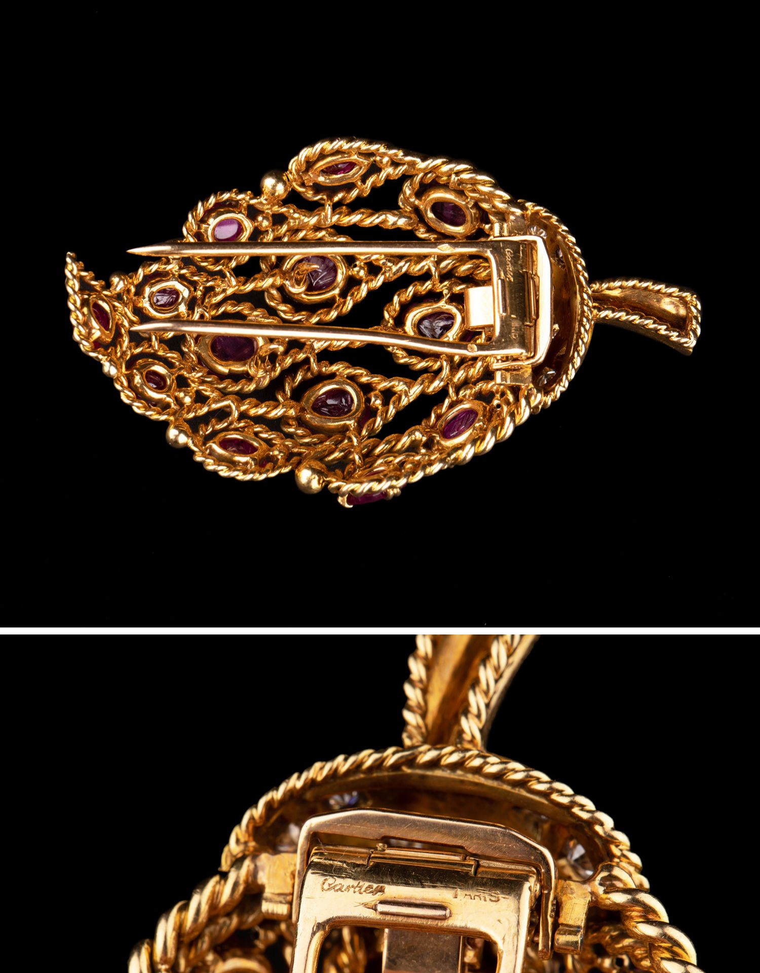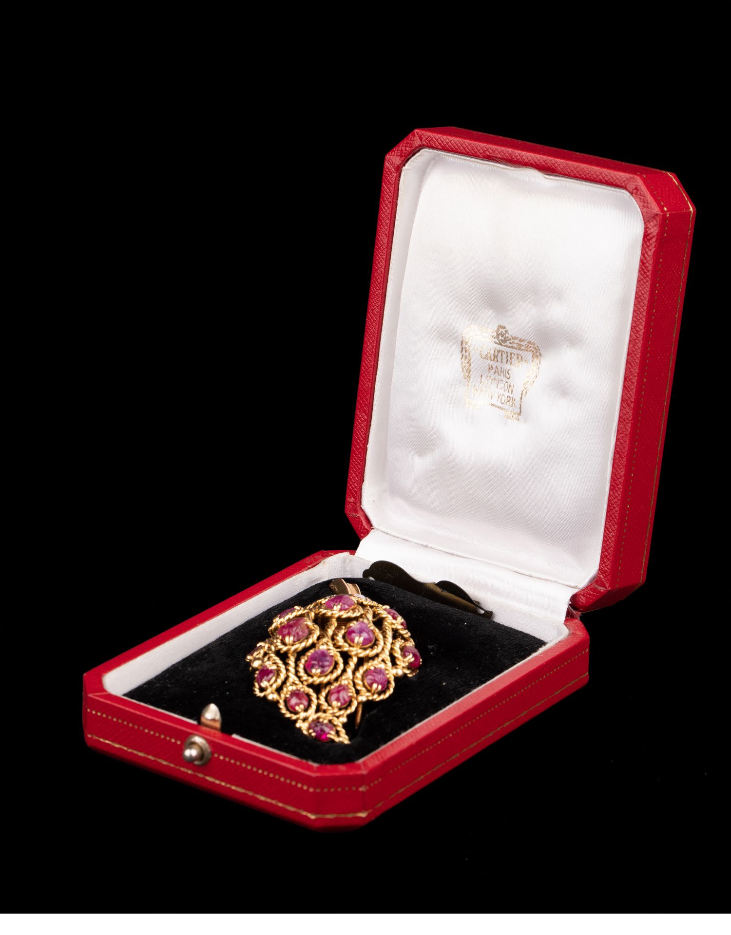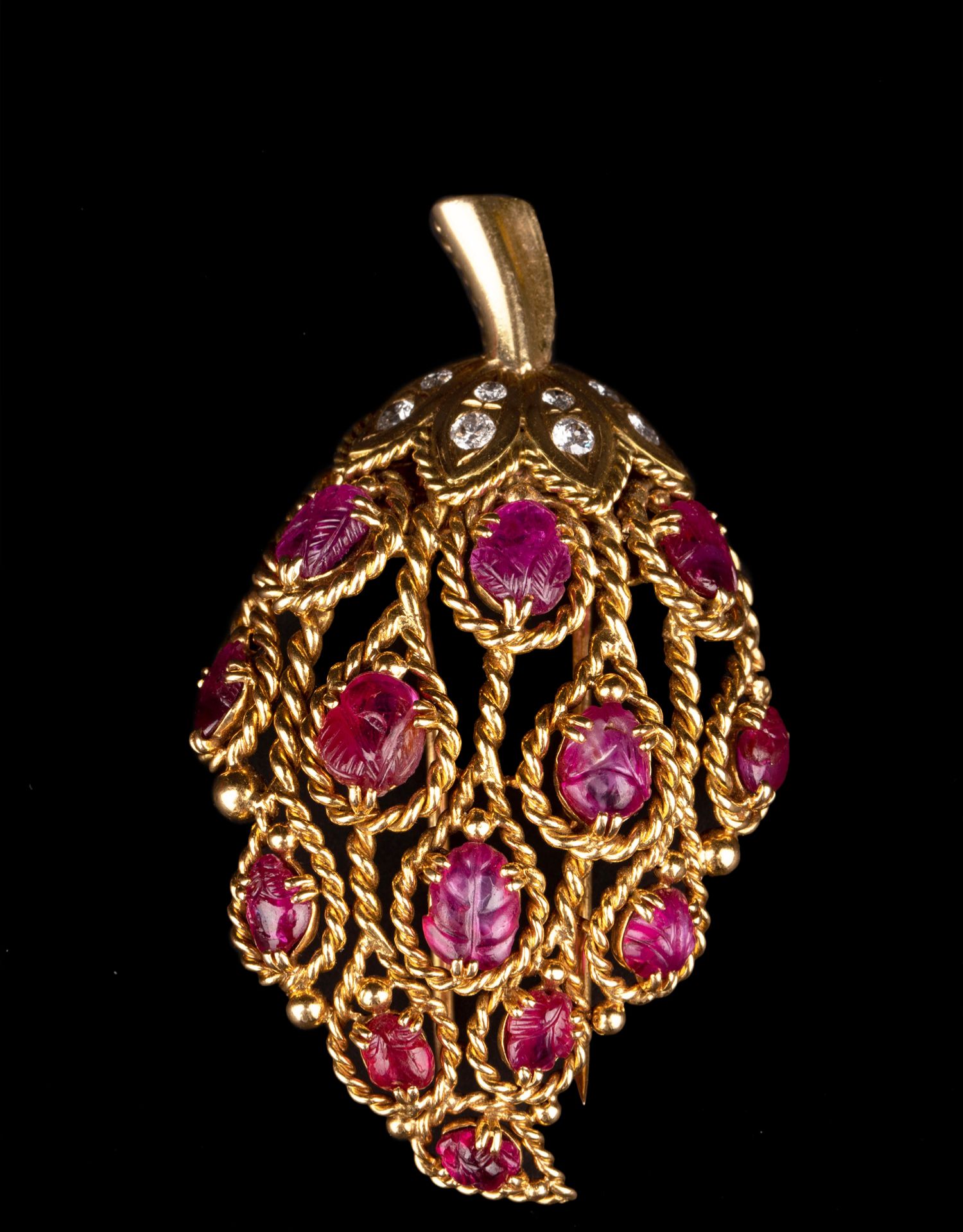 独角鹿西洋古董法国珠宝品牌18k金镶嵌钻石红宝石草莓造型胸针