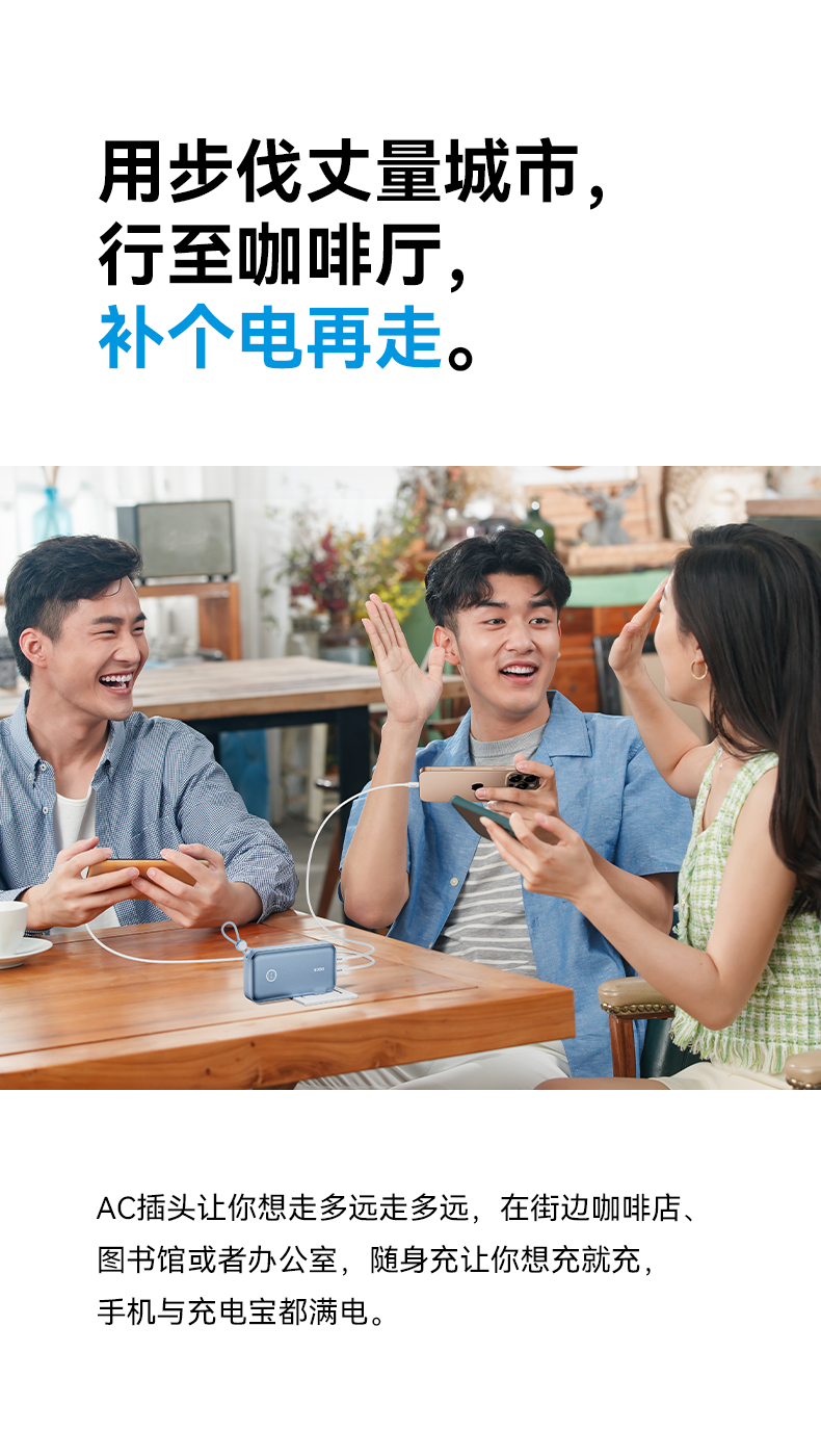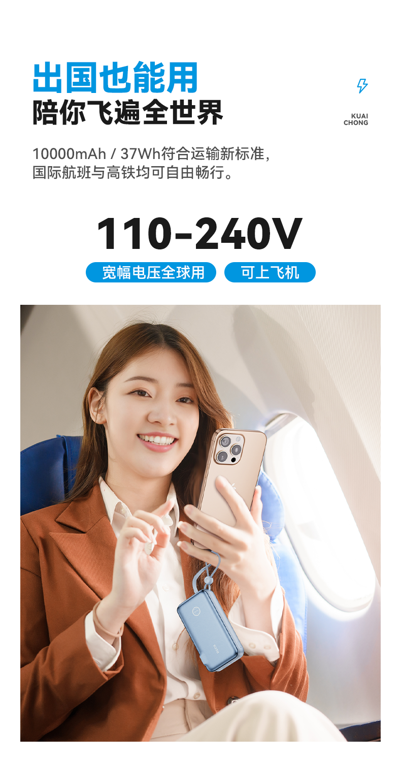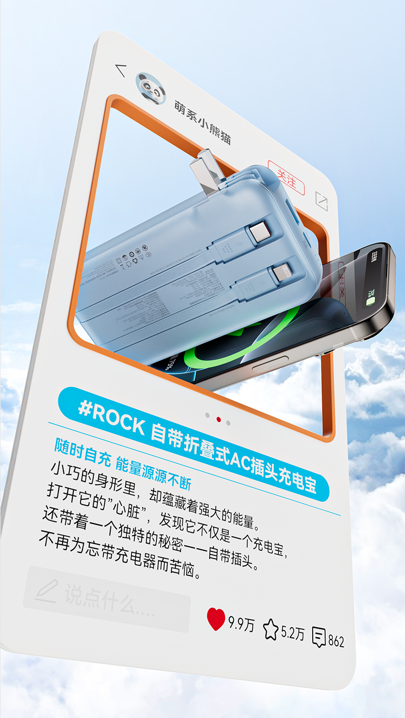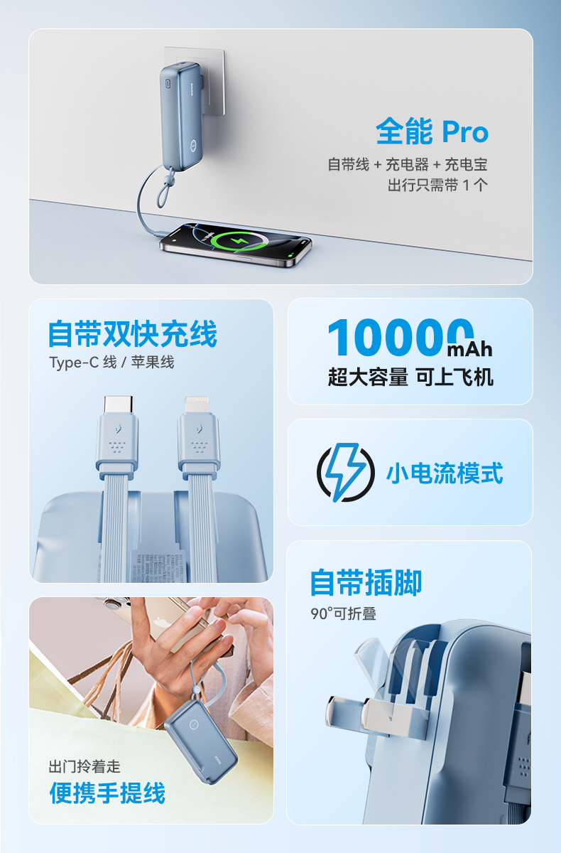 ROCK 自带双线22.5W移动电源10000mah Y30 蓝色