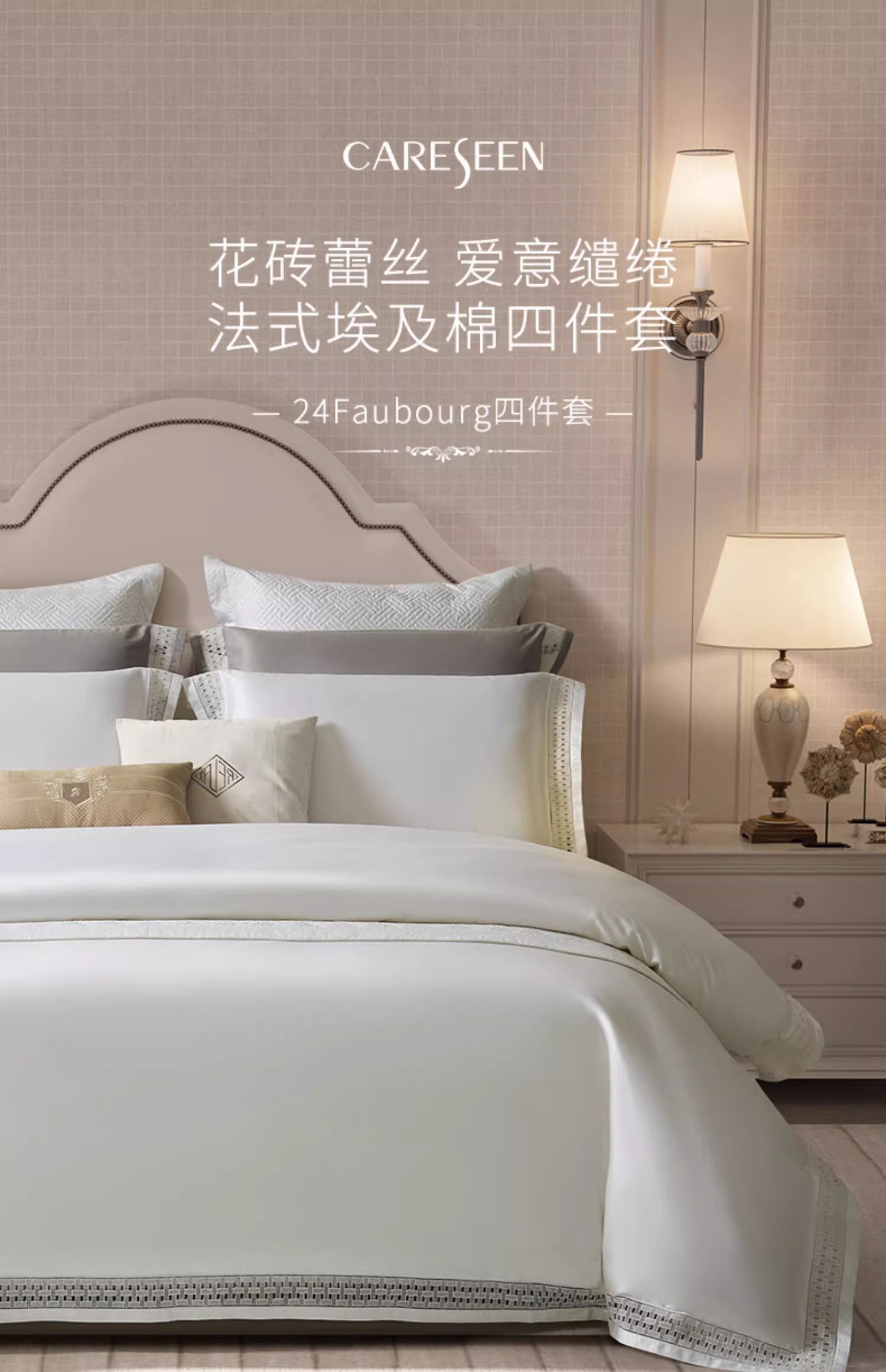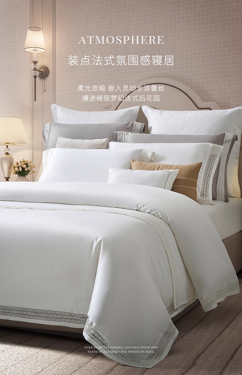 康尔馨四件套高级感纯棉镂空蕾丝砖花100支GIZA94埃及棉床上用品