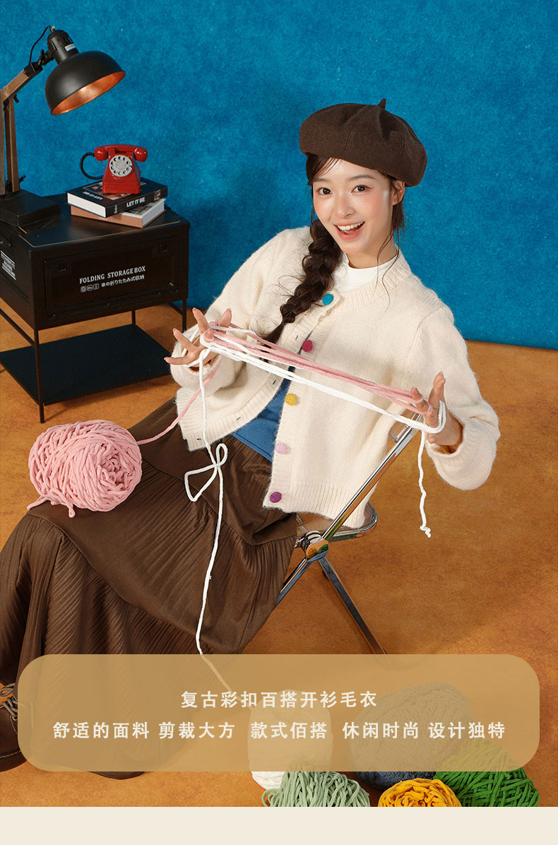 复古彩扣百搭开衫毛衣-纪念日百货门店同款166543101