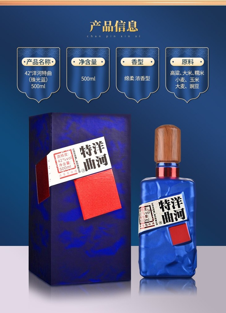 洋河特曲白酒(珠光蓝)浓香型白酒42度500ml/1瓶/2瓶/6瓶整箱