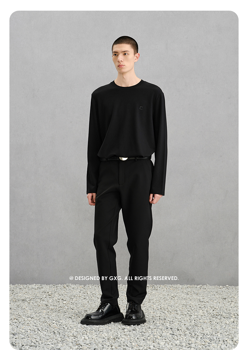 GXG男装 圆领卫衣雪尼尔撞色拼接长袖内搭上衣 2025秋季新品