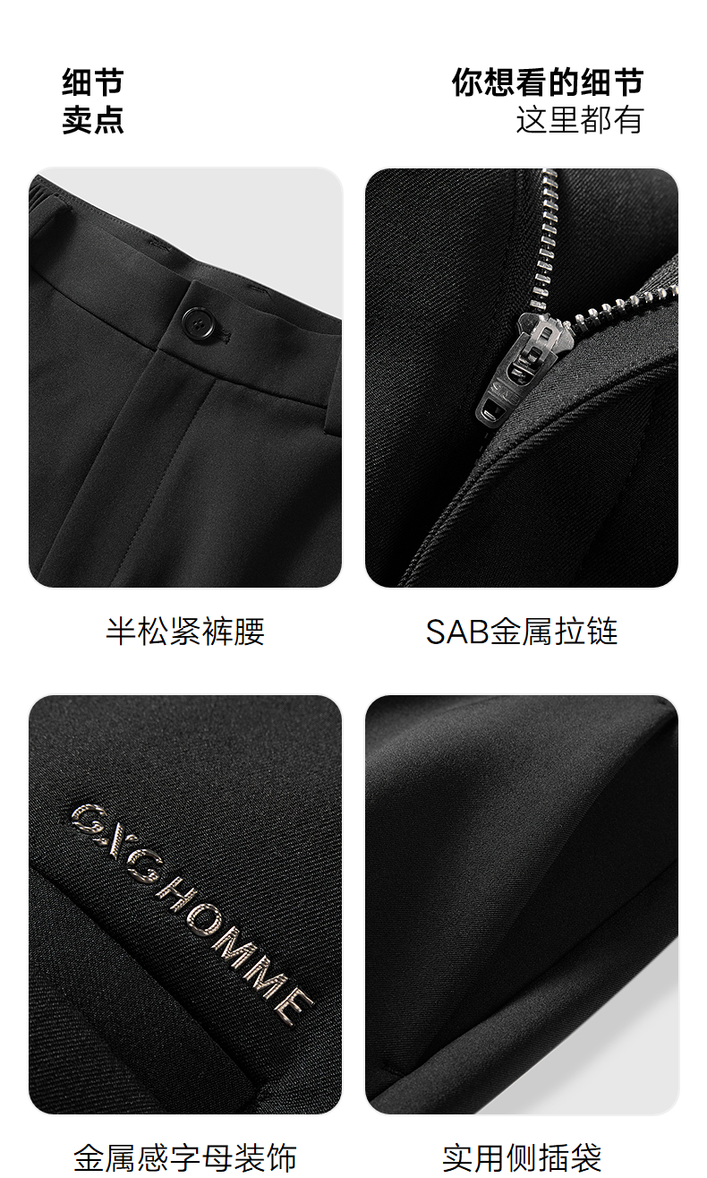 GXG男装 黑色小脚西裤保暖通勤休闲裤 24年冬G24X024112