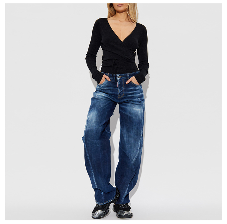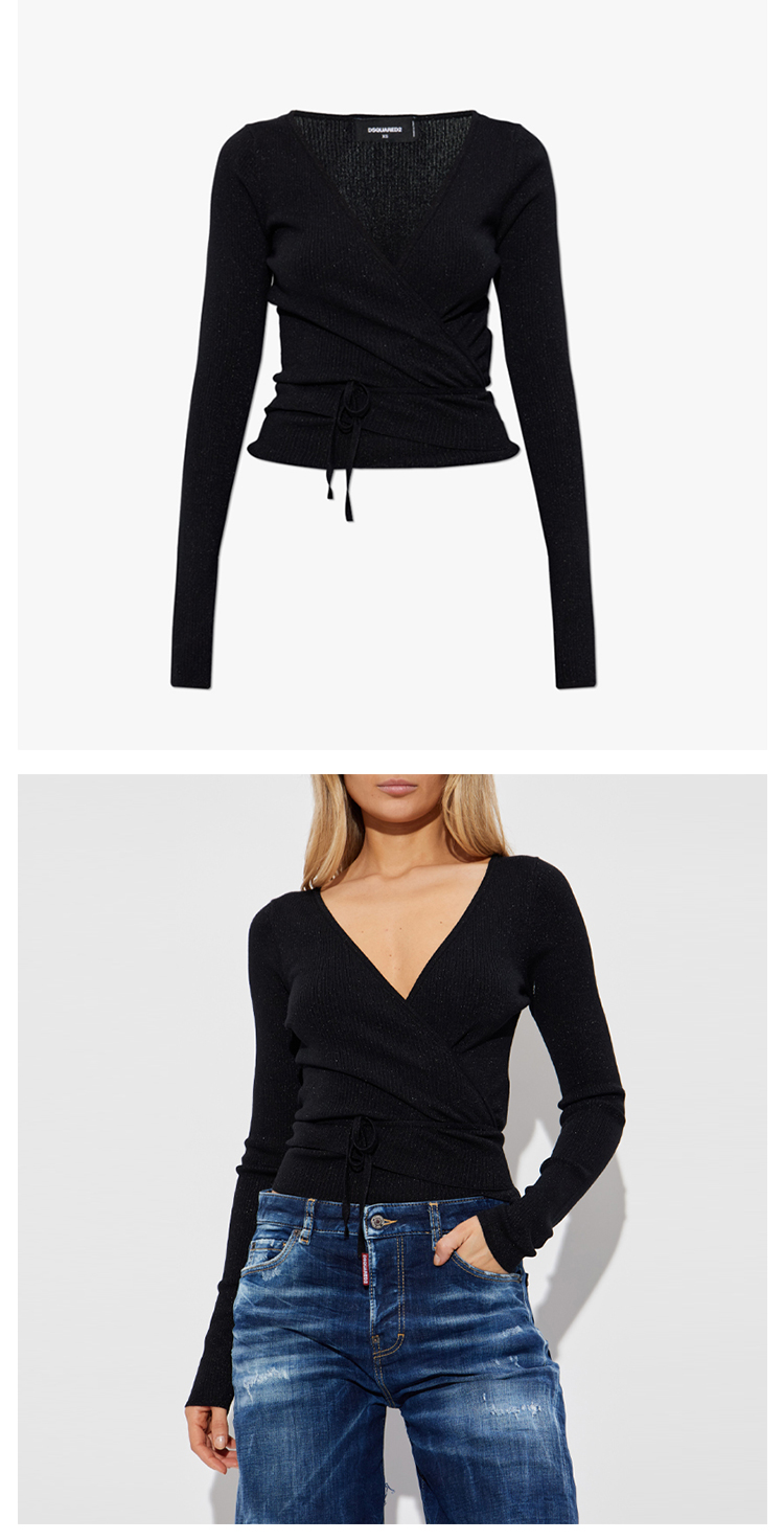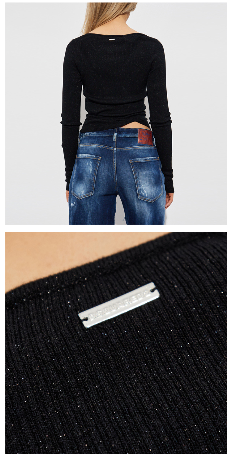 DSQUARED2 女士徽标贴片长袖针织衫 黑色 S72HA1247 D13171 900