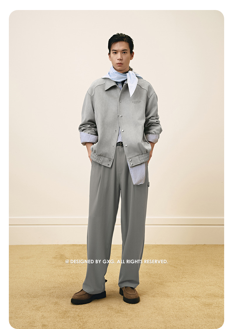 GXG男装 双色提花质感翻领夹克 24年春季热卖GFX12100921