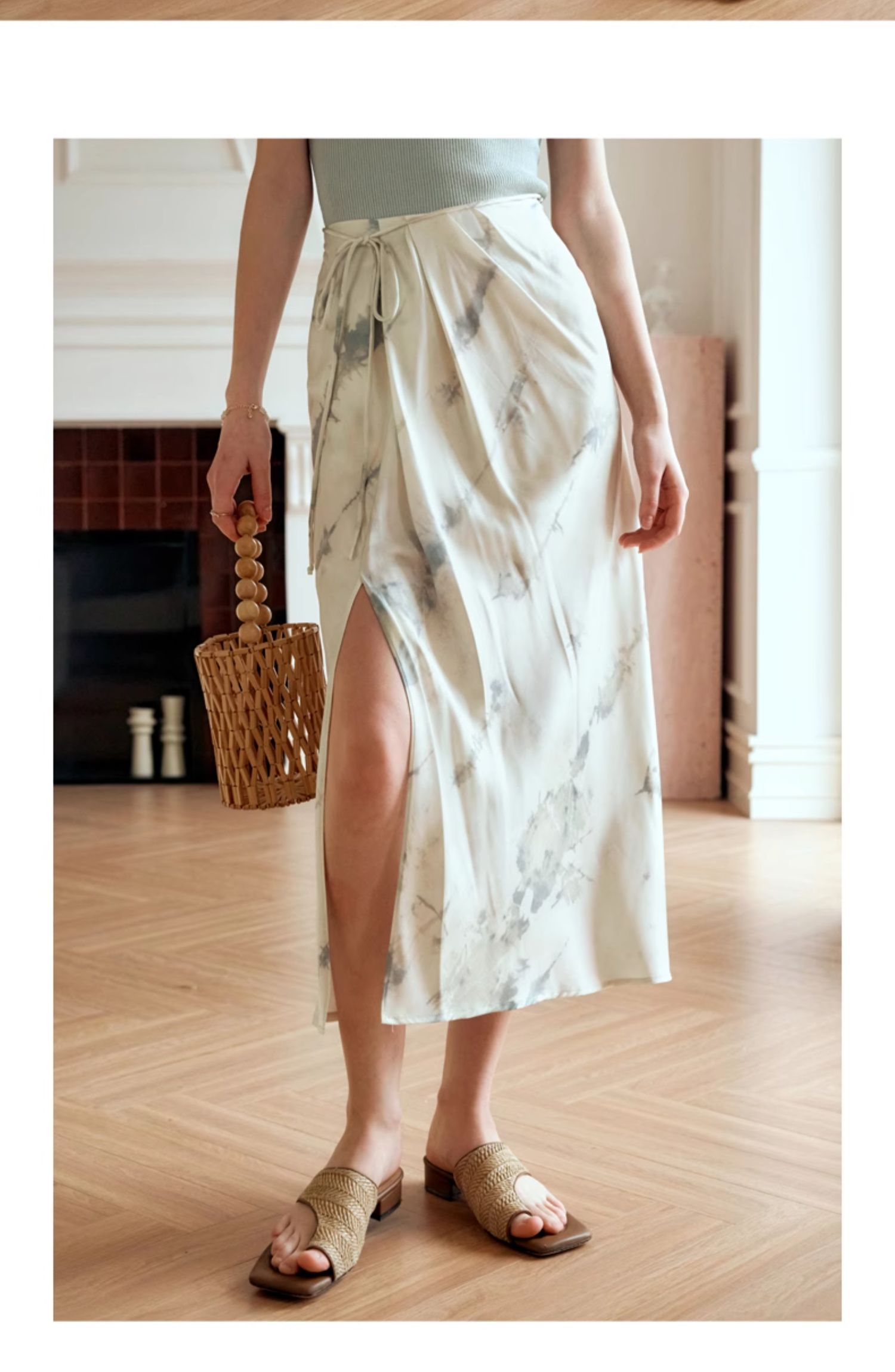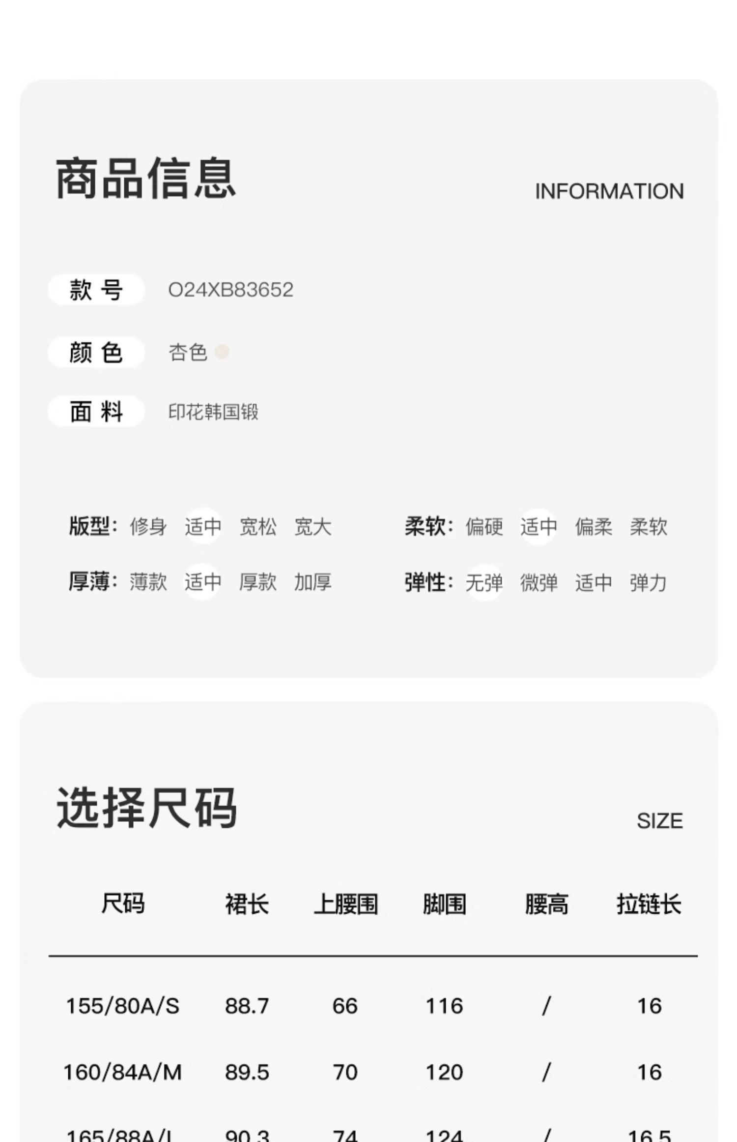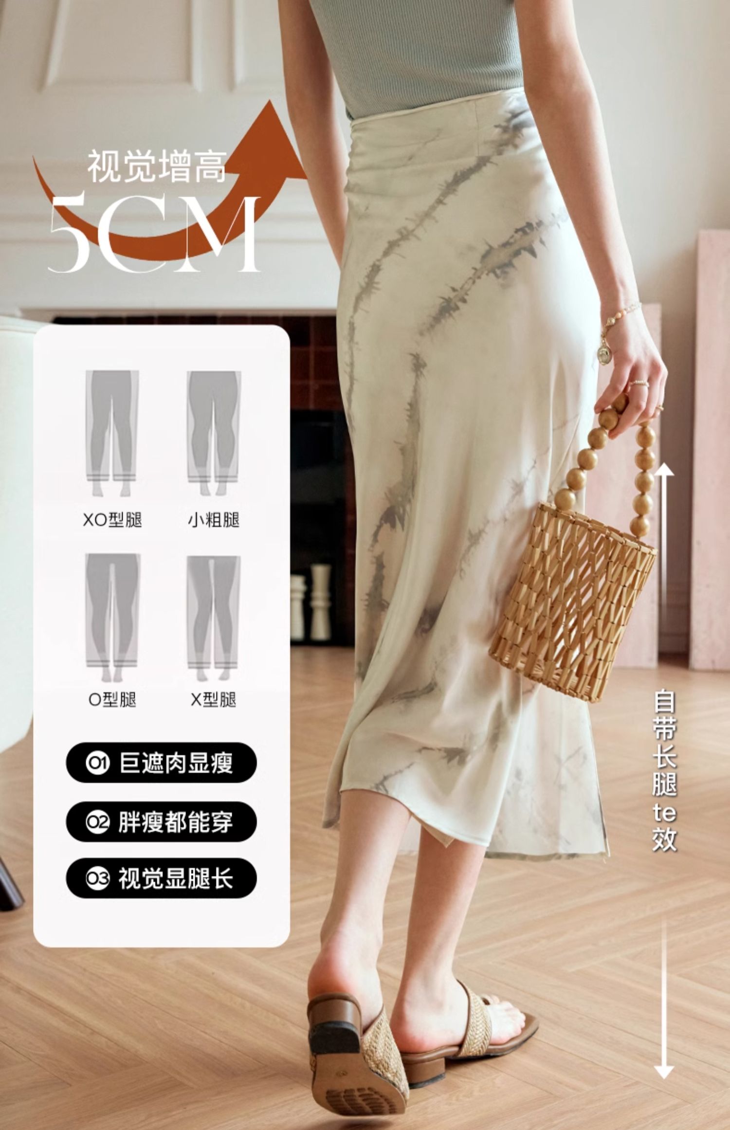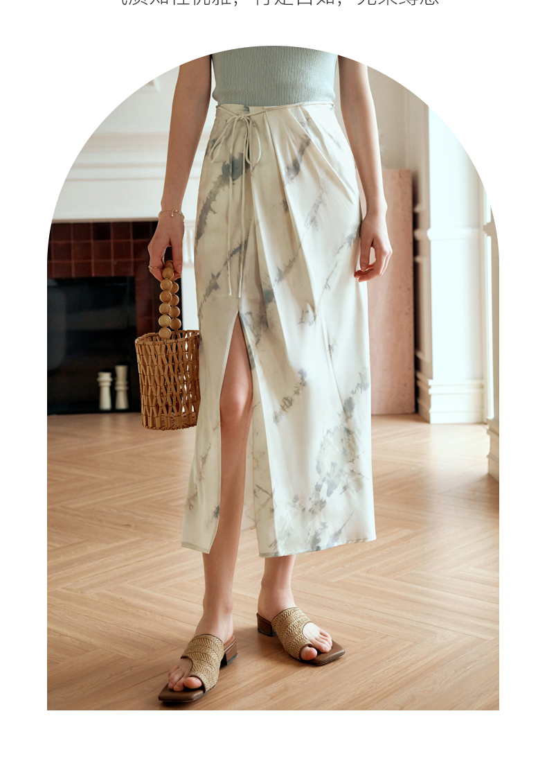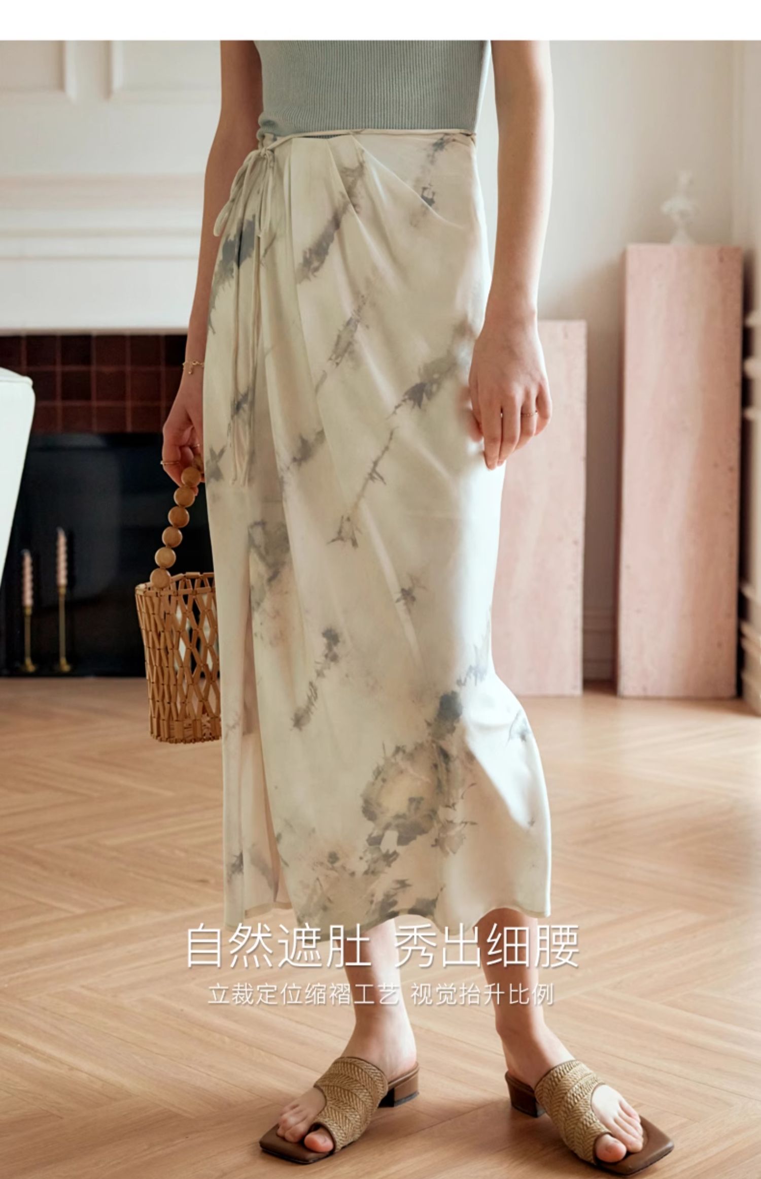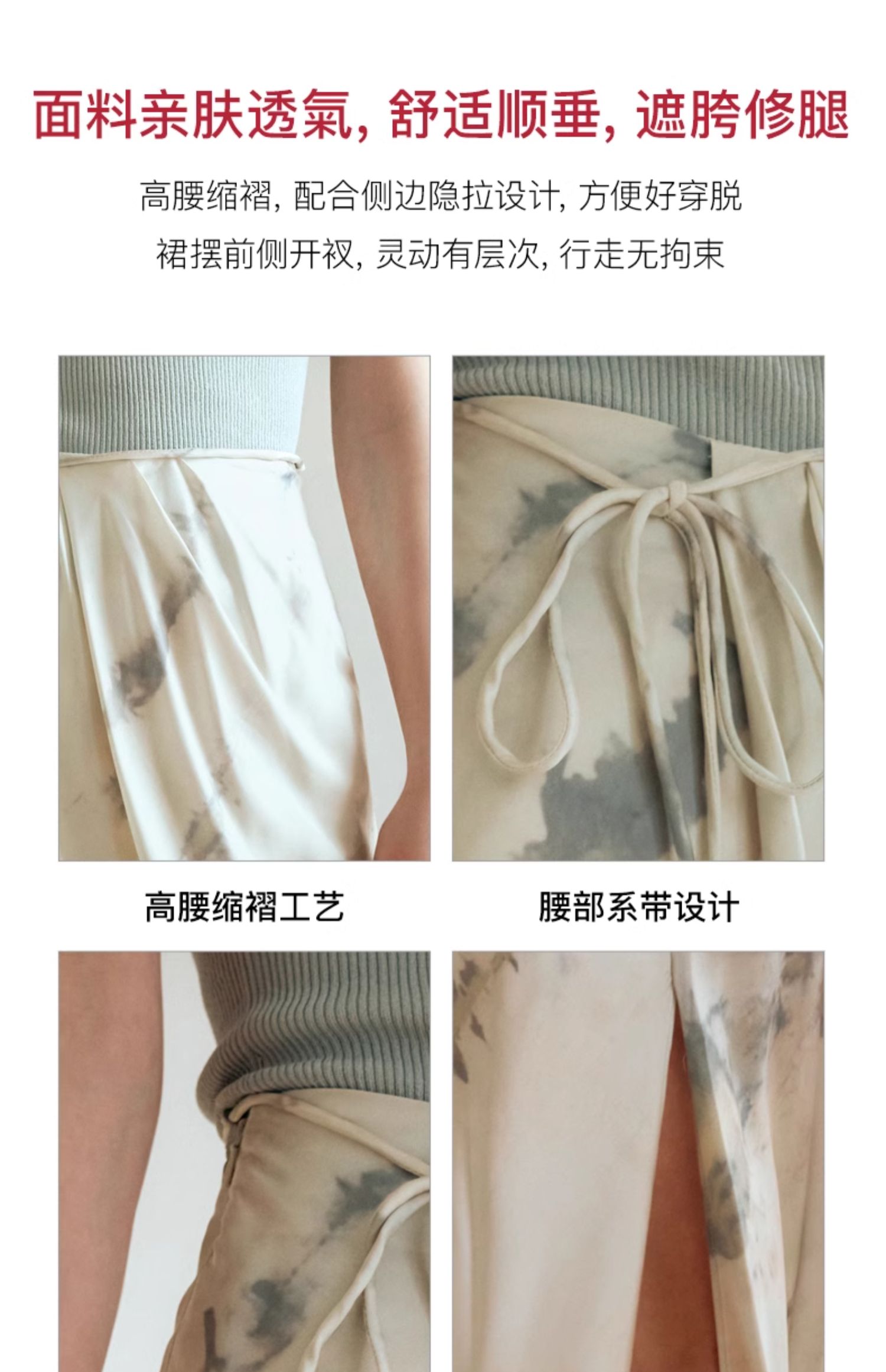 OLrain欧芮儿杏色半身裙女夏季2024年新款时尚印花不规则开叉半裙