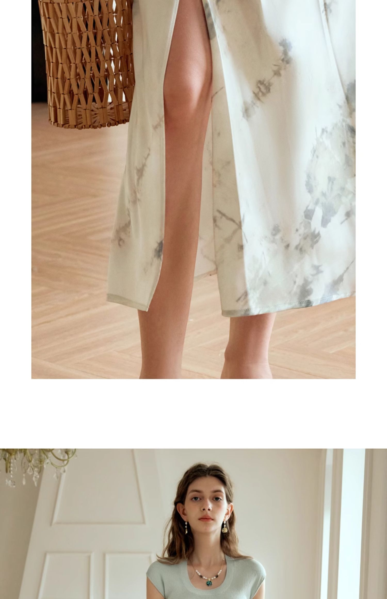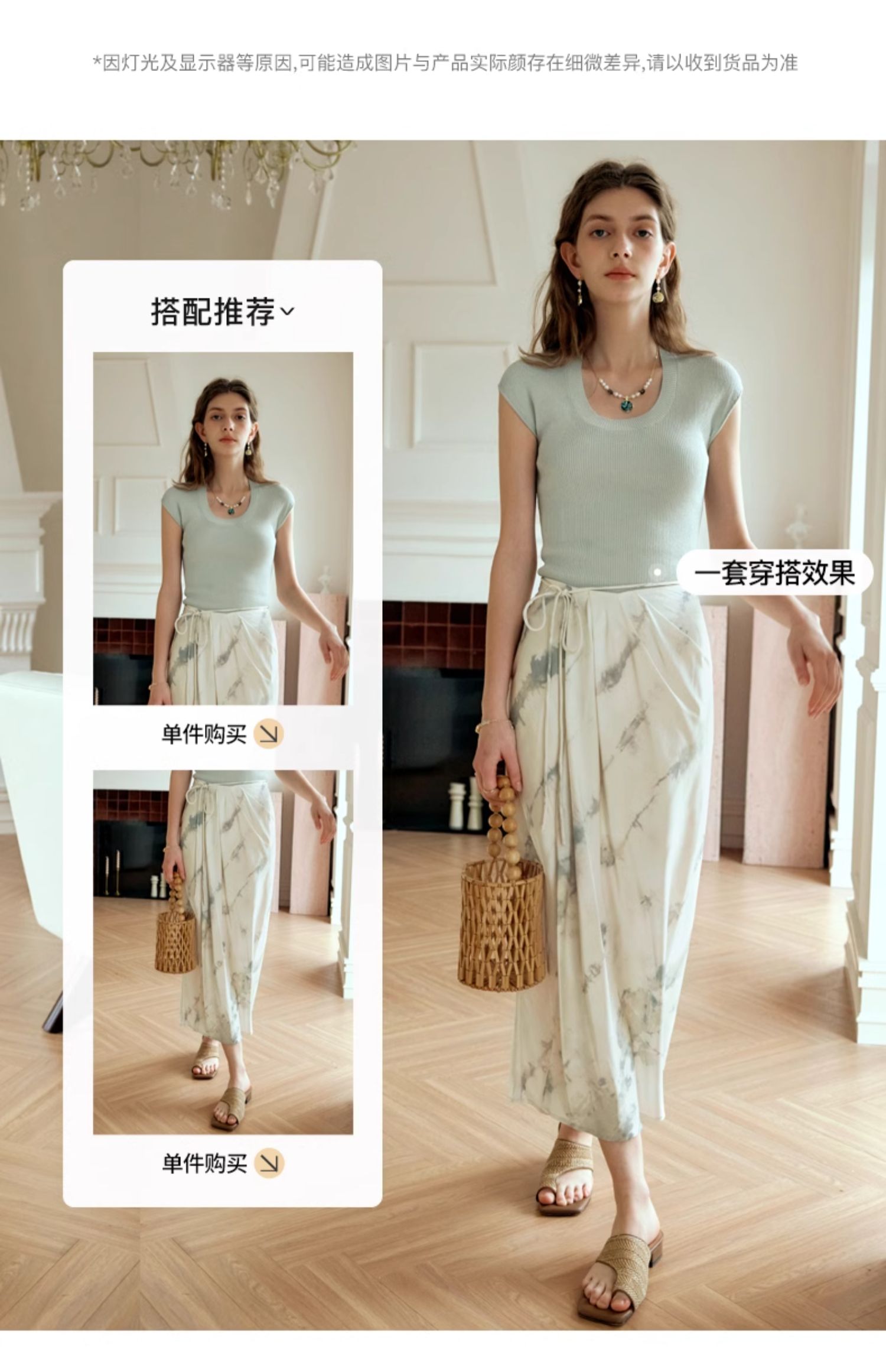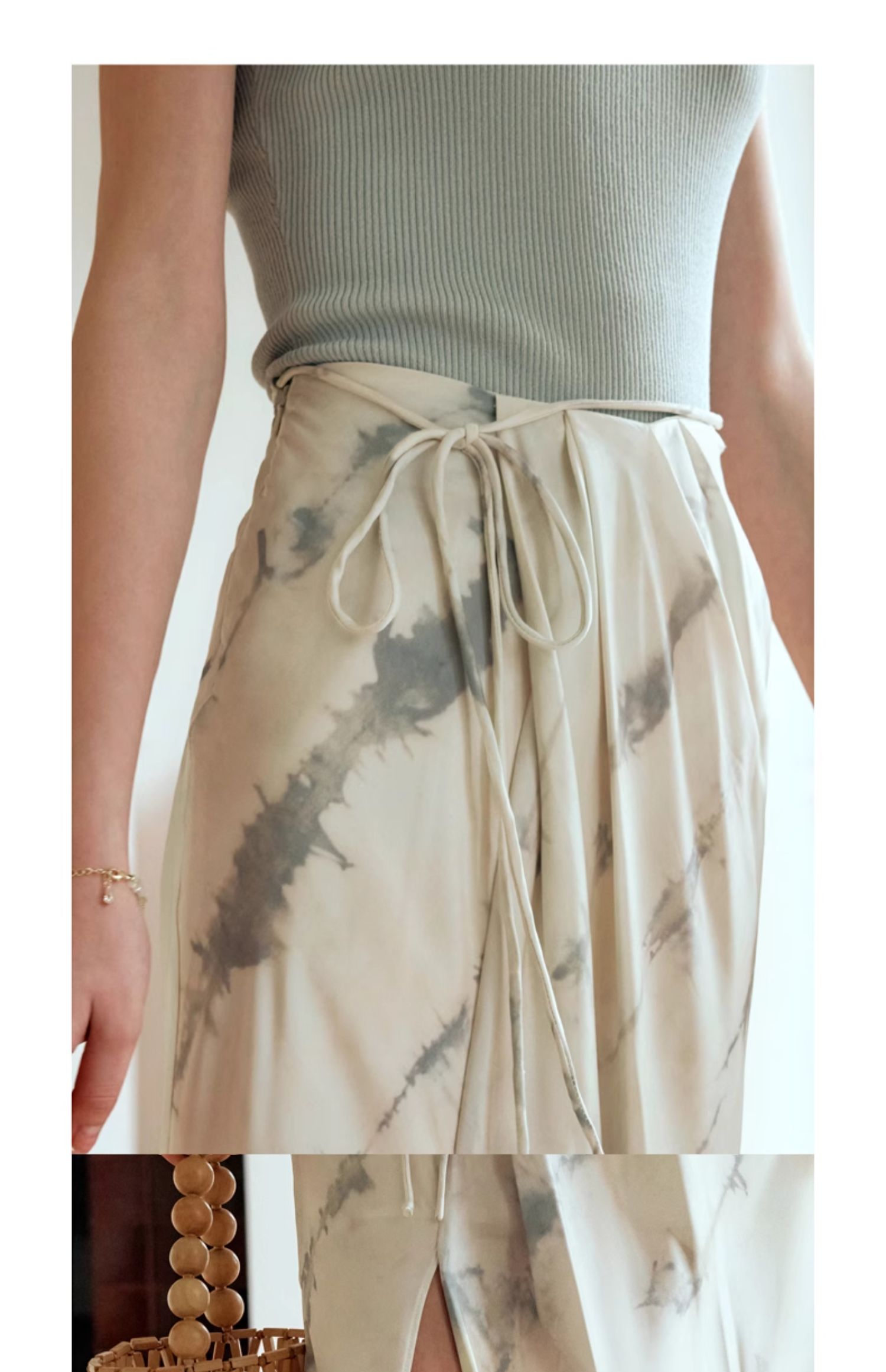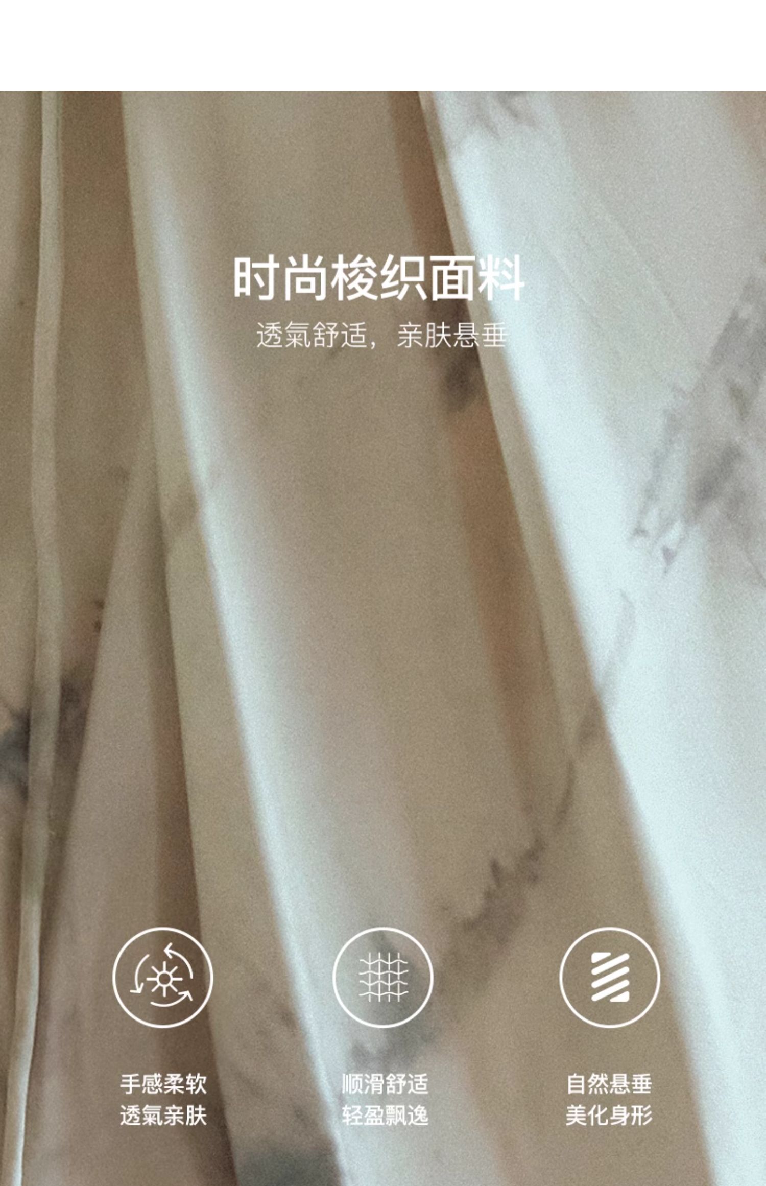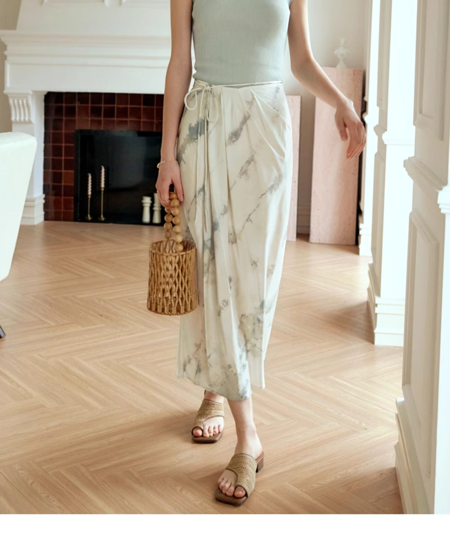OLrain欧芮儿杏色半身裙女夏季2024年新款时尚印花不规则开叉半裙