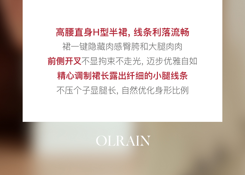 - “精致”是欧芮儿olrain品牌文化的核心,欧芮儿认为,精致的女人,不但要外在动人,更要内在迷人,内外兼修,有魅力、有气质、有内涵,自信而不自傲,优雅而不矫揉,自有万种风情而不轻浮,更不故作矜持。