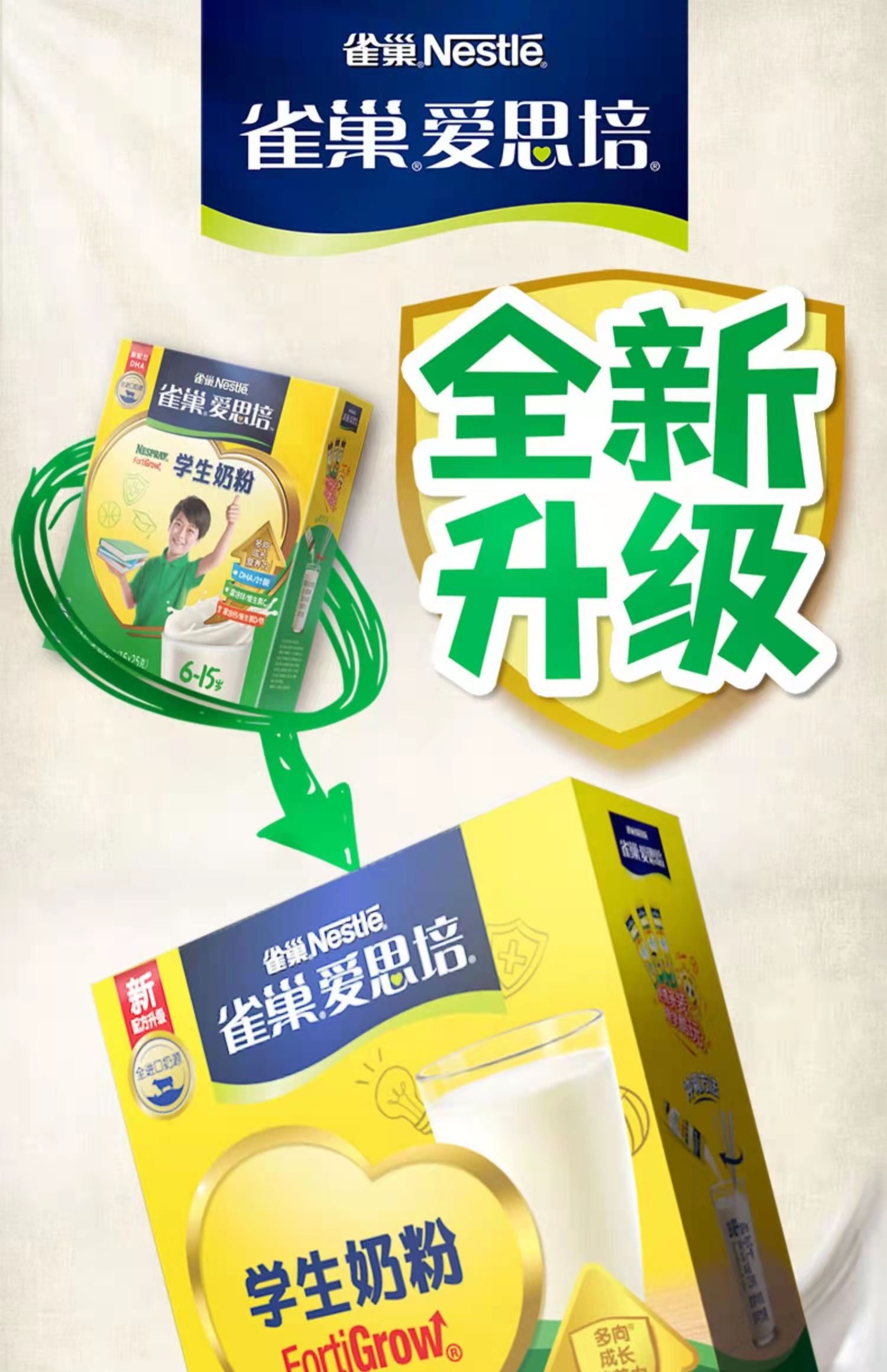雀巢爱思培学生奶粉6-15岁400g盒装/1000g桶装