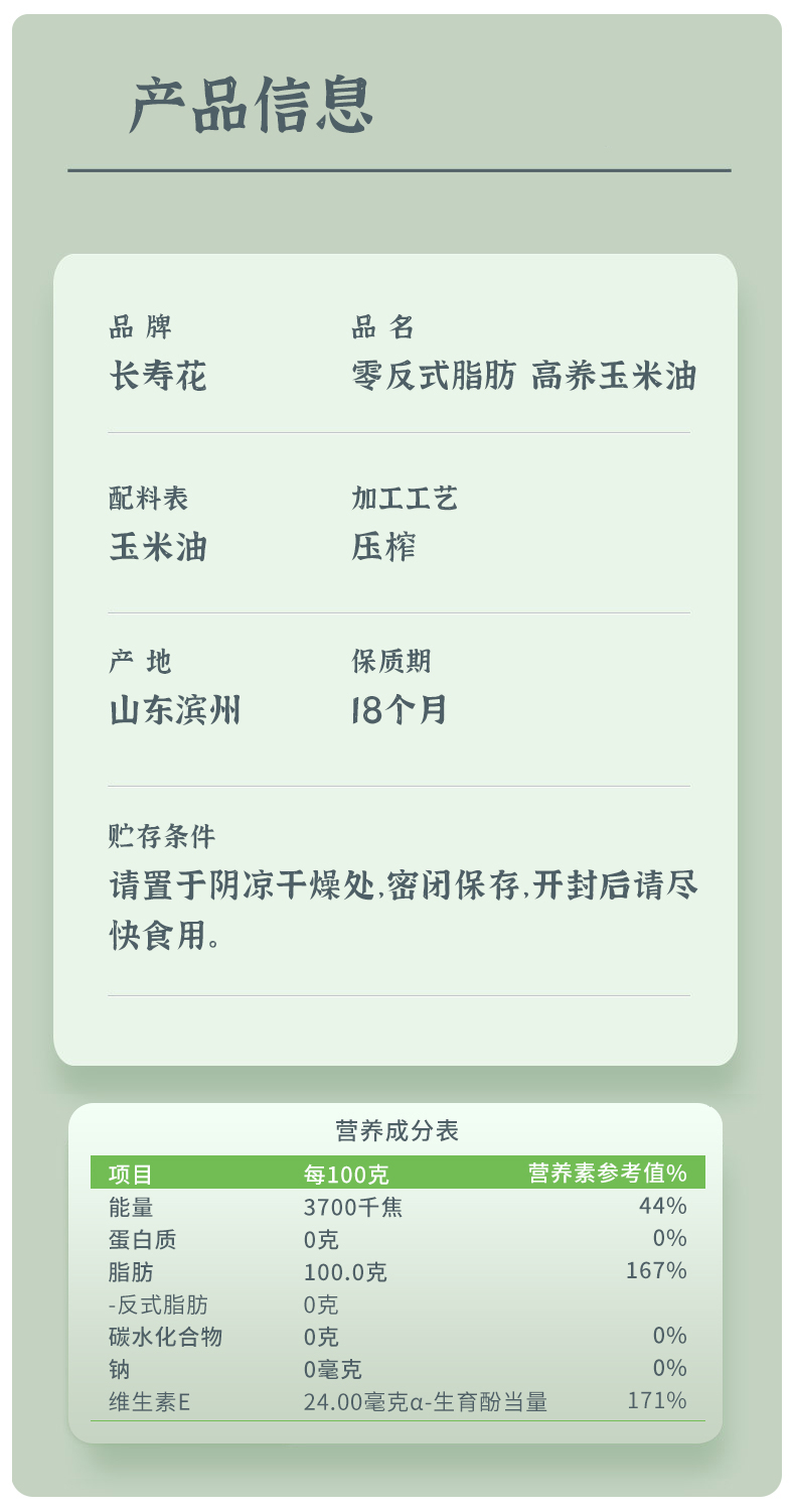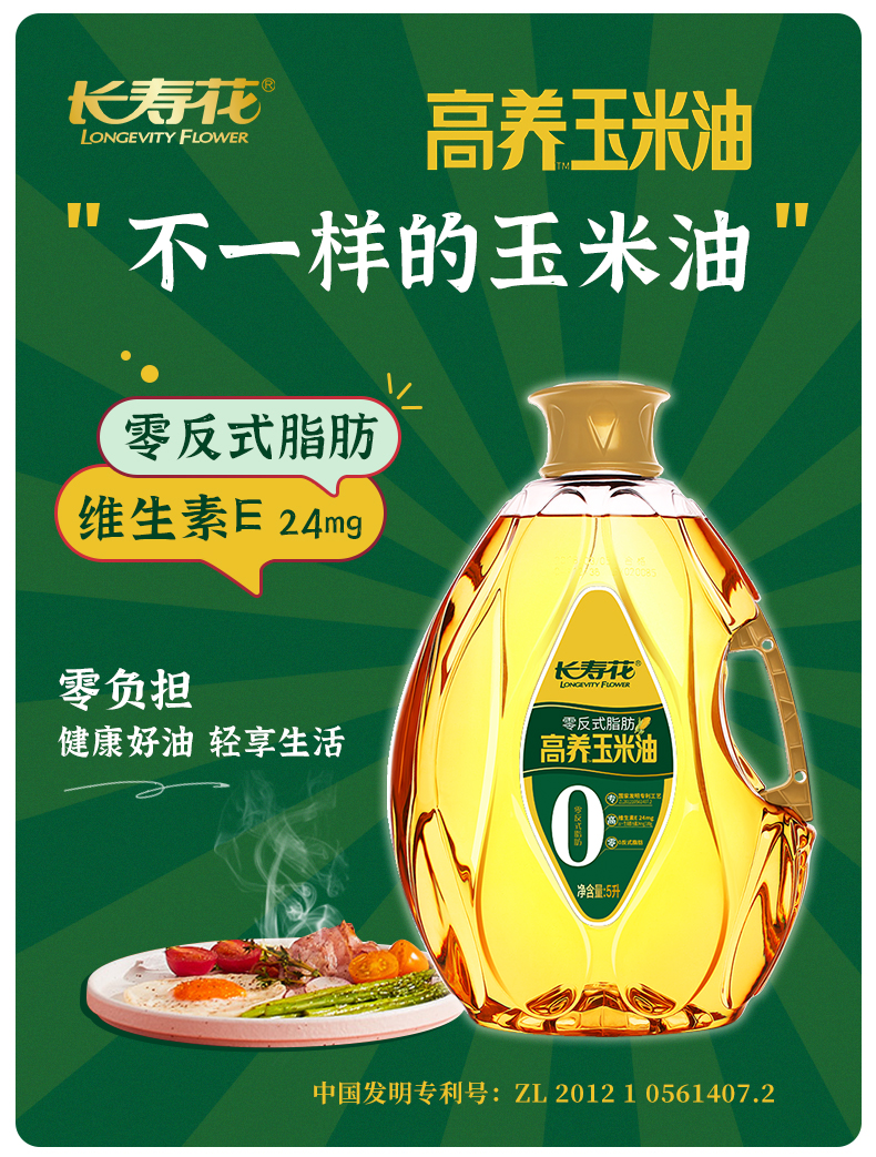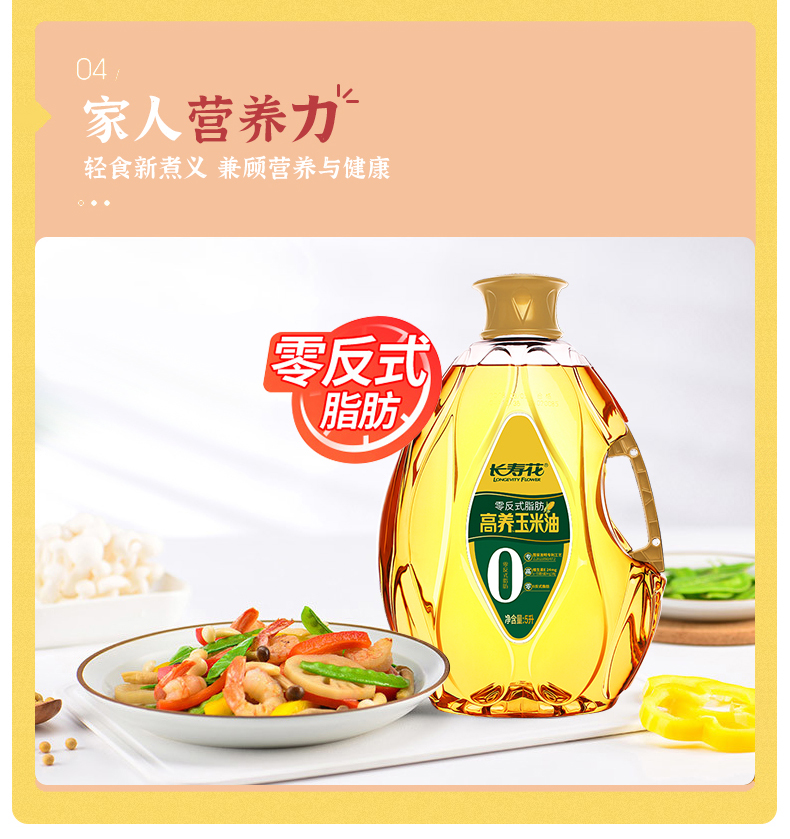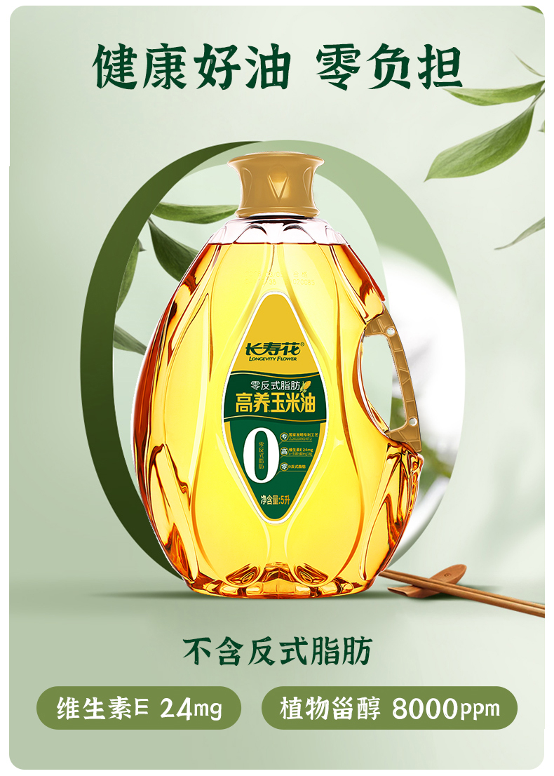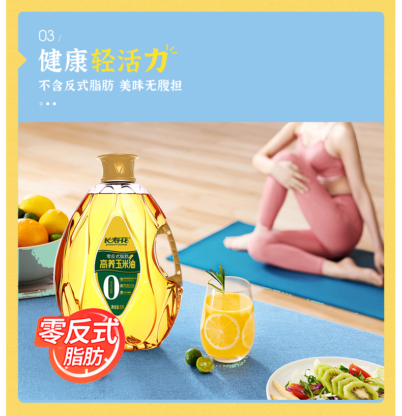 长寿花零反式脂肪高养玉米油5L*1桶非转基因家用烘焙食用油