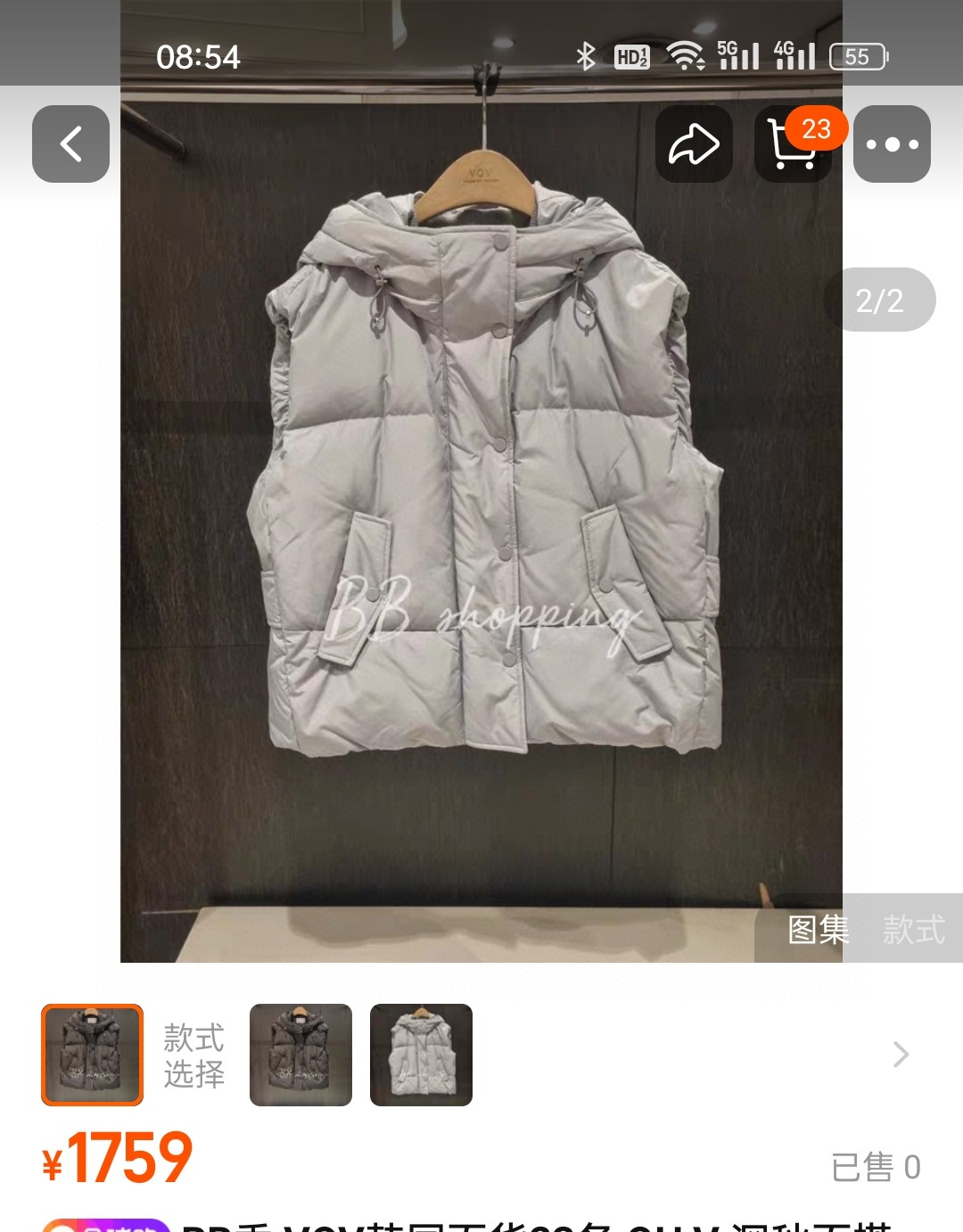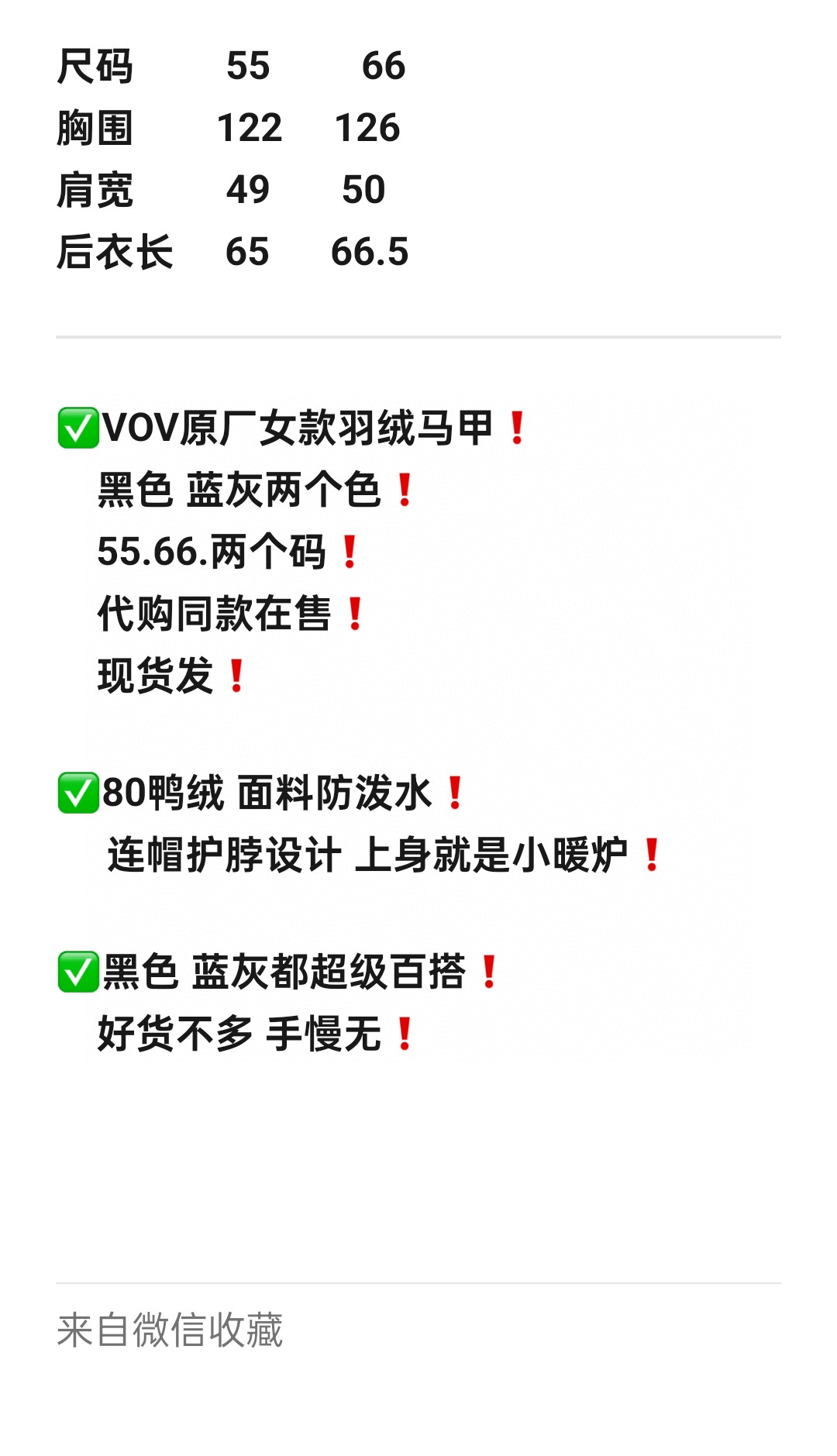 VOV家原厂女款羽绒马甲 黑色 蓝灰两个色