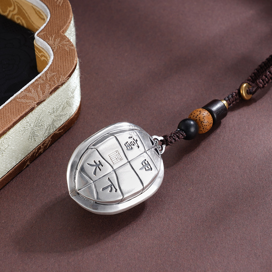 【寓意】:龟为四灵兽之一,象征富贵长寿。作品设计灵感取自龟甲,采用足银精制。作品之上镶嵌可转动吉祥文字,取名“富甲一方”,寓意时来运转,藏福纳富。