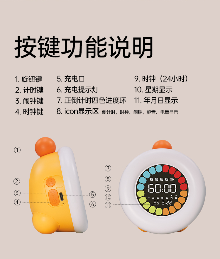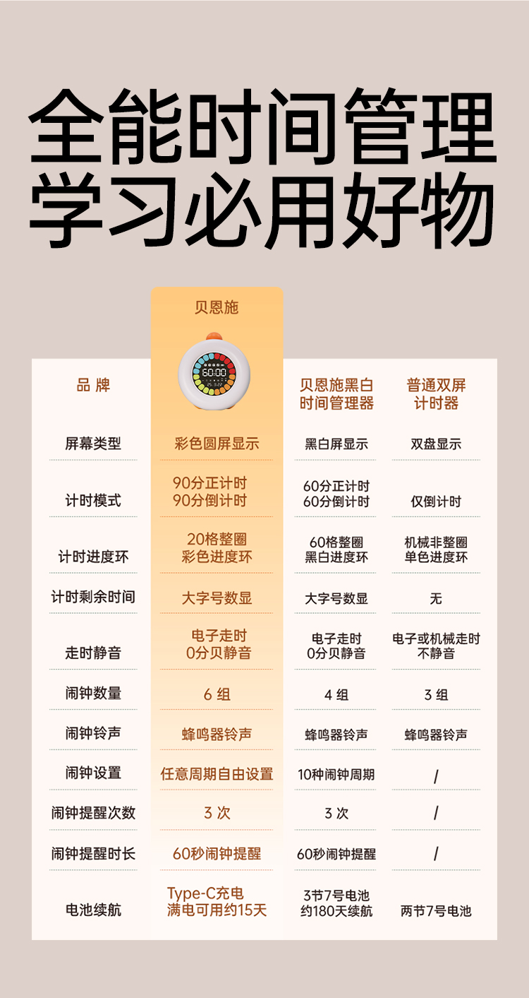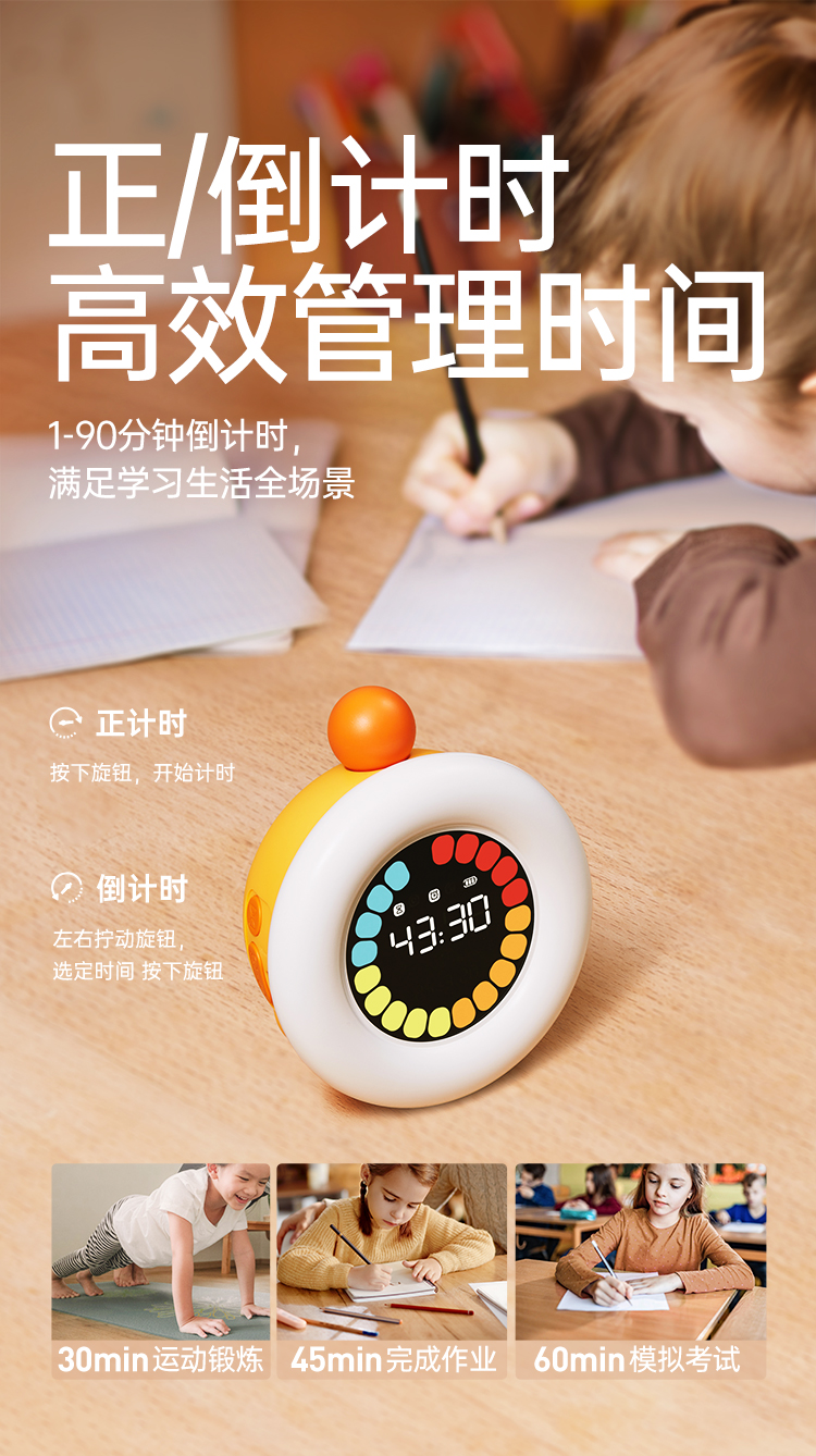贝恩施可视化计时器时间管理器学生学习自律儿童专用定时提醒闹钟